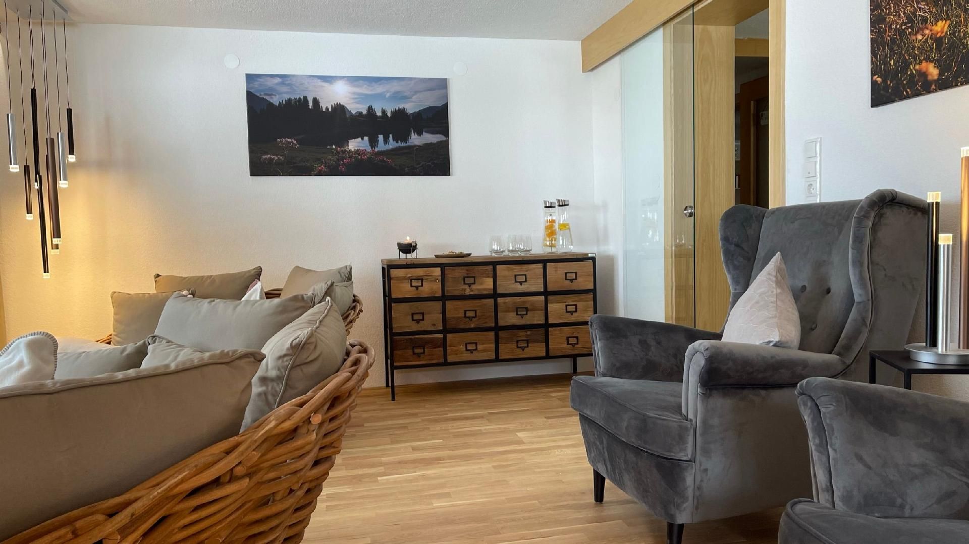 Neben der traumhaften Lage unweit der Skigebiete bietet das Gästehaus Wellnessbereichen wie einen Außenwhirlpool, eine Infrarotkabine und ein Solarium. Außerdem dürfen sich Kinder über das Spielzimmer freuen. Im Außenbereich wird Ihnen ein gemeinsam genutzter Garten mit Grillmöglichkeit und in jeder Ferienwohnung ein privater Balkon geboten. Im ersten Obergeschoss befindet sich die Ferienwohnung Objekt Nr. 620656 auf 60 m² und zwei Schlafzimmern für vier Personen sowie die Ferienwohnung Objekt Nr. mit zwei Schlafzimmer für vier Personen. Eine Etage höher liegt die Ferienwohnung Objekt Nr. 480747, die über ein Schlafzimmer auf gleicher Wohnfläche verfügt. Neben dieser Wohnung befindet sich die großzügige Maisonette-Ferienwohnung Objekt Nr. für bis zu acht Personen mit vier Schlafzimmern, die 90 m² misst. Die Ferienwohnung (Objekt Nr. mit 3 Schlafzimmer für acht Personen ist über den oberen Hauseingang (nur eine Stufe) zu erreichen. Alle Ferienwohnungen bieten einen erholsamen, unabhängigen Urlaub dank voll ausgestatteter Küchen, gemütlichen Wohnbereichen sowie stets zwei Badezimmern.