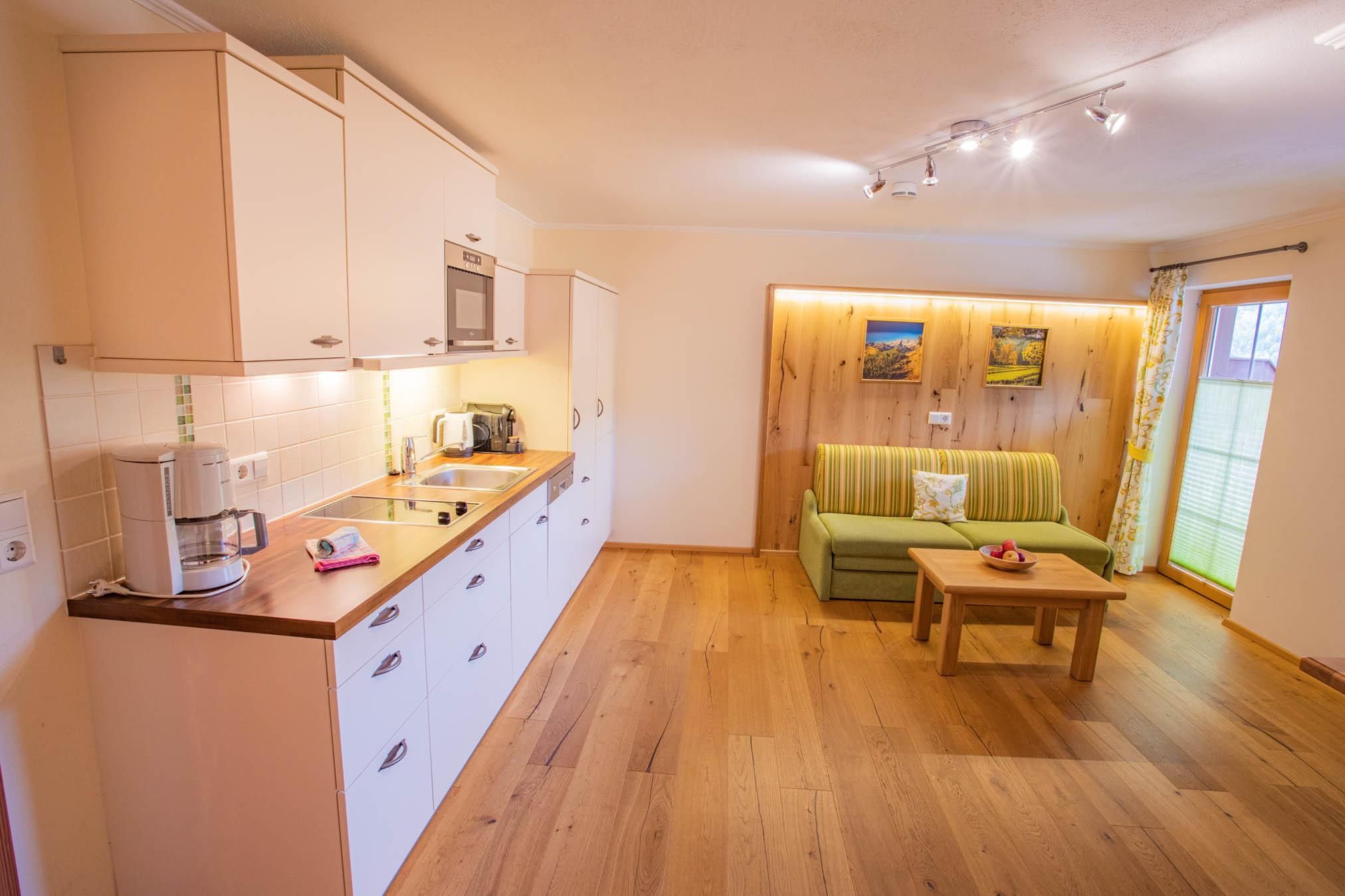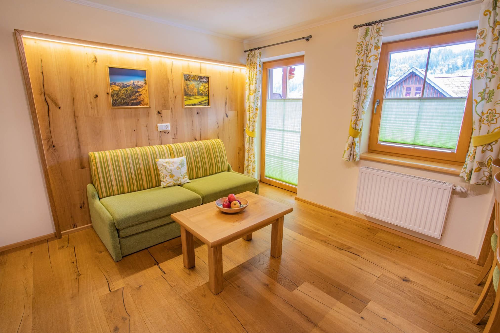 Wir bieten Ihnen vier geräumige 50 bis 70m² große und liebevoll eingerichtete Ferienwohnungen für 2-6 Personen. Jede der Ferienwohnungen empfängt Sie mit gemütlichen Schlafzimmern, einer voll ausgestatteten Wohnküche mit Geschirrspülmaschine, E-Herd, Mikrowelle, Kaffeemaschine und Eierkocher. Der helle und komfortable Wohnbereich lädt zum Entspannen ein. Genießen Sie am möblierten Balkon den herrlichen Ausblick auf die imposante Bergwelt von Ramsau am Dachstein.