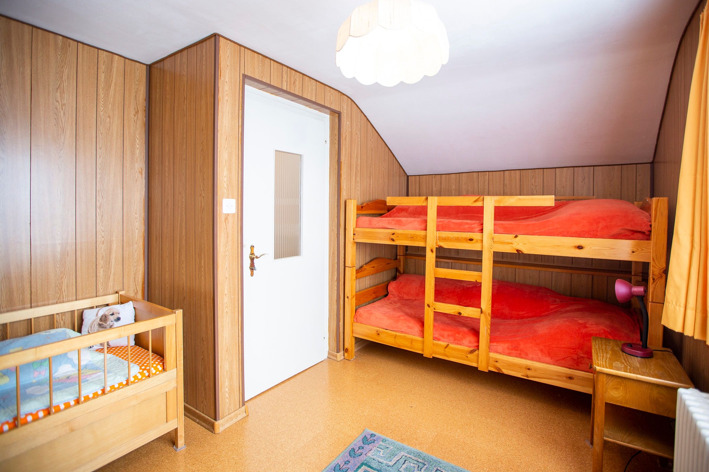 Die Ferienwohnung verfügt über drei Schlafzimmer mit je einem Doppelbett, einem Kajütenbett und eines mit zwei Einzelbetten ein Badezimmer mit Dusche und Toilette ein Wohn- /Esszimmer mit grossem Esstisch eine offene Küche mit Elektroherd, Geschirrspüler und Kaffeemaschine Inneneinrichtung & Technik