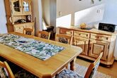 Im Obergeschoss befinden sich die liebevoll eingerichteten Schlafräume sowie das moderne Badezimmer. Das Hauptschlafzimmer ist mit einem komfortablen Doppelbett ausgestattet, während das zweite Schlafzimmer ein Einzelbett sowie eine Schlafcouch bietet. Für die Kleinsten stellen wir auf Wunsch gern ein Reisebett bereit. Auch Spielsachen sind vorhanden, damit sich Ihr Nachwuchs rundum wohlfühlt.