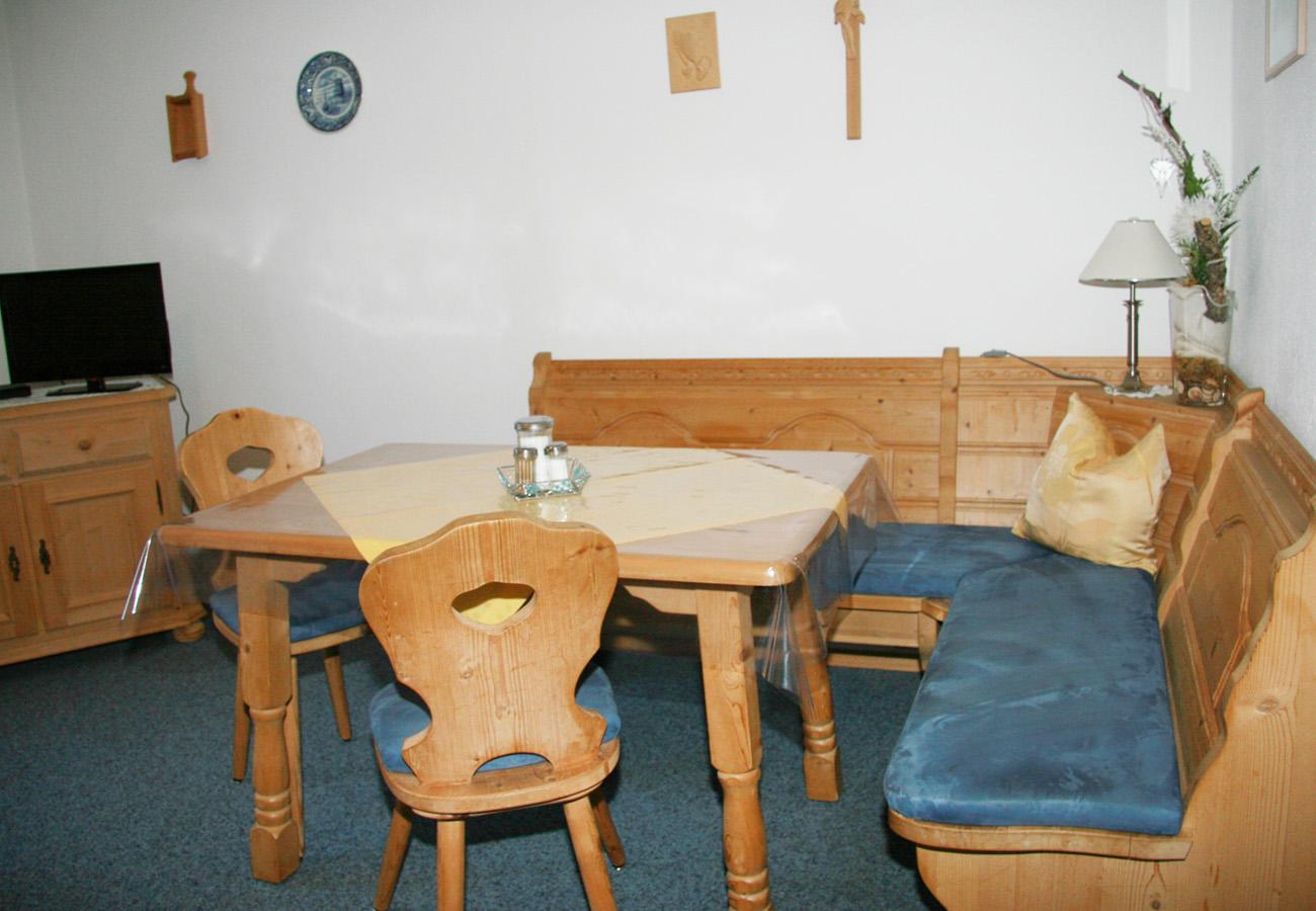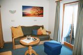 Vom Eingangsbereich gelangen Sie in die Küche der abgeschlossenen 45 qm Wohnung. Sie ist komplett mit E-Herd, Kühl-Gefrierkombination und Spüle eingerichtet. Links befindet sich ein Schuhschrank mit Garderobe. Links gelangen Sie in die Dusche mit WC und Waschbecken. Von der Küche aus geht es in den Wohn-/Schlafraum, ausgestattet mit Essecke, SAT-TV, Digitalradio und einer 1,50m breiten ausziehbaren Schlafcouch. Im separaten Schlafzimmer steht ein Doppelbett mit dreiteiligem Schrank und einem Waschbecken. Außerdem ein Kinderbett von 1,40m Länge. Vom Schlaf- bzw. Wohnzimmer aus gehen Sie auf den Ostbalkon mit Tisch. Rauchen ist nur auf dem Balkon gestattet. Die ausziehbare Schlafcouch kann für weitere Personen genutzt werden. Kinder zwischen 6-15 Jahren kosten auf der Schlafcouch 15€ pro Nacht.