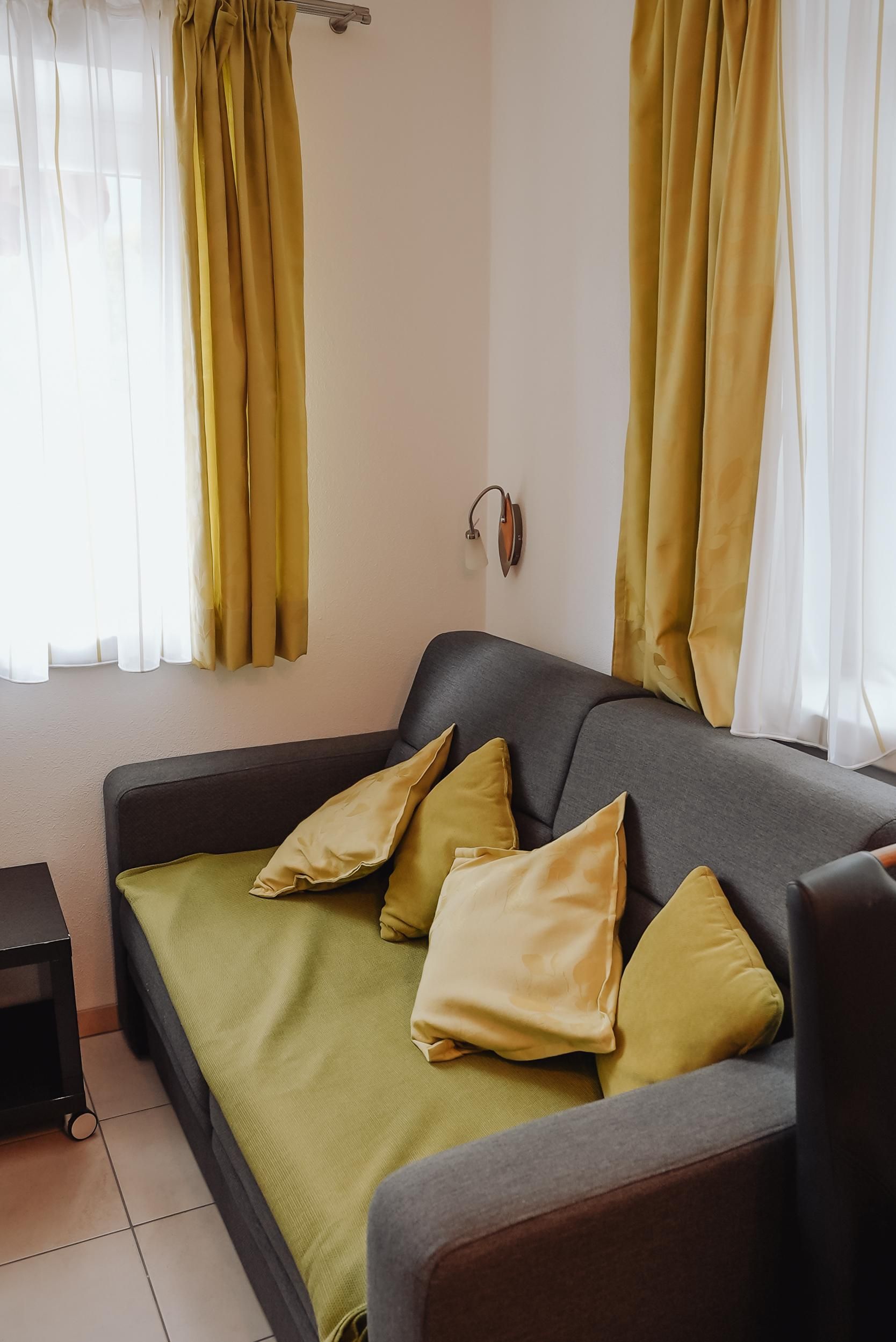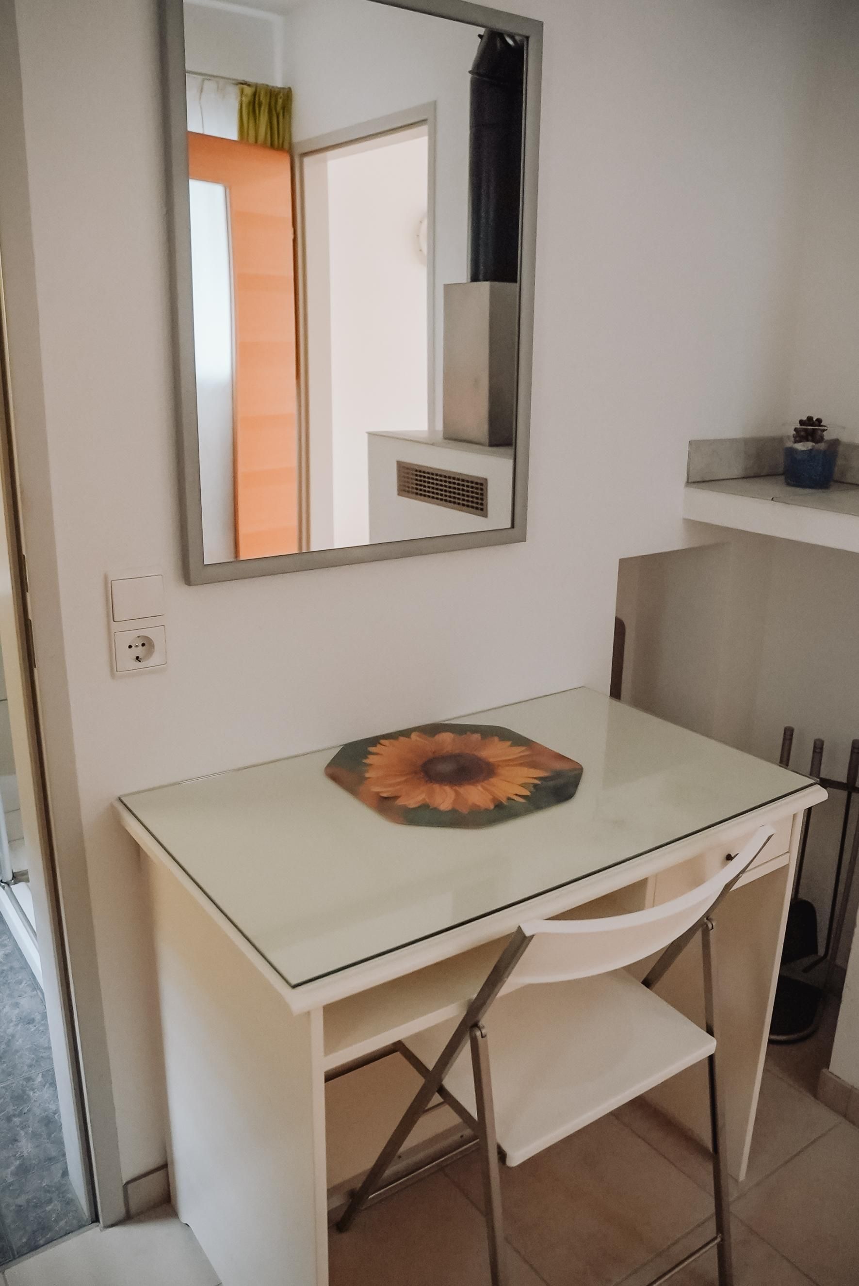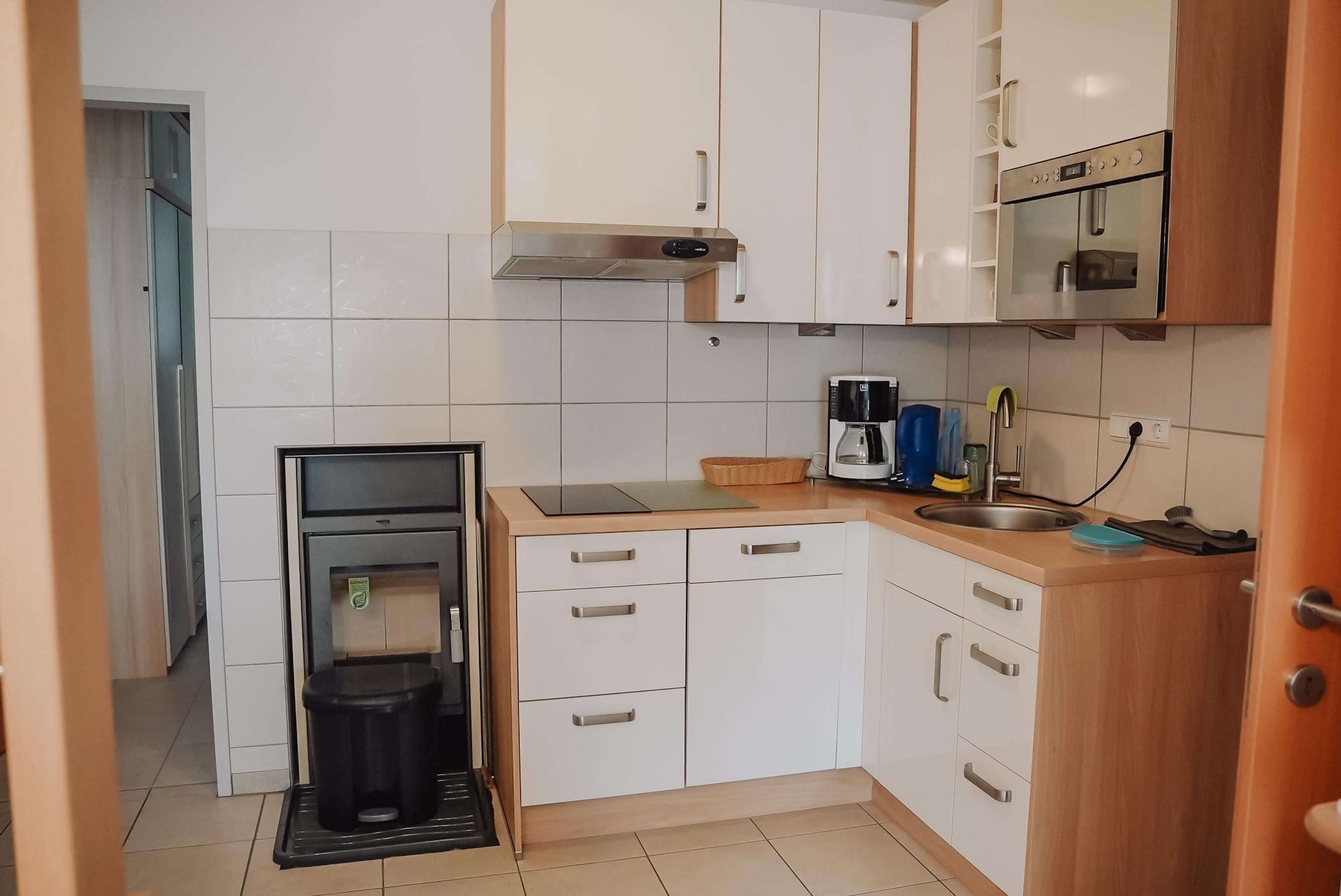Das gemütliche Schwalbenwand Studio im Untergeschoss bietet 45 m² für 2 Personen. Es verfügt über einen Wohn-/Essbereich mit abgetrenntem Schlafbereich, eine voll ausgestattete Küche, ein modernes Bad, separates WC sowie eine sonnige Terrasse mit Gemeinschaftsgarten und Bergblick.
