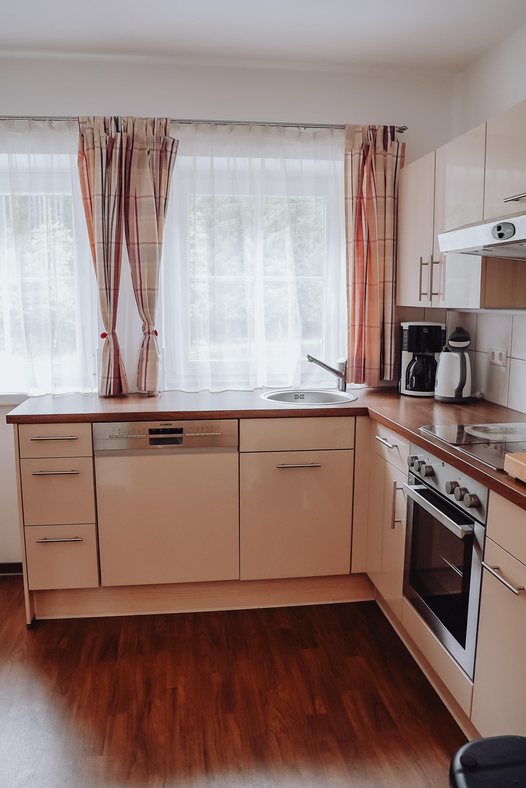 Die stilvoll eingerichtete Ferienwohnung Schönfeldspitze im 1. Stock bietet auf 68 m² Platz für bis zu 4 Personen. Sie verfügt über ein Schlafzimmer mit Doppel- und Einzelbett sowie einen Wohn- und Essbereich mit weiterem Einzelbett. Die voll ausgestattete Küche und das moderne Bad mit Dusche, Badewanne und separatem WC bieten besten Komfort. Vom sonnigen Balkon genießen Sie den Blick auf die Bergwelt des Steinernen Meeres.