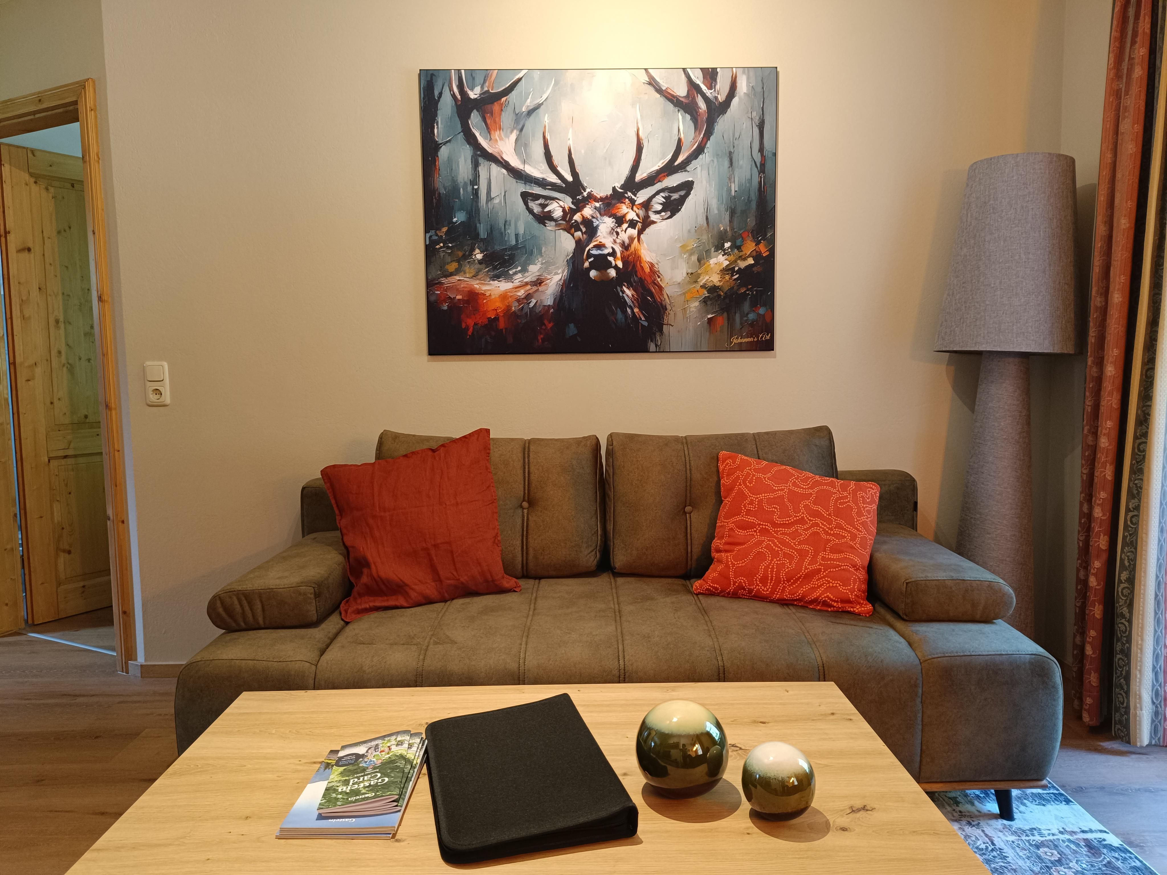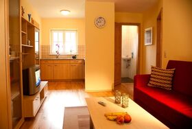 Moderne und gemütliche Ferienwohnung (im 1. Stock), 40 qm mit komfortabler Ausstattung: Wohnraum mit Essecke, voll ausgestattete Küchenzeile, Schlafzimmer, Badezimmer mit Dusche, WC, gratis W-LAN.