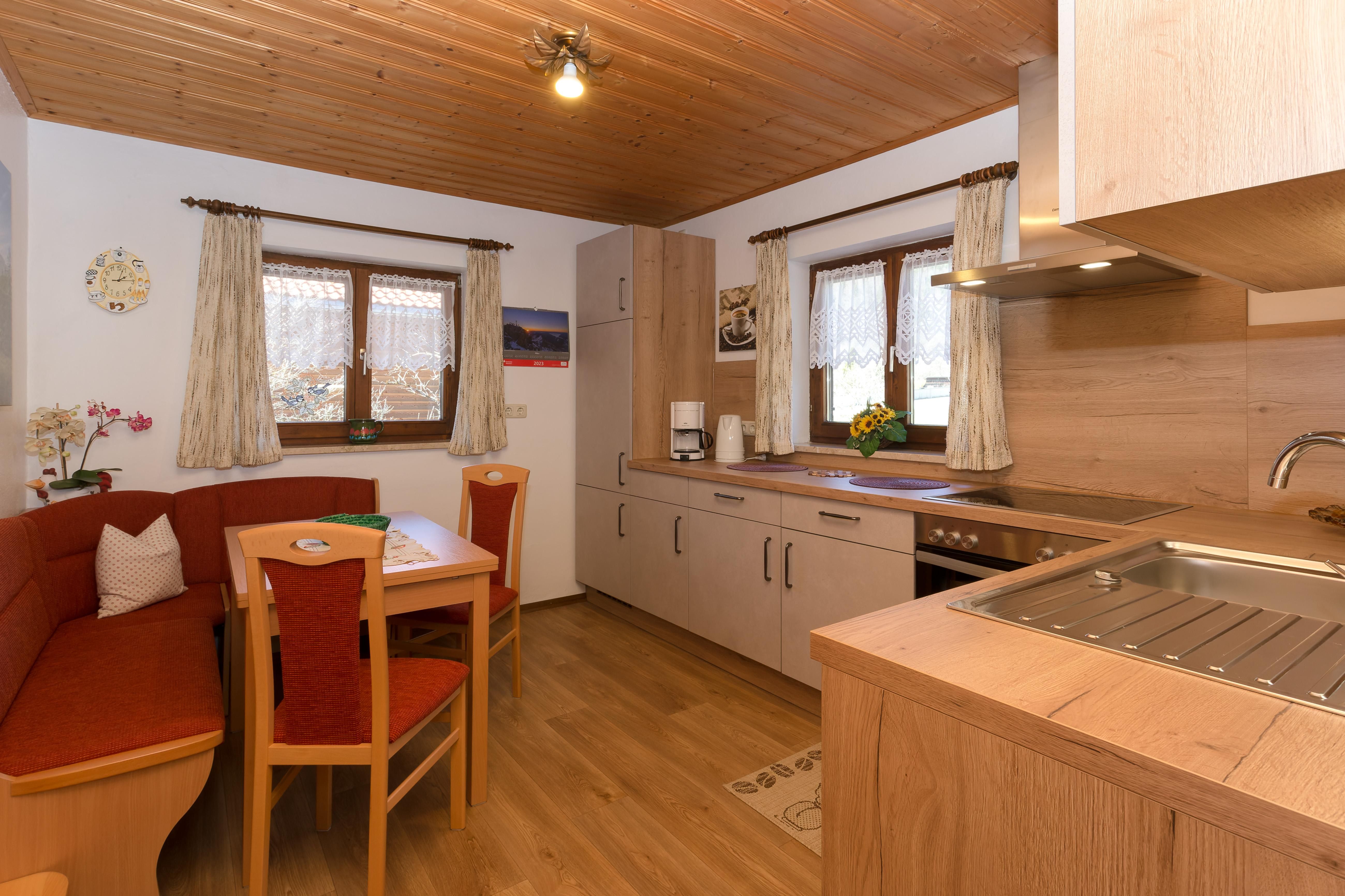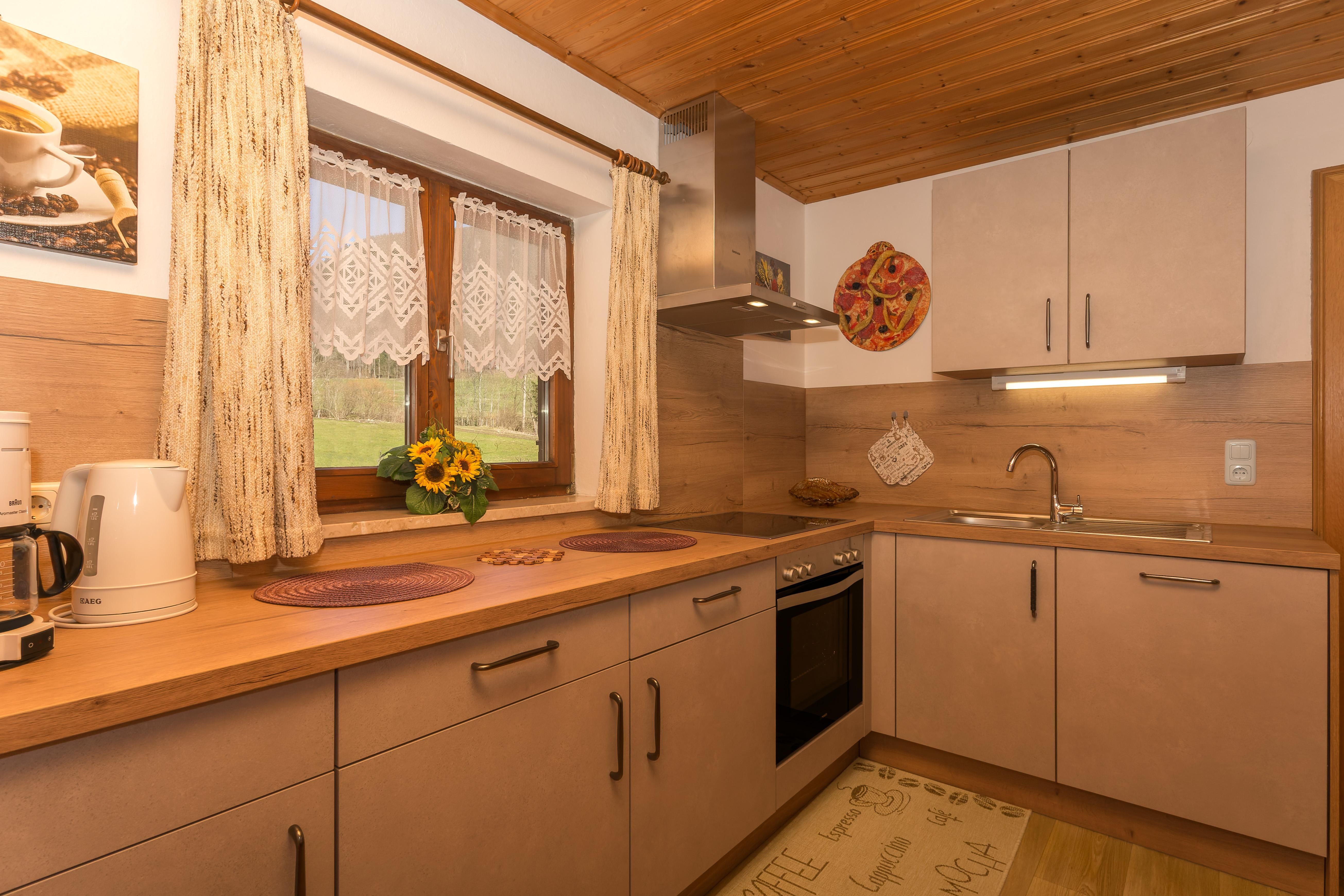 Unsere konfortable Ferienwohnung besteht aus einer modern eingerichteten Küche, einem gemütlichen Wohnraum, sowie ein nach