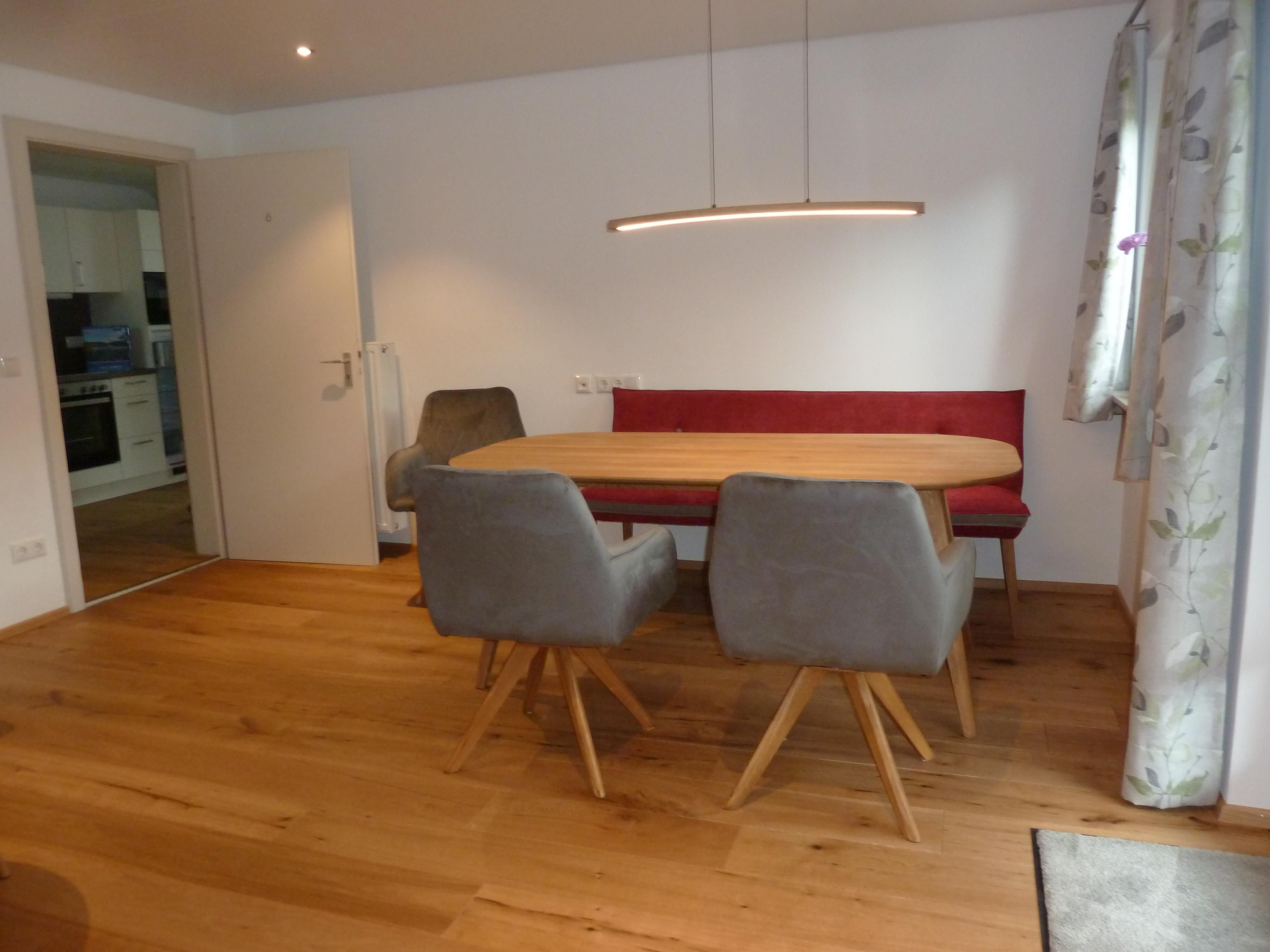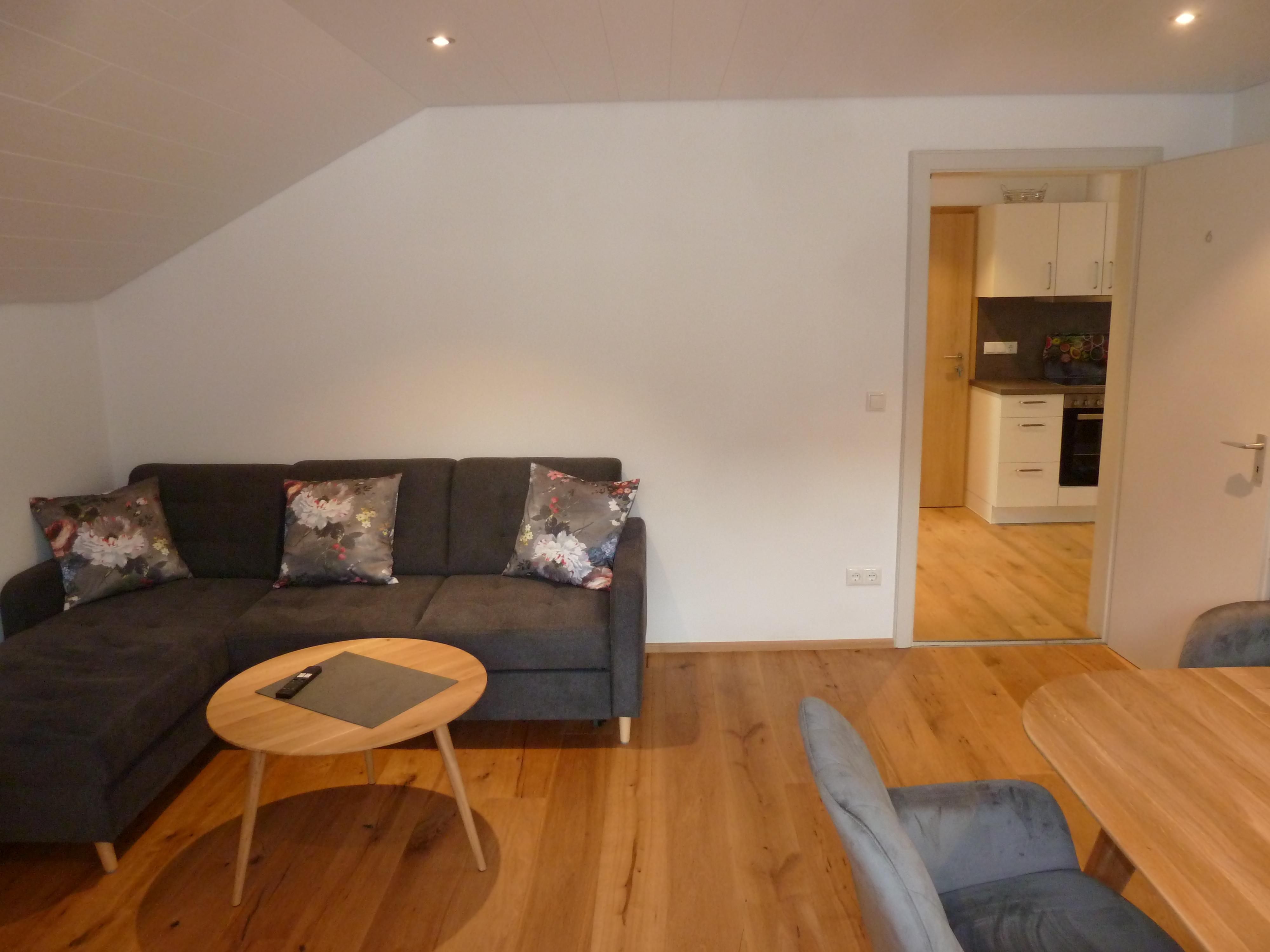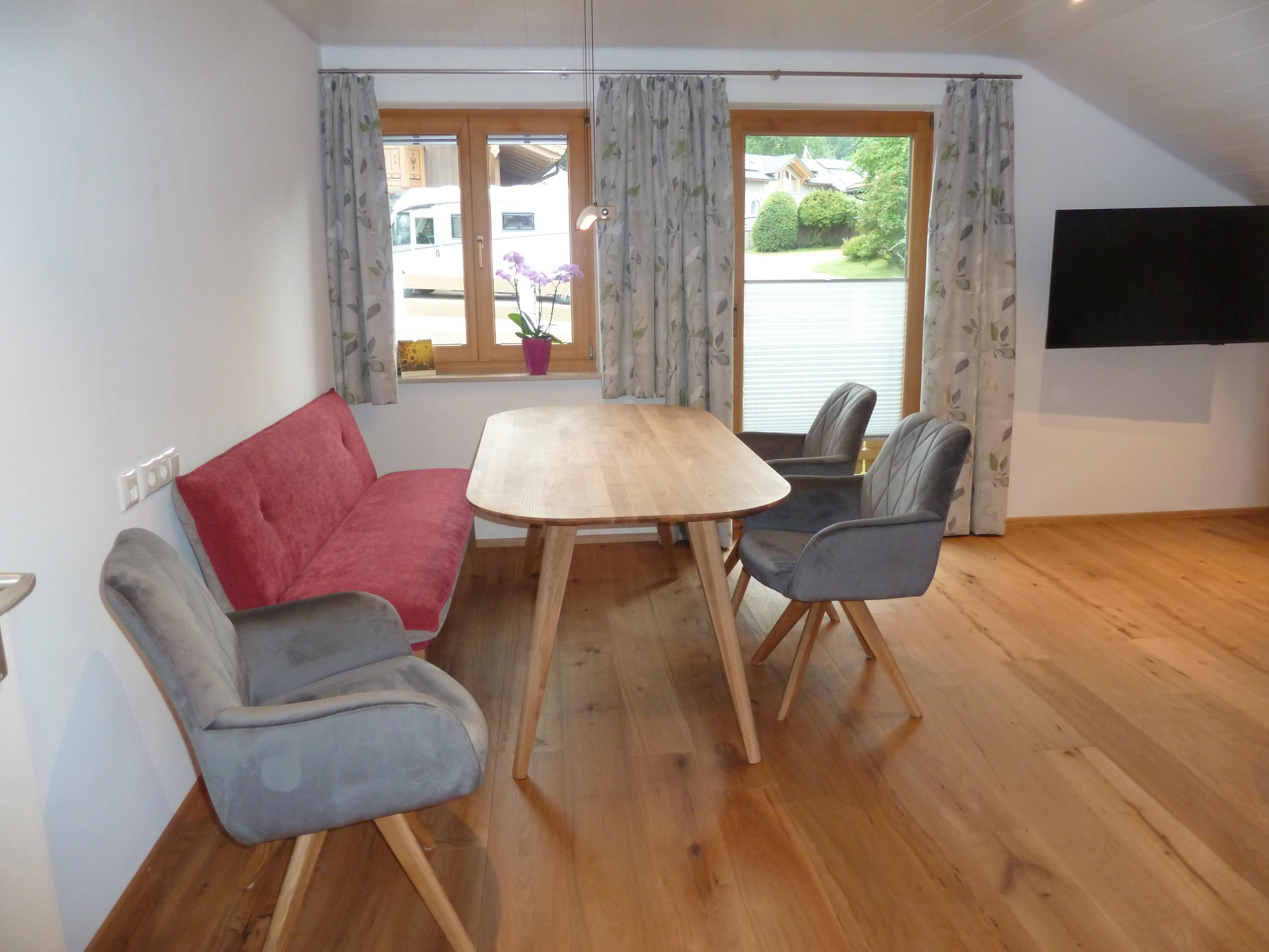 Neue, schöne, gemütliche und liebevoll eingerichtete Ferienwohnung mit möblierten Südbalkon, mit Blick auf unseren Hausberg Hörnle. Im geräumigen Wohn-und Esszimmer mit Balkontüre, Smart TV und Lan Anschluss am großen Esstisch für 6 Personen, bequemer Bank und dreh Sesseln, laden zum gemütlichen beisammen sein ein. Komfortables Sofa (als Schlafgegenheit möglich) und einen Schlafsessel (102cm*190cm).
