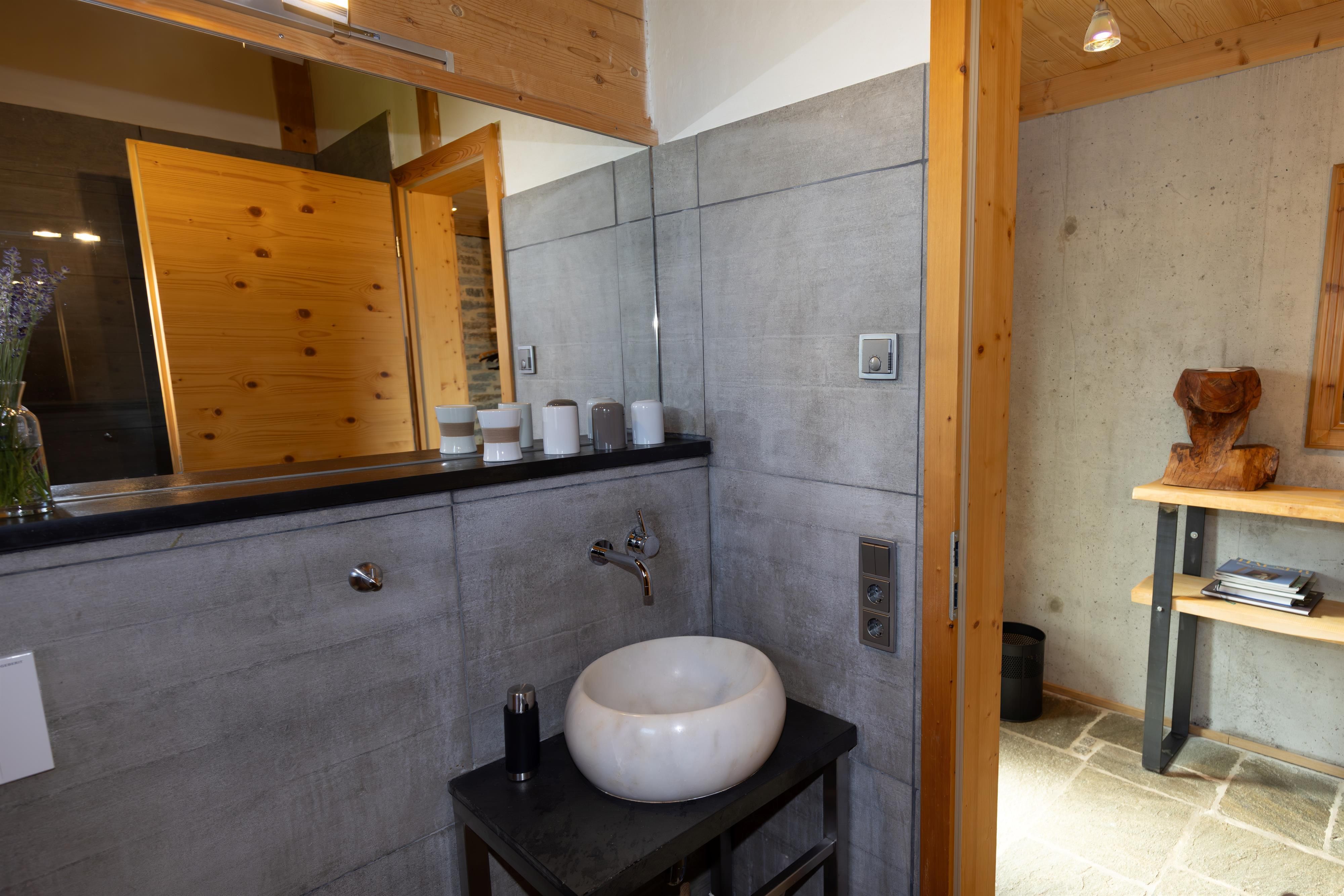 Privathaus und Ferienwohnung sind schalltechnisch optimal getrennt. Die Innenputze wurden fast ausschließlich in Lehm selbst aufgezogen.
