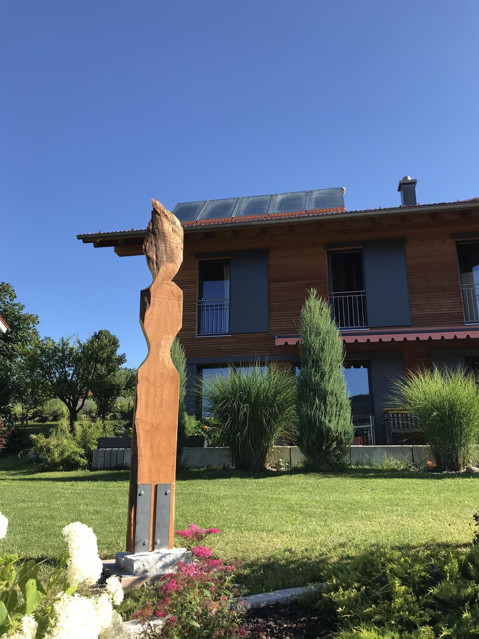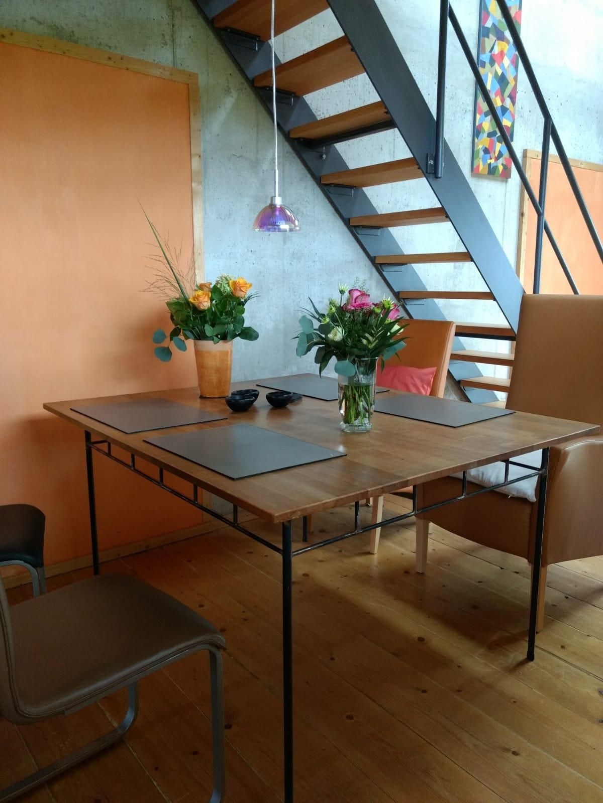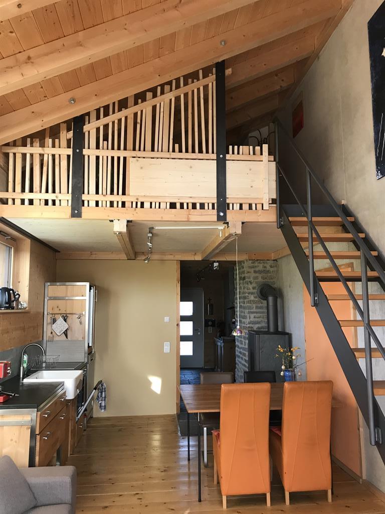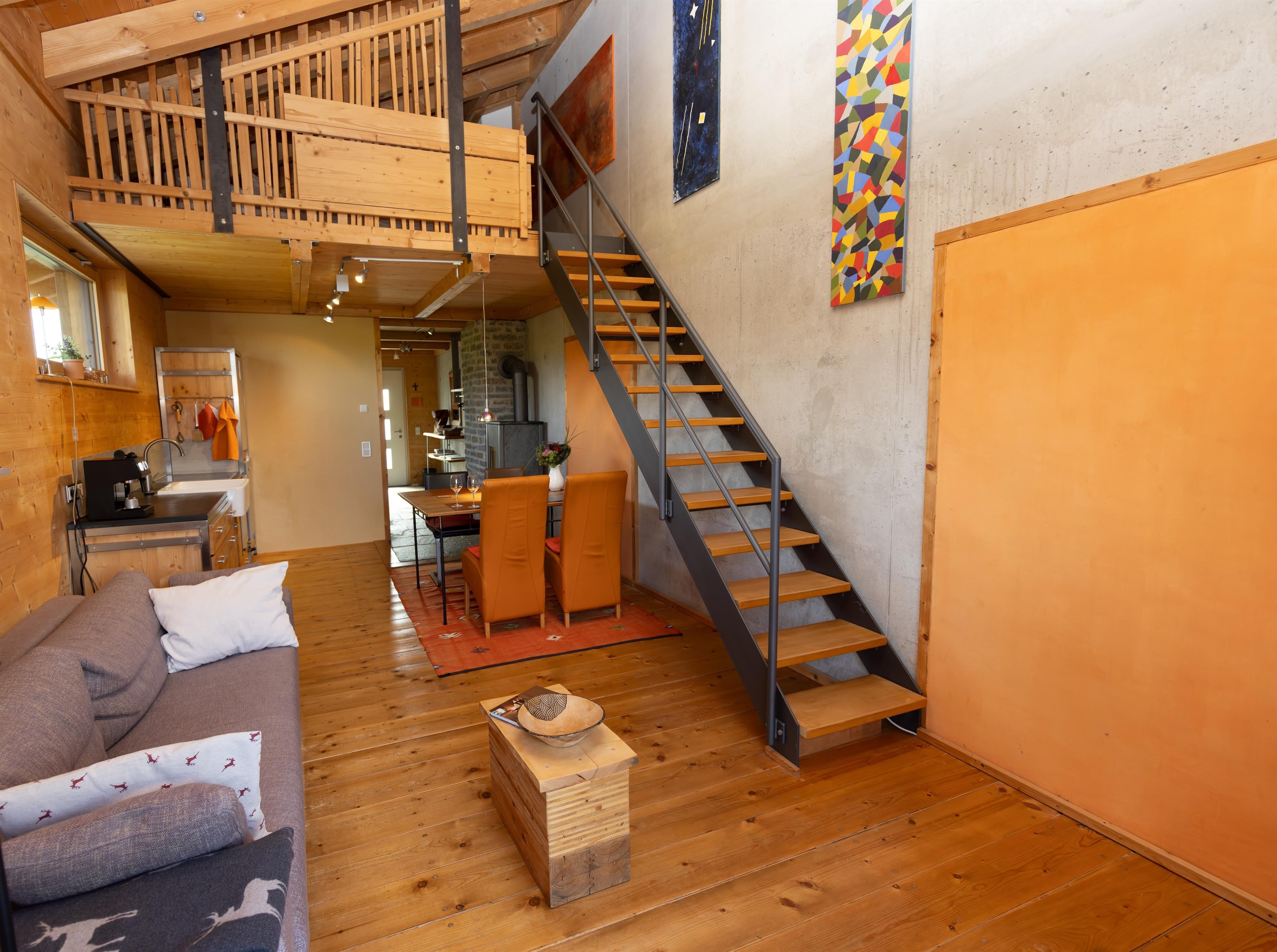 Sehr gemütliche, nach höchsten Ansprüchen an Baubiologie und Design gestaltete Loftwohnung im Alpenchaletstil mit Holz als dominierendem Baustoff. Getrennter Schlafbereich mit zwei Doppelbetten im Obergeschoss des Lofts, kleiner Balkon und Terrasse mit Bergblick. Mehr als 50 qm Wohnfläche über zwei Geschosse, ideal für 2 Erwachsene und 2 Kinder, fördern optimal die Urlaubsatmosphäre oder erleichtern das Abschalten nach dem anstrengenden beruflichen Alltag. Kühle Herbst- und Winterabende verbringen Sie am prasselnden Kaminfeuer. Dazu kommen die traumhafte Lage am Südhang und die gute Erreichbarkeit auch mit öffentlichen Verkehrsmitteln. Zu Fuß gelangt man in 10 Minuten in das Dorfzentrum mit vielen Einkaufsmöglichkeiten und Gastronomie. Die Langlaufloipe, Fahrrad- und Wanderwege beginnen am Haus. Wir sind auch auf internationale Gäste ausgerichtet und sprechen neben deutsch auch englisch, italienisch und spanisch.