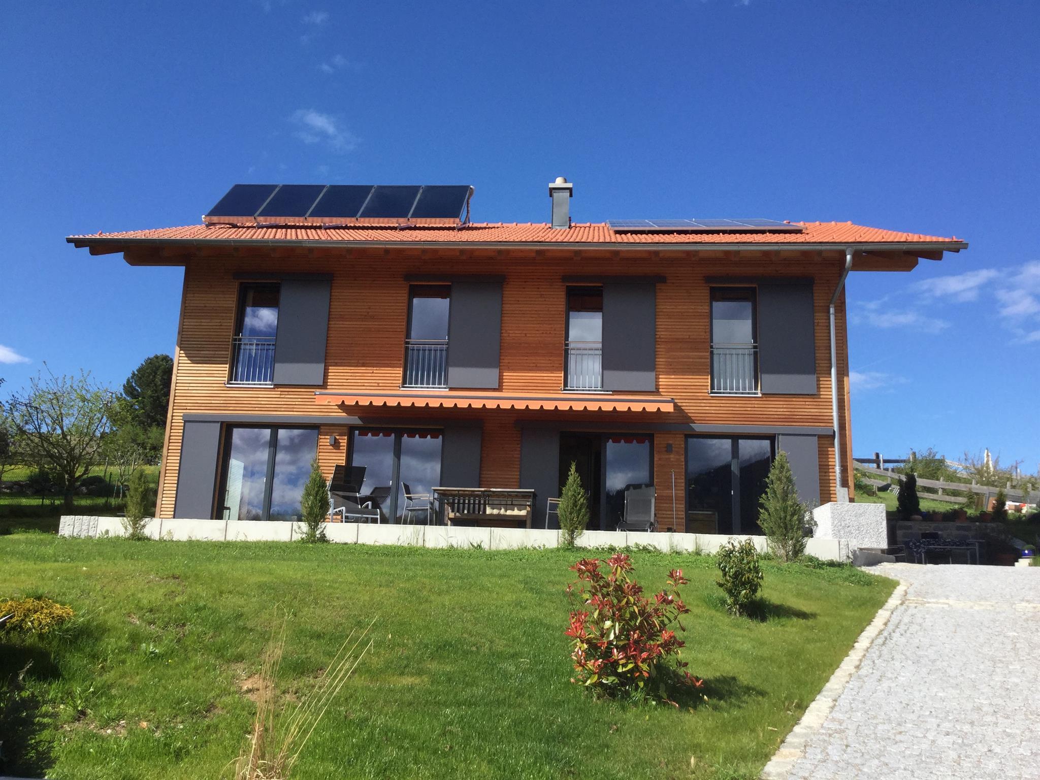Das Holz und die Bauweise stammt vom österreichischen Premiumholzbauer Thoma. Die Bäume wurden ausschließlich in der Zeit der Saftruhe bei abnehmendem Mond geerntet.
