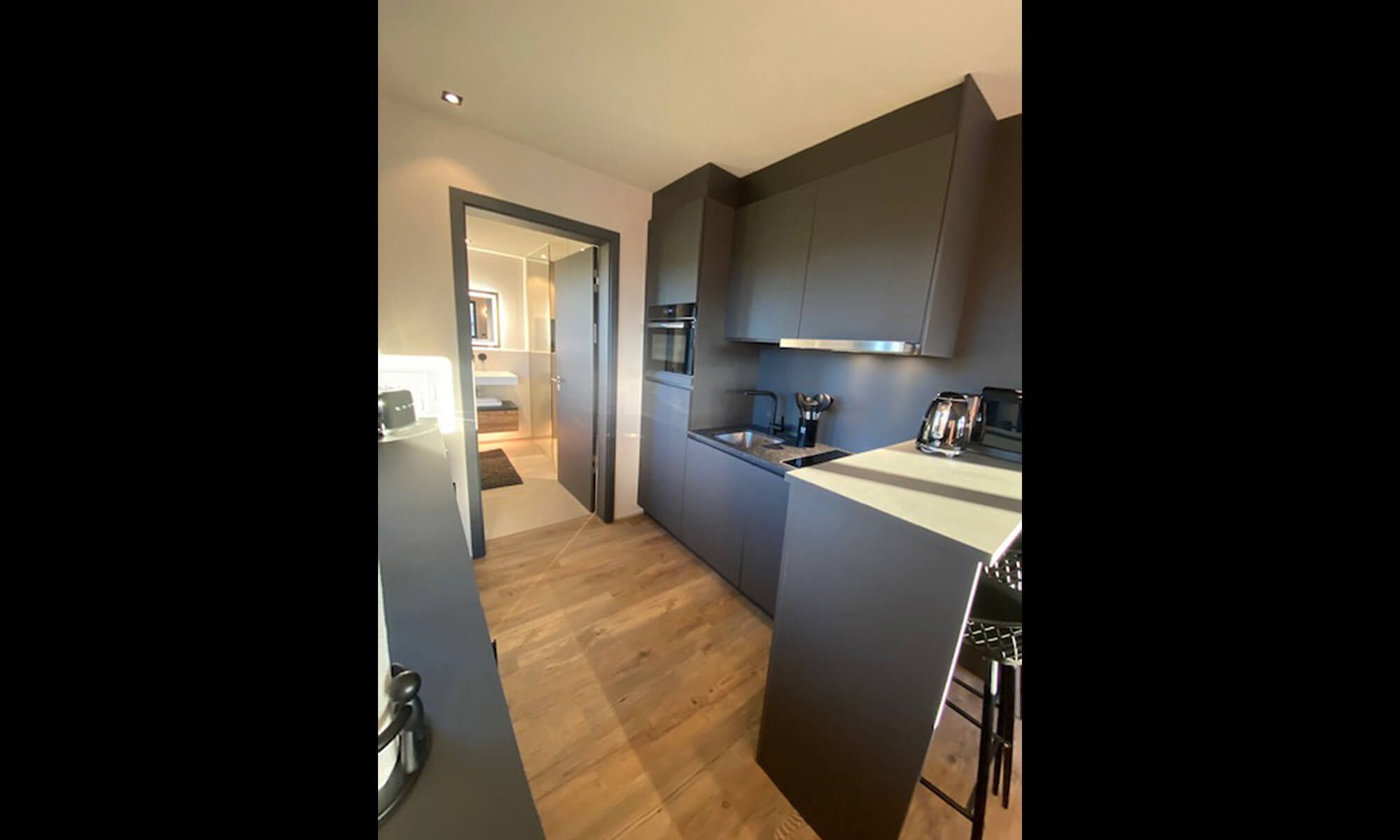 In unseren Küchen musst Du kein Hobbykoch werden, aber Du kannst. Denn hier ist alles drin: Spülmaschine, Backofen, Mikrowelle, Kühlschrank mit Tiefkühl-Fach, Nespresso-Maschine, Wasserkocher und Toaster. Selbst an die Kleinigkeiten haben wir gedacht: Küchenrolle, Küchentücher, Abfallbeutel, Spülmittel u. -tabs, Servietten, Salz und Pfeffer sowie einer Auswahl Kaffeekapseln und Teebeutel.