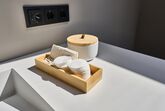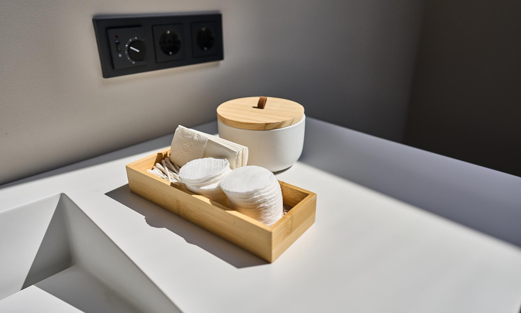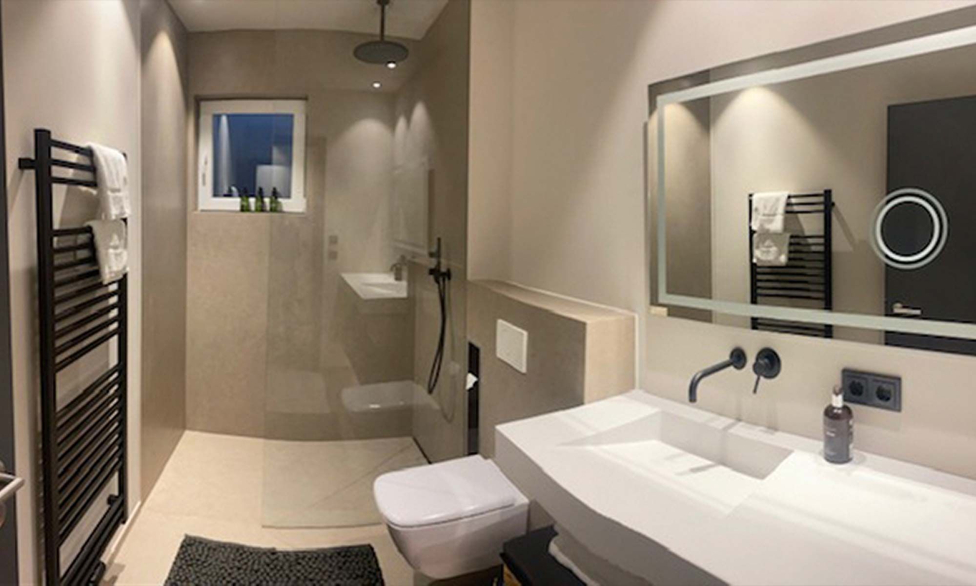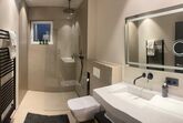 In jedem Bad findest Du eine barrierefreie Dusche mit Regenhimmel, einen Föhn und einen Handtuchtrockner. Dazu Shampoo, Conditioner, Duschgel und Handseife. Komm einfach rein. Und fang an, Dich zu erholen.