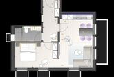 Untergeschoss mit Lichtgraben, 1,5 Zimmer, Wohnraum mit Küche und Schlafcouch, separat ( aber ohne Tür) 1 Schlafraum, Duschbad.