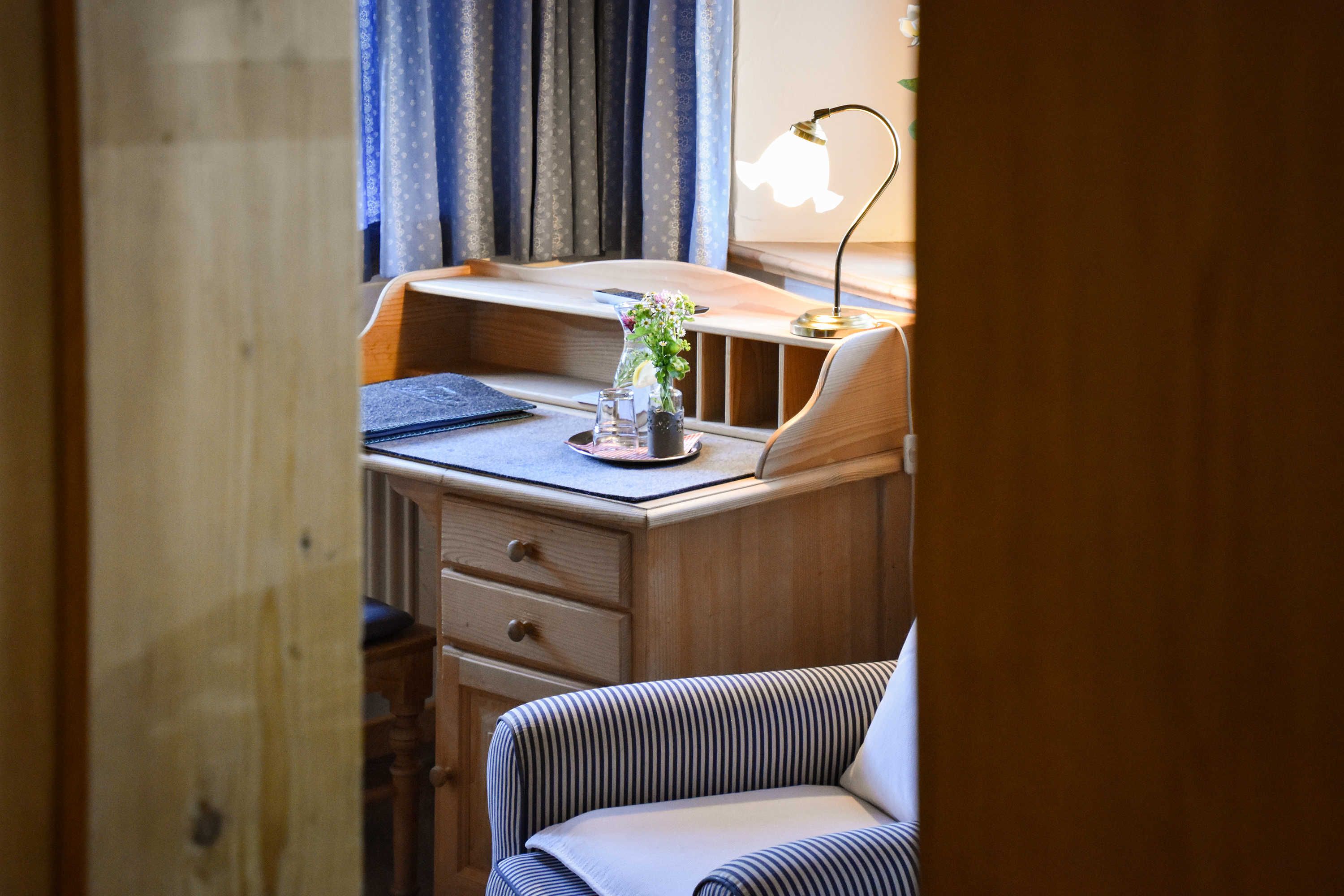 Unser gemütliches Einzelzimmer im Erdgeschoss mit Seeblick ist mit Bad mit Dusche/WC, Flachbild-TV mit Satellitenanschluss und Wlan ausgestattet. Es ist 18 m² groß und dank dem Holzfußboden auch für Allergiker geeignet.