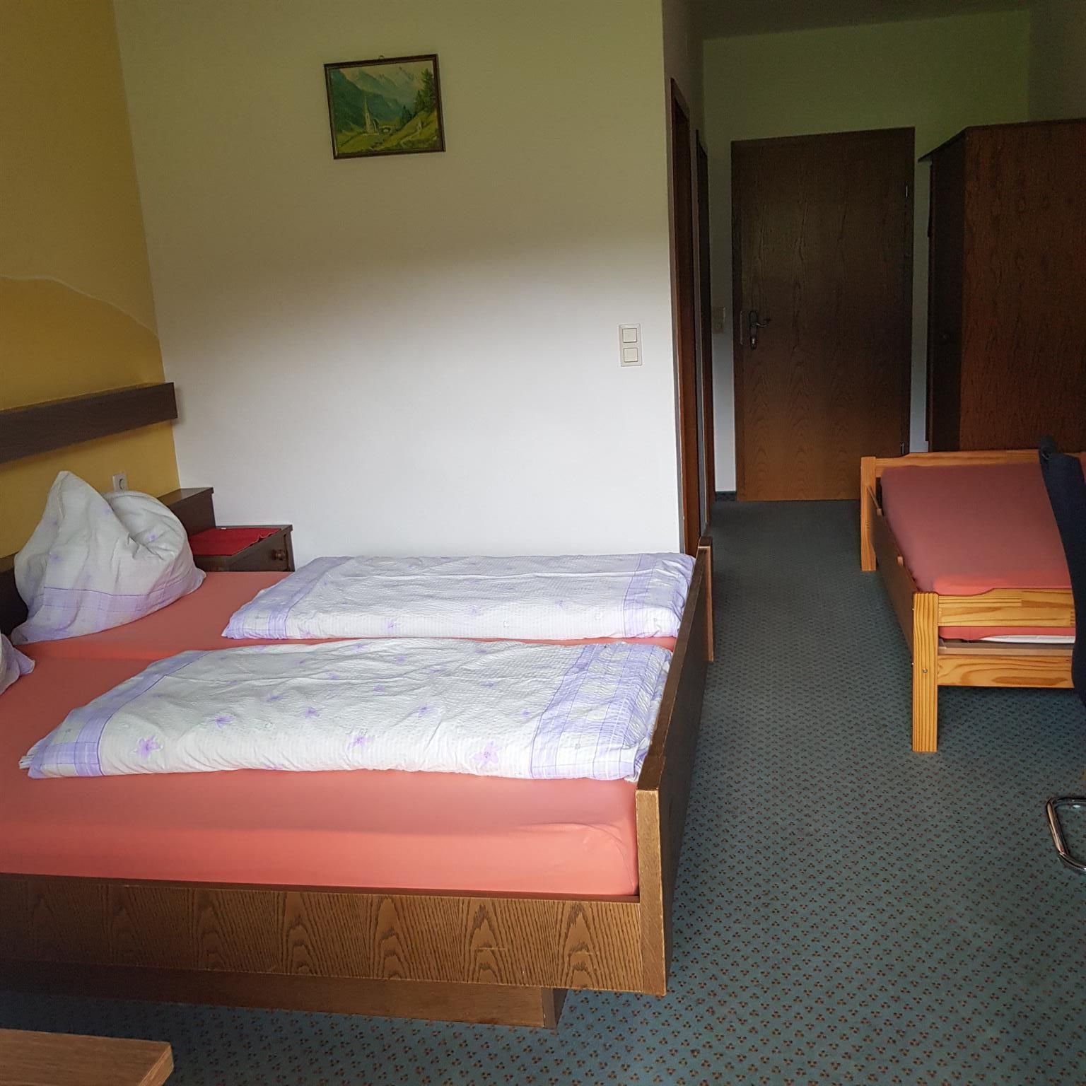 Doppelzimmer mit Bad/WC getrennt(20 m² ohne Nassräume), Zusatzbett möglich, Kühlschrank, WLAN, TV, Radio und möblierter Balkon,