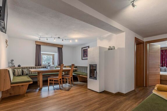 Das modern eingerichtete Appartement „Stuibenfall“ befindet sich im 1. Stockwerk mit 80 m² und ist durch einen eigenen Eingangsbereich über eine Wendeltreppe erreichbar. 2 Dreibettzimmer, ein offener Wohnbereich mit Kamin und großem Essbreich, eine komplett ausgestattete Küche mit Zugang zum Balkon, ein Badezimmer mit Badewanne und WC und ein Badezimmer mit Dusche und WC. Im Wohnzimmer und in den Schlafzimmern befinden Flat-TV. In der komplett ausgestatteten Küche stehen zusätzlich eine Kaffeemaschine mit Filter, eine Nespresso Kapselmaschine und eine Geschirrspülmaschine zu Ihrer Verfügung bereit. Ein kleiner Balkon mit Sitzgelegenheit ladet zum Verweilen im Freien ein. Ein kleiner Spielbereich für Kinder befindet sich im Parterre des Hauses.