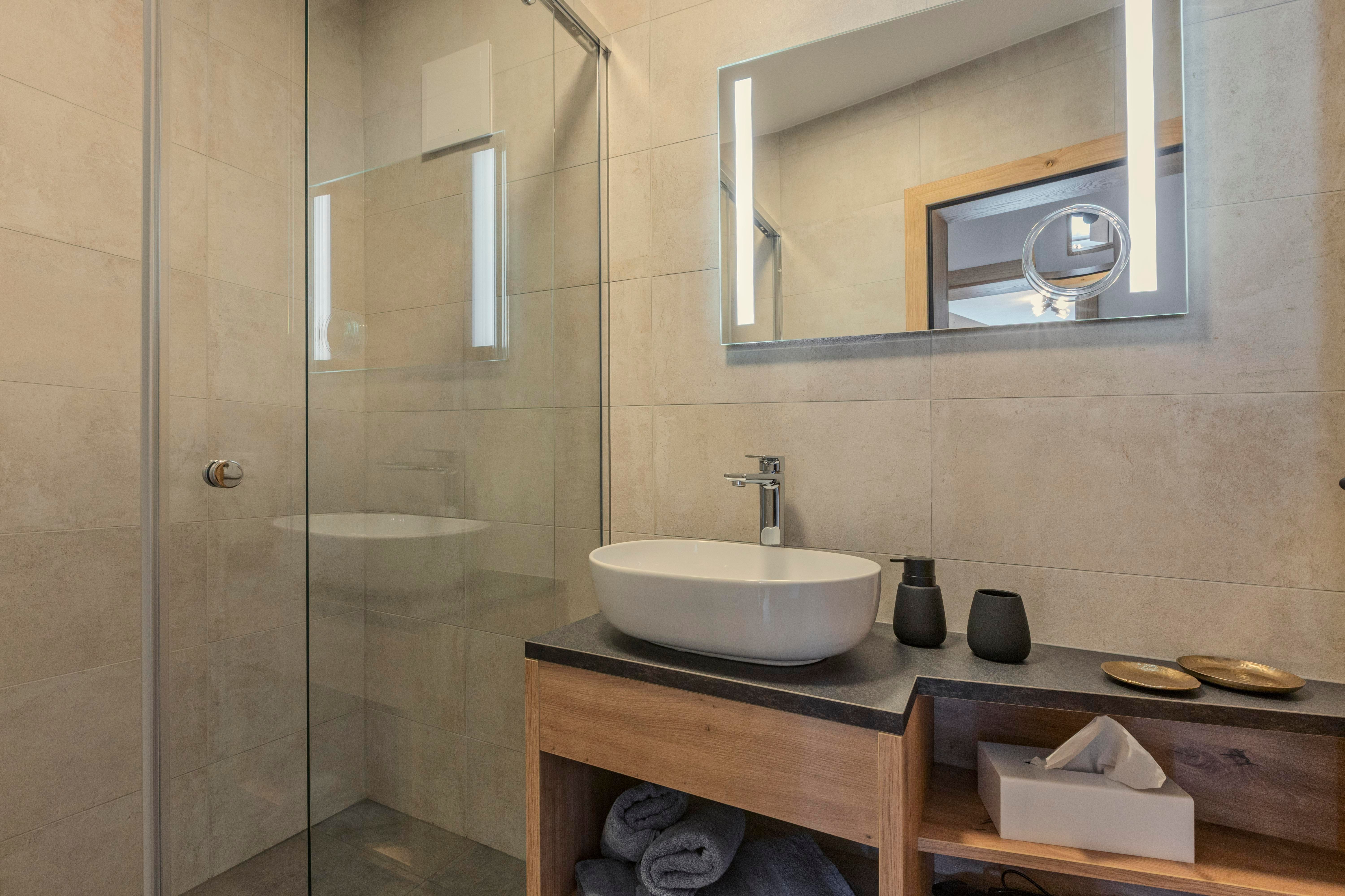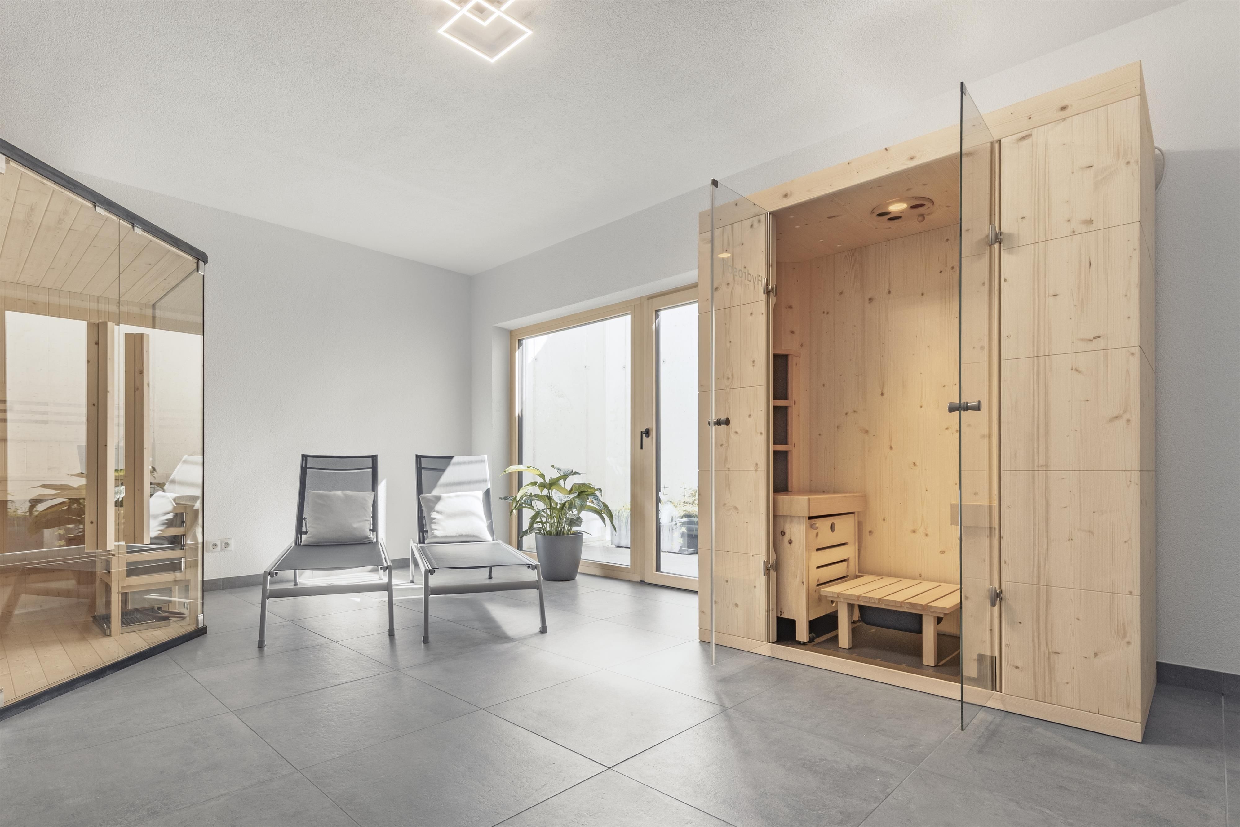 Im Untergeschoss steht ein Skiabstellraum mit Skischuhtrockner sowie eine Waschmaschine mit Wäscheständer zur Verfügung. Der Wellnessbereich bietet eine Sauna, eine Hydrosoft-Infrarotkabine (3x pro Aufenthalt inklusive) sowie einen Ruhebereich mit Trinkbrunnen, Teebar und Zugang zum Lichthof.