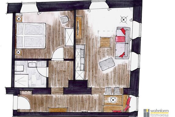 Das Apartment wurde mit viel Liebe zum Detail und sehr hochwertig im April 2019 saniert. Die Ausstattung der Wohnung ist modern und lädt zum Entspannen ein. Ein Highlight in diesem Apartment ist der sichtbare Gebälk, welches aufwendig als Blickfang der Wohnung aufgearbeitet wurde.