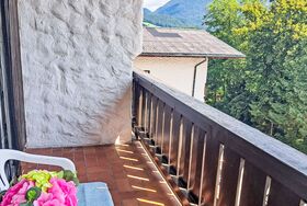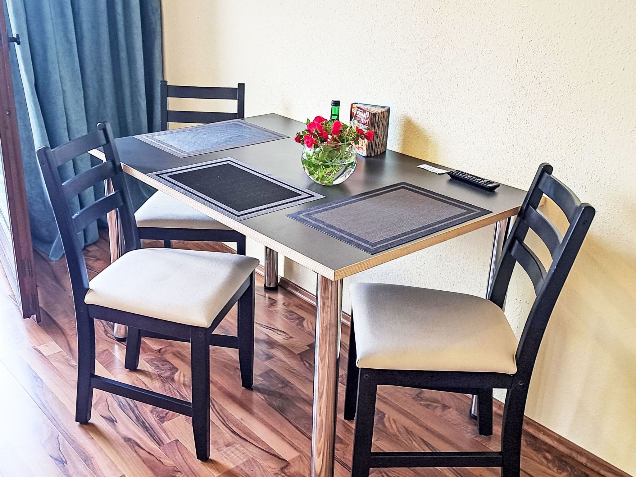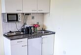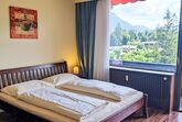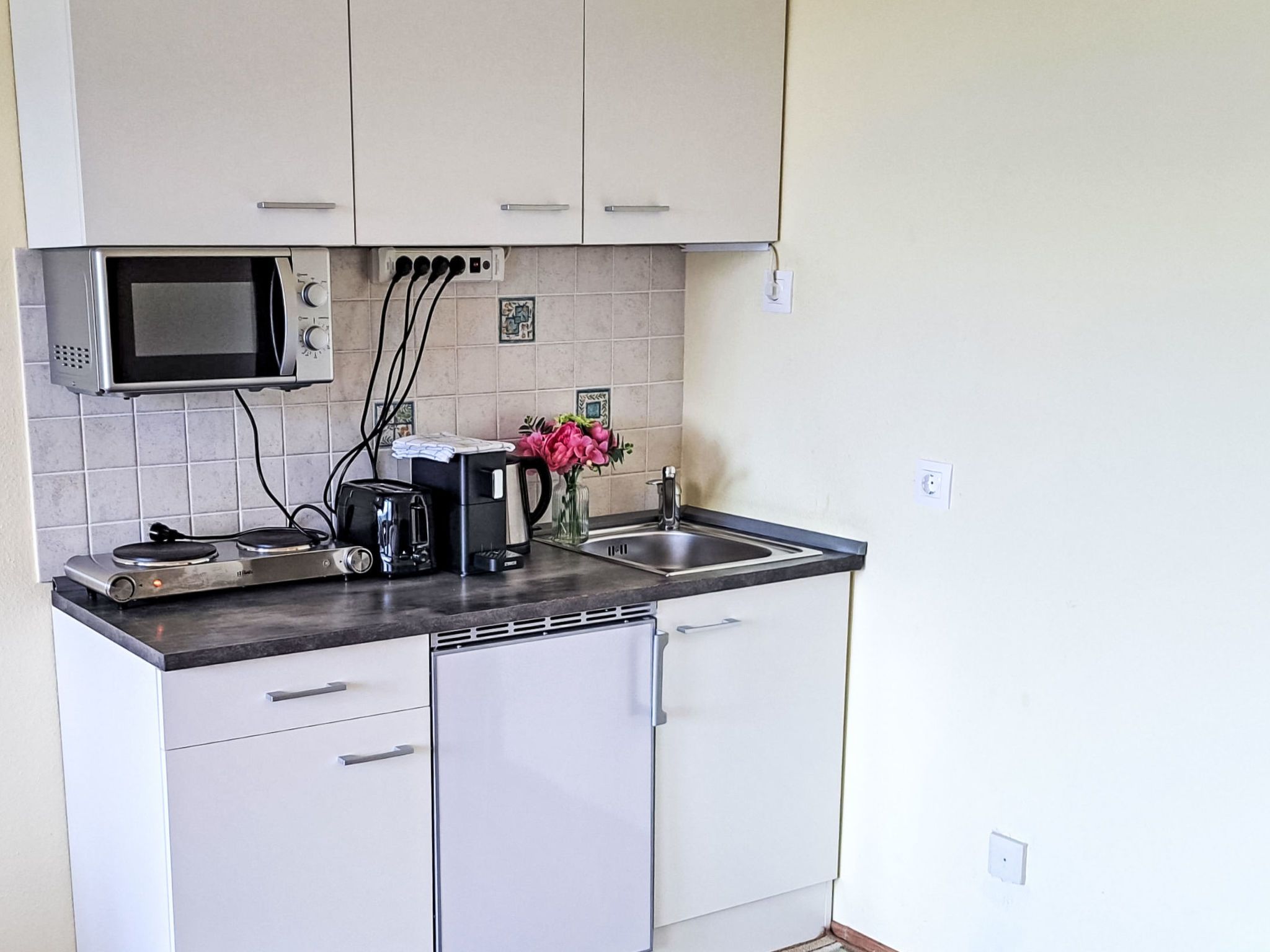 Wohnung 414 Bergblick, 1-Zimmer-Wohnung 30 m2. Einfach und gemütlich eingerichtet: Wohn-/Schlafzimmer mit 1 Diwanbett, 1 Doppelbett und Sat-TV (Flachbildschirm), E-Heizung. Offene Küche (2 Kochplatten, Wasserkocher, Mikrowelle) mit Esstisch. Dusche/WC. Balkon 6 m2. Balkonmöbel. Schöne Sicht auf die Berge. Zur Verfügung: Internet (WLAN, gratis). Bitte beachten: Nichtraucher-Unterkunft.