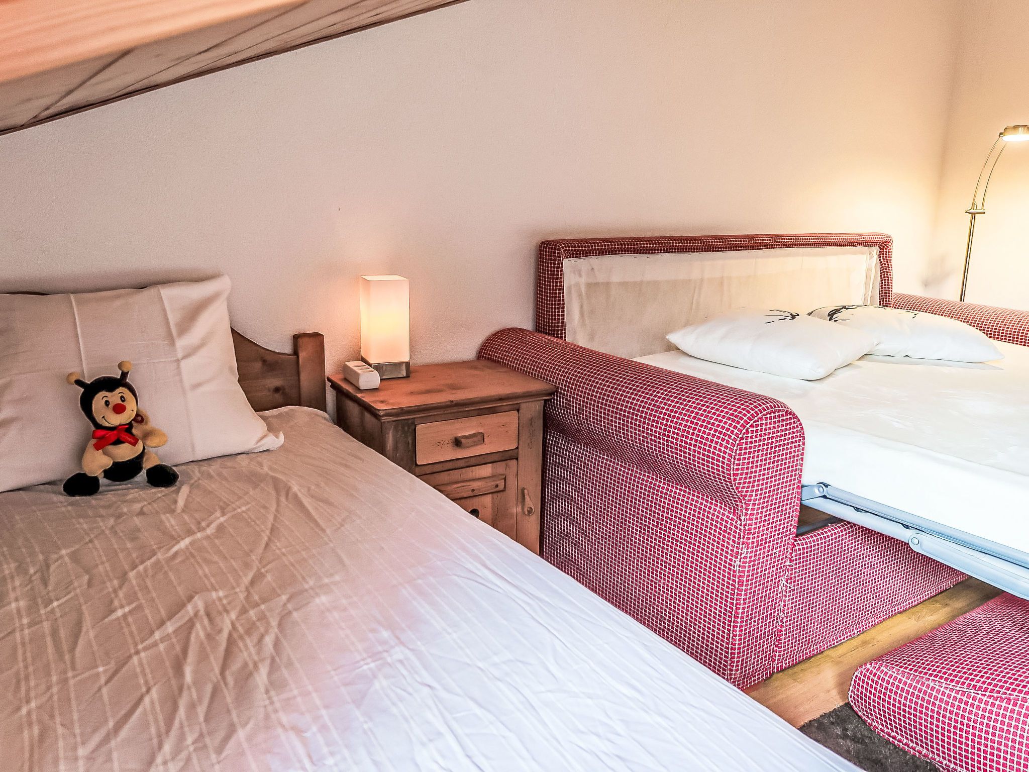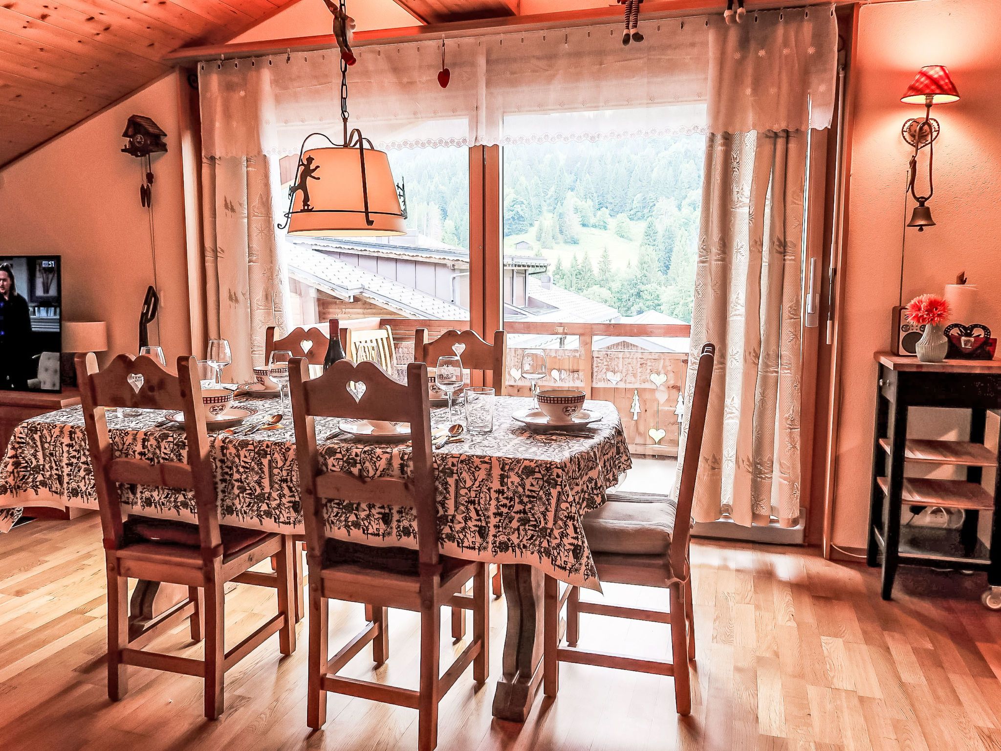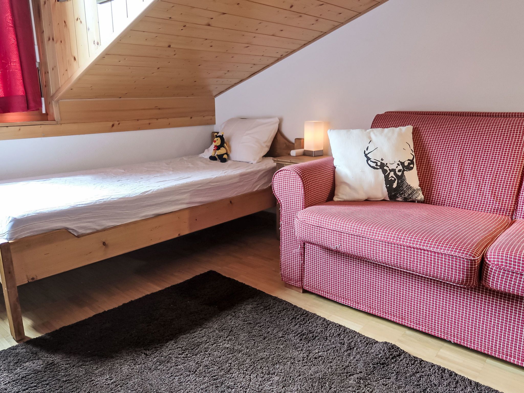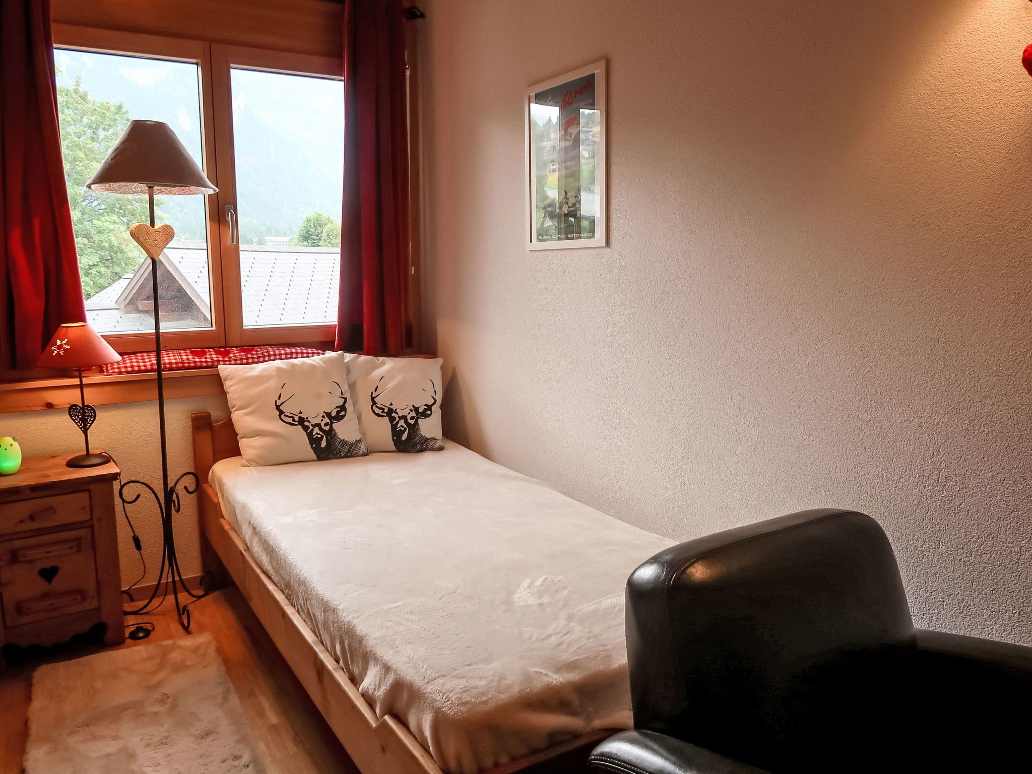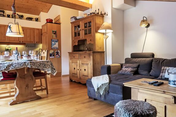 Mon Abri B, 4-Zimmer-Wohnung im 3. Stock, Südwestlage. Komfortabel und geschmackvoll eingerichtet: Wohn-/Esszimmer mit Kabel-TV und Flachbildschirm. Ausgang zum Balkon, Richtung Südwesten. 1 Zimmer mit 1 Doppelbett (160 cm, Länge 200 cm). 1 Zimmer mit 2 Betten (90 cm, Länge 190 cm). 1 Zimmer mit 1 Bett (90 cm, Länge 190 cm), 1 Diwanbett (150 cm, Länge 190 cm). Offene Küche (4 Glaskeramikplatten, Toaster, Wasserkocher, elektrische Kaffeemaschine, Kapseln für die Kaffeemaschine (Nespresso) extra, Racletteofen, Fondue Set (Chinoise, Käse)). Bad/WC, Dusche/WC. Balkon, Südwestlage. Balkonmöbel. Schöne Sicht auf die Berge und die Landschaft. Zur Verfügung: Waschmaschine, Haartrockner. Internet (WLAN, gratis). Garage. Bitte beachten: Nichtraucher-Unterkunft.