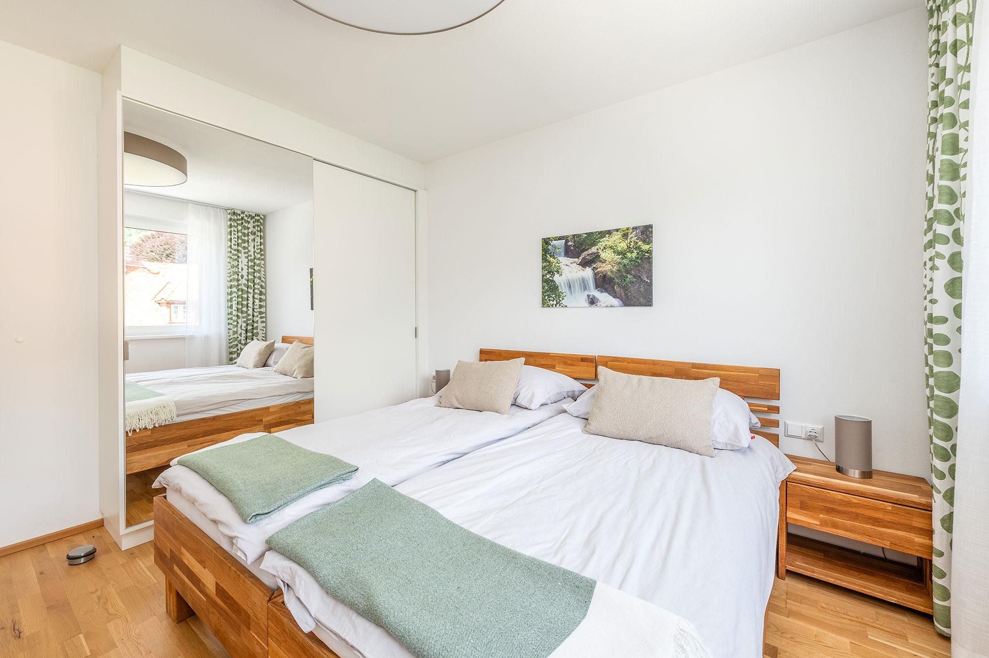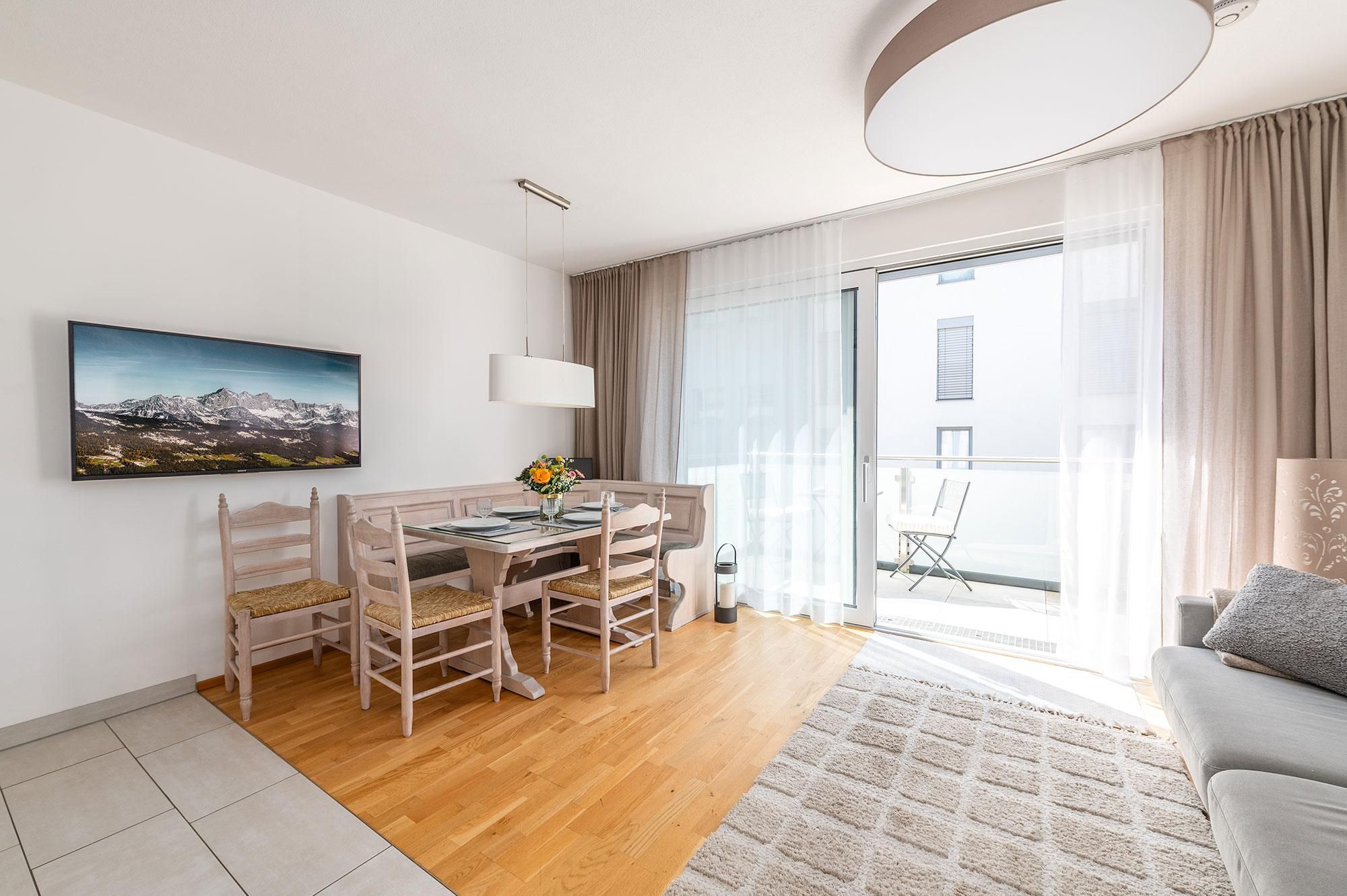 Das hochwertig eingerichtete Neualm 5 vom myNests im Herzen Schladmings bietet Platz für bis zu 6 Personen. Mit seinem modernen Charme bietet das Apartment eine gemütliche, entspannende Atmosphäre mit 2 Schlafzimmern (Doppelbetten) und einem Schlafsofa im Wohnbereich. Einen wunderschönen Ausblick auf die Berge haben Sie auf der großzügigen Terrasse - perfekt für laue Sommernächte. Das Apartment verfügt über zwei Schlafzimmer mit Flat TV`s und eine voll ausgestattete Küche mit Geschirrspüler, Backofen und Kaffeemaschine.
