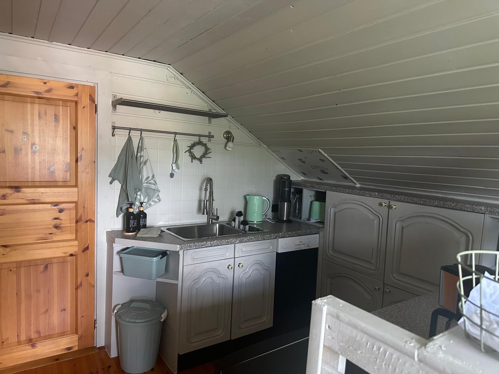 Die voll ausgestattete Küche hat einen Geschirrspüler, Induktionsherd mit Backofen und einen Kühlschrank mit Gefrierfach. Außerdem befinden sich in der Küche ein Wasserkocher, eine Kaffeemaschine, eine Brotschneidmaschine, ein Rührgerät, ein Toaster und ein Soda-Stream. Geschirrtücher, Spülmittel, Seife und Küchentuch sind vorhanden. Für eine gemütliche Kaffeepause oder fürs Frühstück gibt es Kaffee, Tee, Zucker und Kandis. Auch Essig, Öl und Gewürze sind vorrätig.