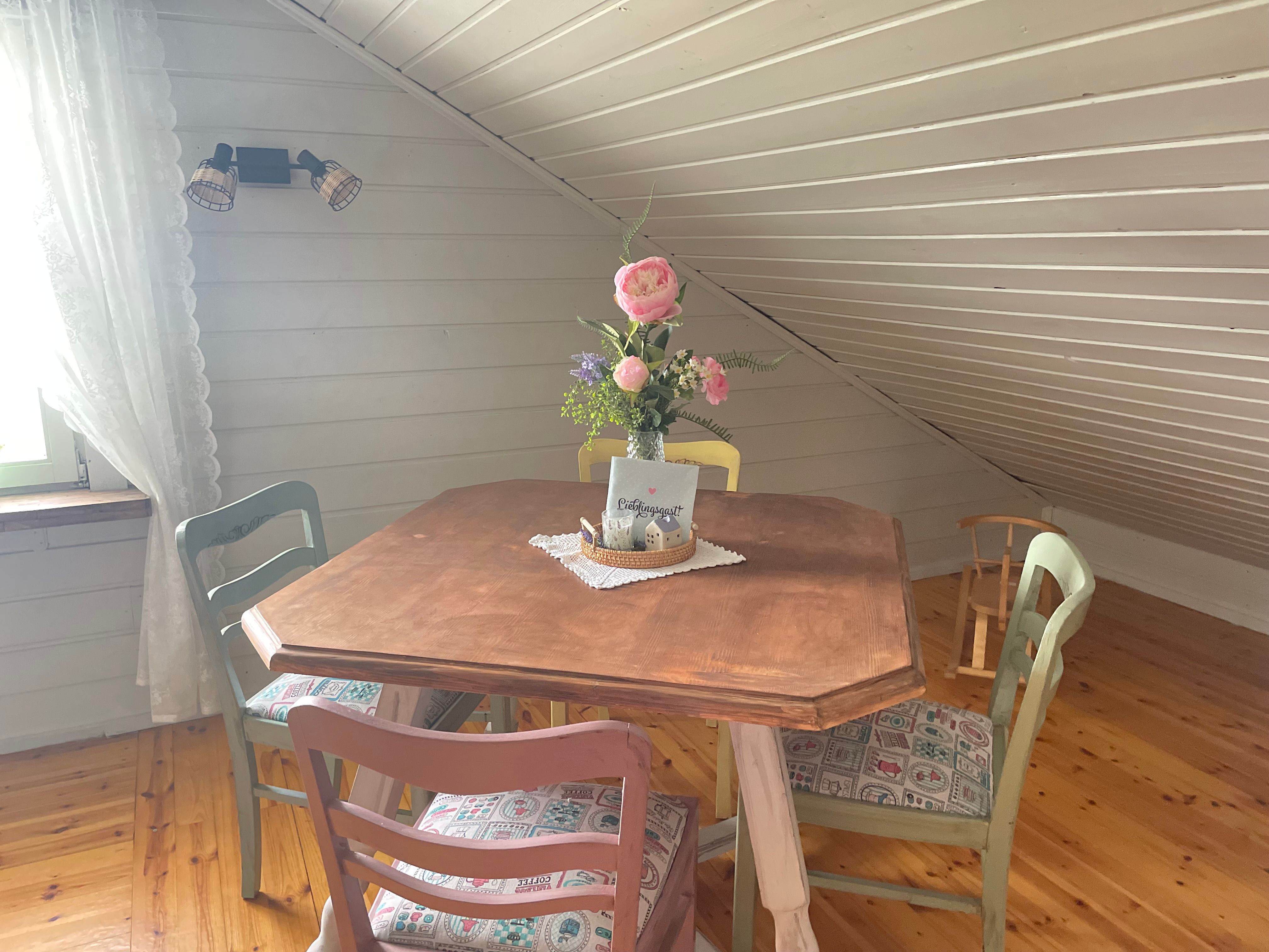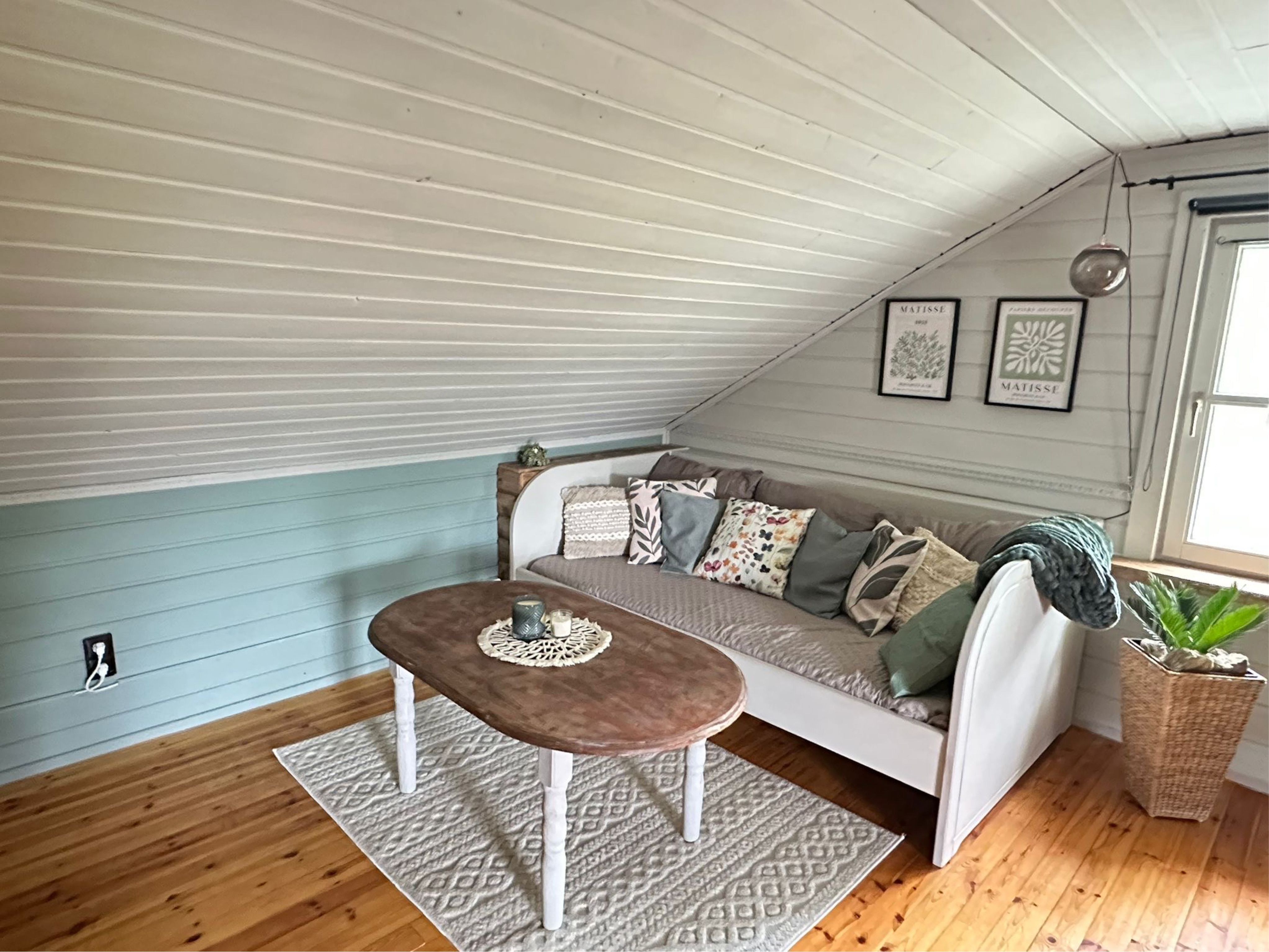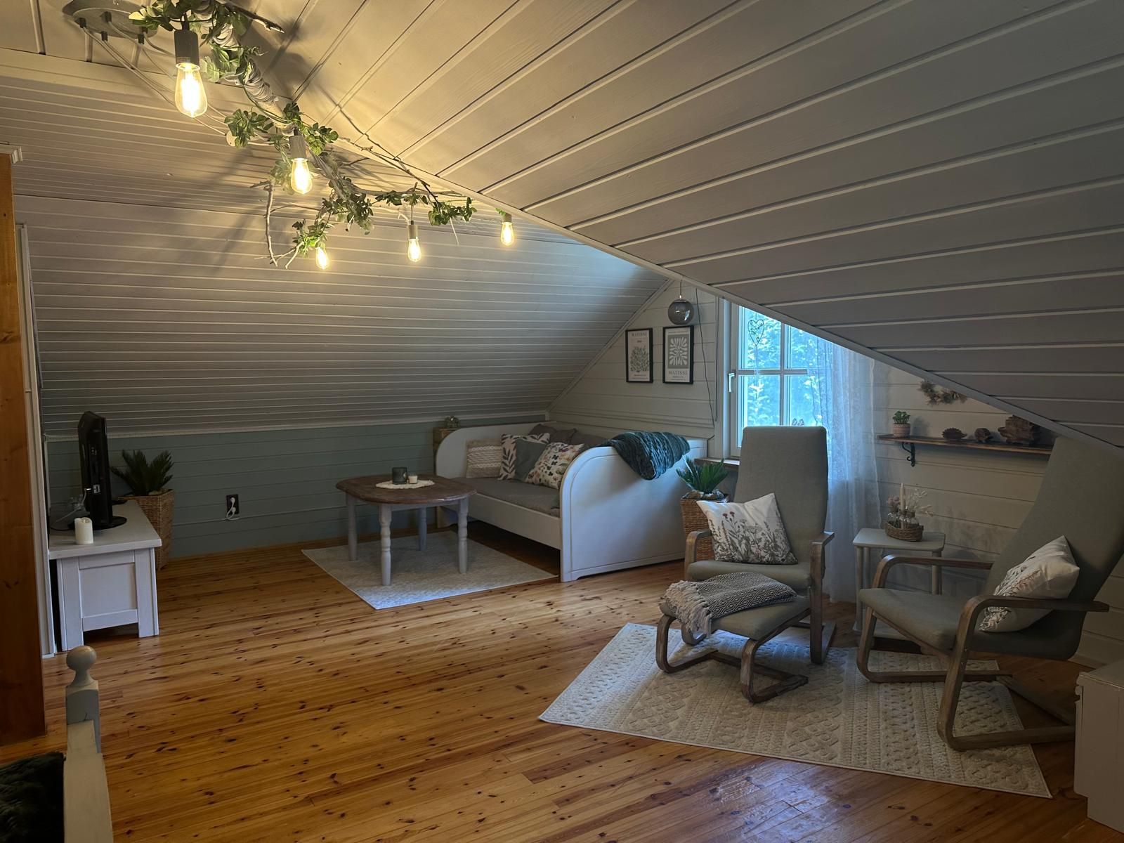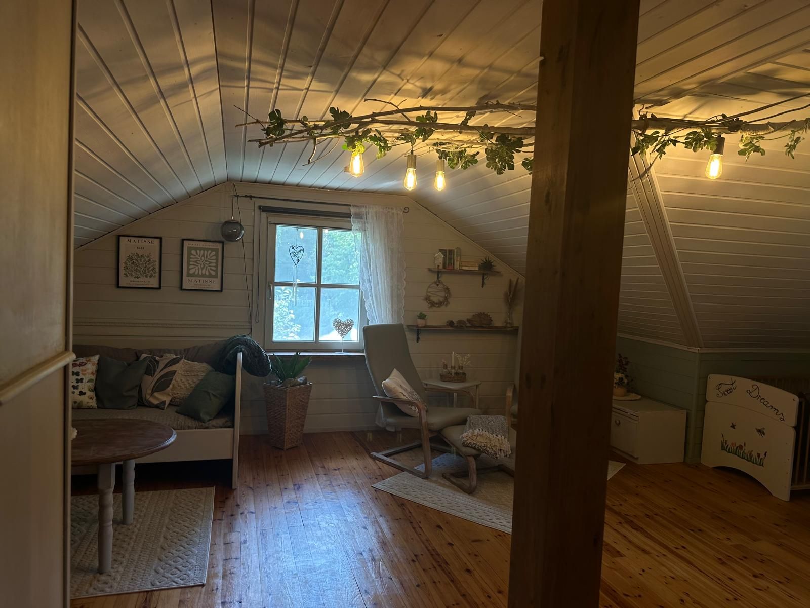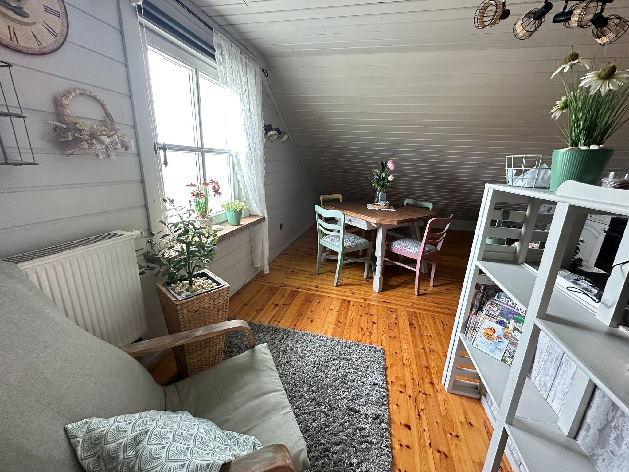 Genießen Sie erholsame Tage in unserer gemütlichen und neu renovierten Ferienwohnung Midsommar in unserem schönen finnischen Blockbohlen-Haus in ruhiger Lage am Ortsrand . Das Haus wurde vor 30 Jahren gebaut und wir haben es 2015 in unser kleines Bullerbü-Zuhause verwandelt und es rot mit weißen Fenstern gestrichen.