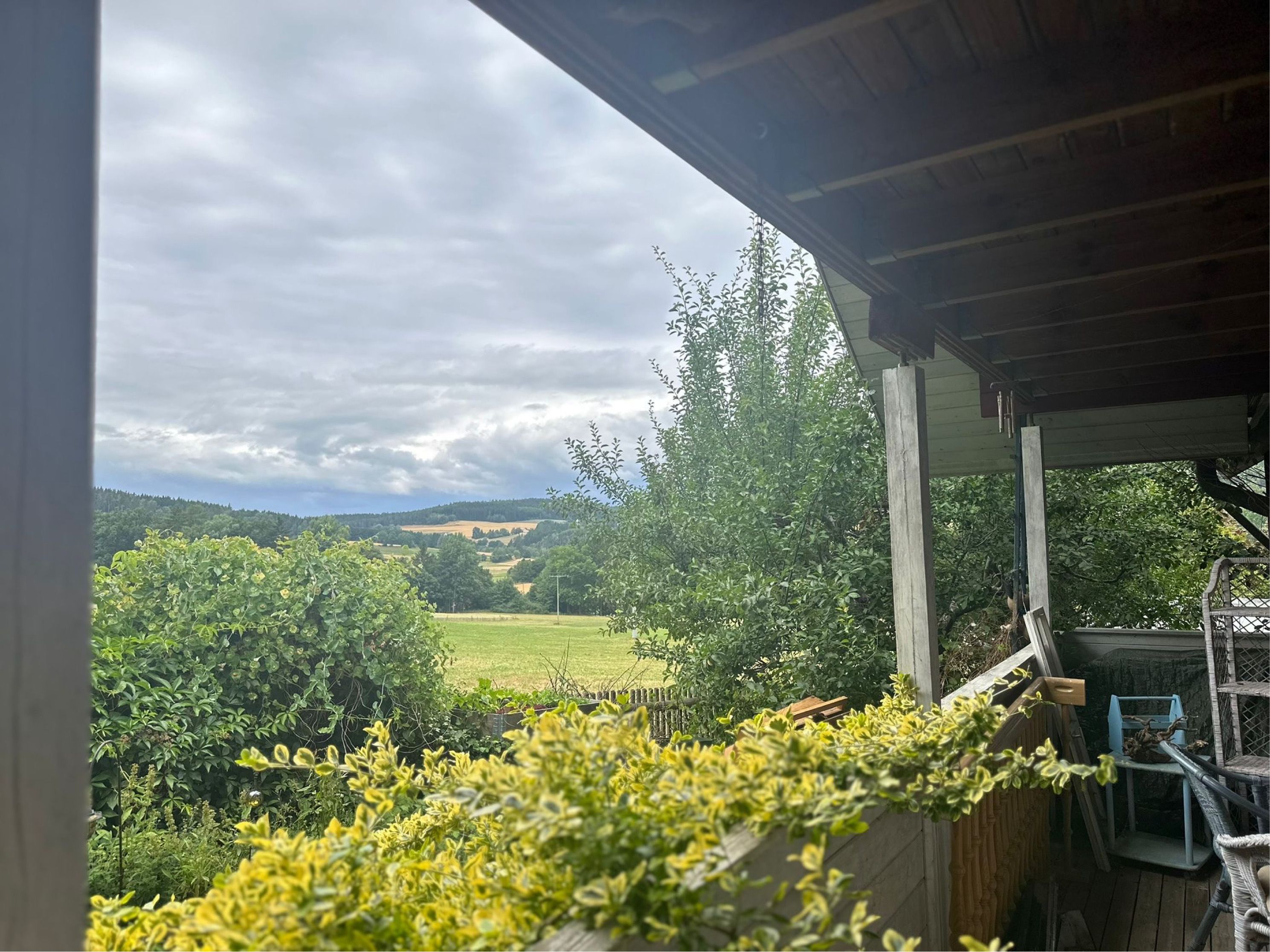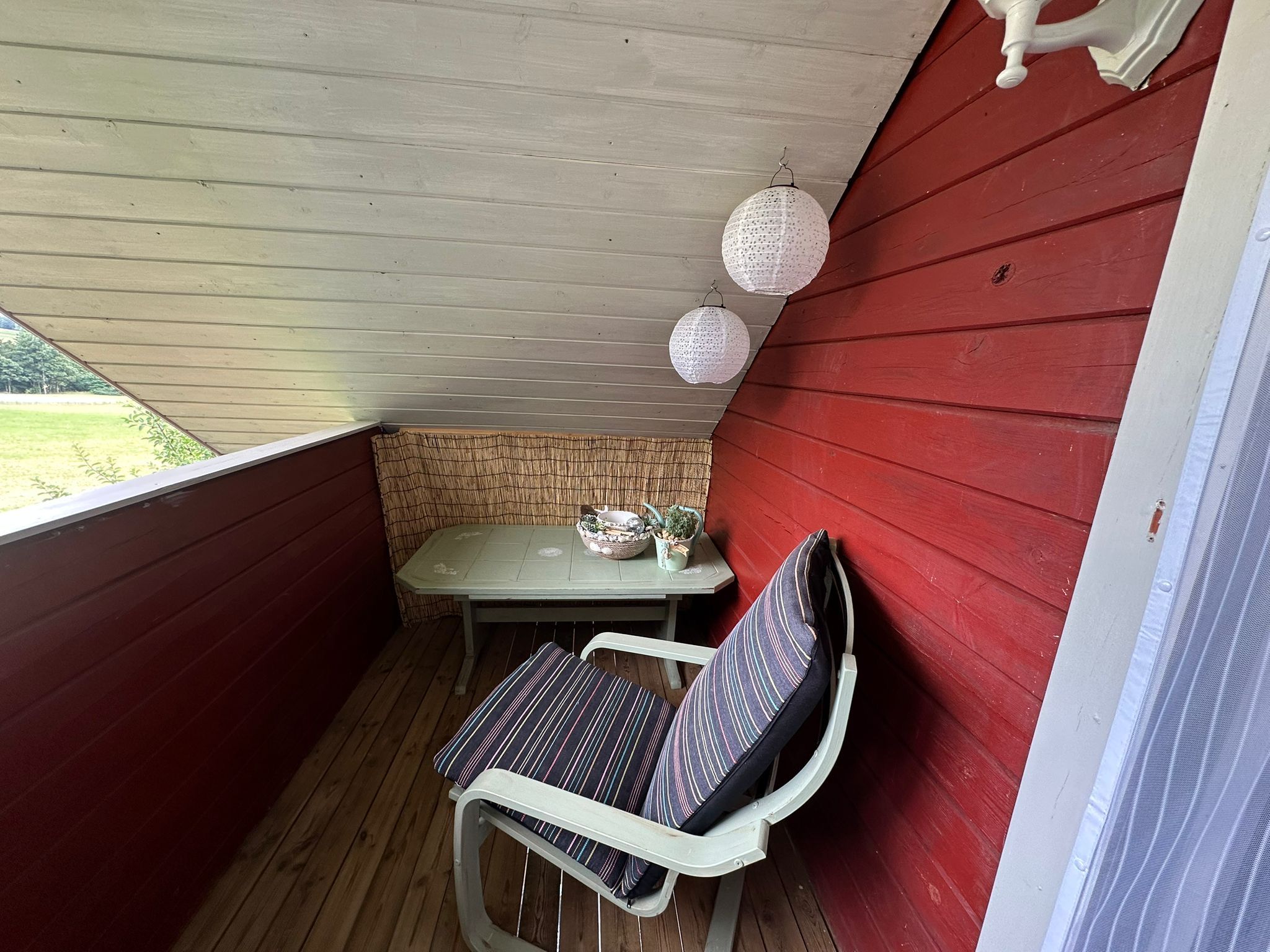 Der Balkon ist ideal für gemütliche Stunden und bietet eine schöne Aussicht auf die Natur.