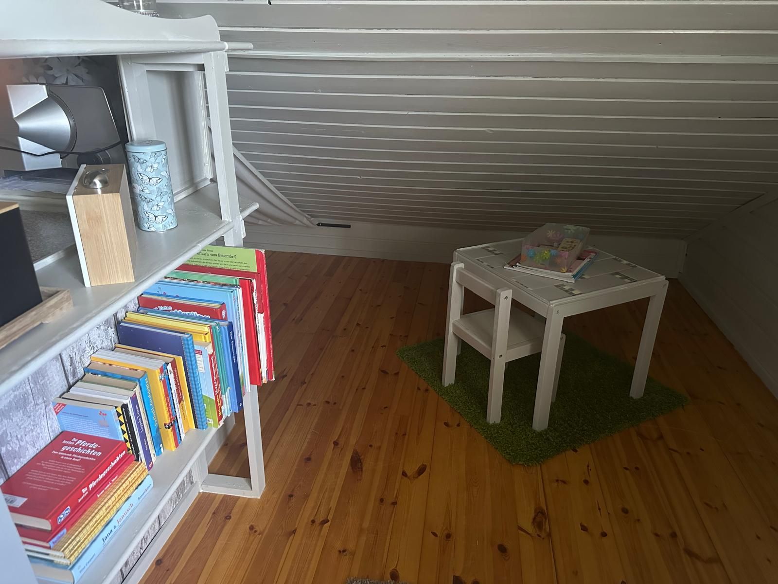 In der Küche befindet sich auch eine kleine Kinderecke mit Tisch und Stühlen und eine Kuschelecke. Verschiedene Spiele, Puzzle, Bücher und Malsachen sind vorhanden. Auf Wunsch stellen wir einen Kinderhochstuhl kostenfrei zur Verfügung.
