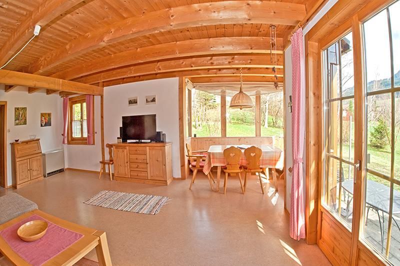 Im geräumigen Wohnzimmer finden Sie eine gemütliche Sofalandschaft und einen Erker mit Sitzecke. Hier haben Sie einen wunderbaren Südblick auf die Alpspitz und die Reutter Wanne. Im Winter können Sie die Sonne im Erker genießen, in den Sommermonaten lädt die große Südterasse mit direktem Zugang zum Garten zum Entspannen und Erholen ein.