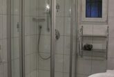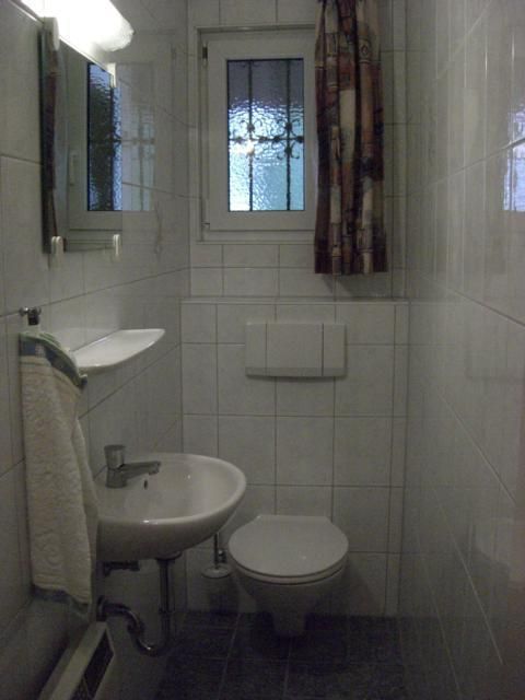 Unser Bad bietet reichlich Ablageflächen, wie auch in den Zimmern viel Platz angeboten wird.