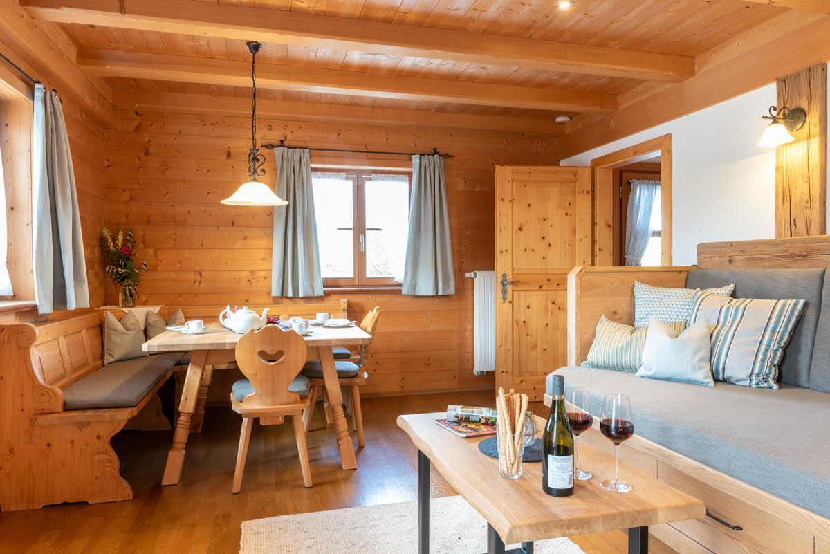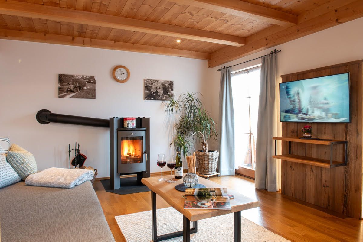 Unsere 4 Sterne Wohnung Spatzennest ist ca. 90 m² groß, hat einen Balkon auf dem Sie die Nachmittags- und Abendsonne genießen können und eine große Terrasse. die Wohnung wurde im Winter 2023/24 teilweise neu renoviert. Dabei entstand ein neues Badezimmer mit zwei Waschbecken und einer ebenerdig begehbaren Dusche. Außerdem wurde das Wohnzimmer erneuert. Darin befindet sich ein großzügiges Gflagg, eine Essecke und ein Kaminofen. Stellen sie sich vor, draussen ist es kalt, drinnen im Kaminofen lodert das Feuer und das Holz knistert, dann ein Buch zur Hand; das ist Urlaub!