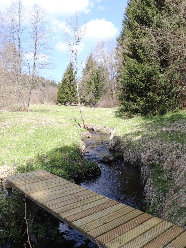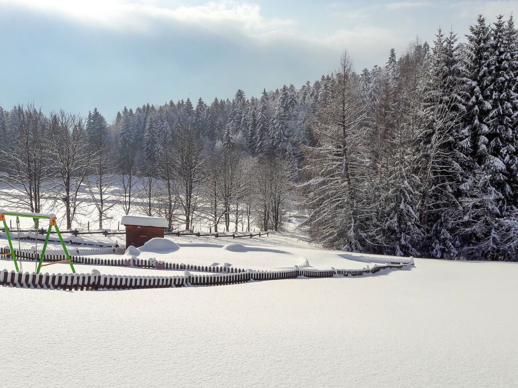 Kinderfreundliches Zweifamilienhaus Mühlberg. 2 km vom Zentrum von Spiegelau, am Ortsrand, am Hang. Zur Mitbenutzung: Grundstück 6'000 m2, Bäumen, Wiese, Teich, Schwimmbad (8 x 5 m, 120 cm tief, saisonale Verfügbarkeit: 01.Mai. - 01.Sep.). Kinderspielplatz (Schaukel, Sandkasten). Zur Alleinbenutzung: Grundstück 1'000 m2. Terrasse, Gartenmöbel, Grill, Parkplatz auf dem Grundstück. Einkaufsgeschäft 1 km. Wanderwege ab Haus 10 m, Bergeisenbahn 2.5 km, Skilift 2.5 km, Langlaufloipe 2 km, Eisfeld 300 m. Kleiner Wald mit Naturteich und Bachlauf. Hühnerstall mit Freilandgehege. Kinder dürfen die Hühner streicheln, füttern und sich selbst Eier holen.