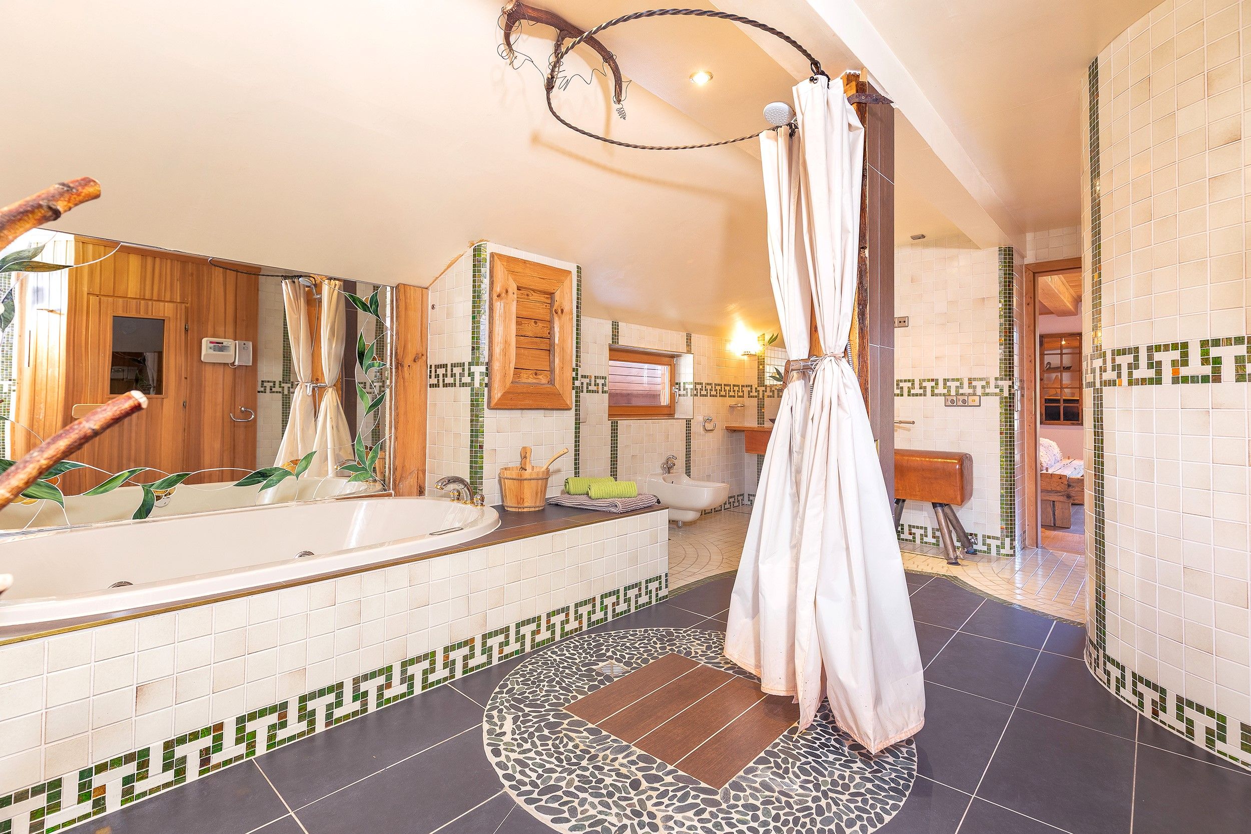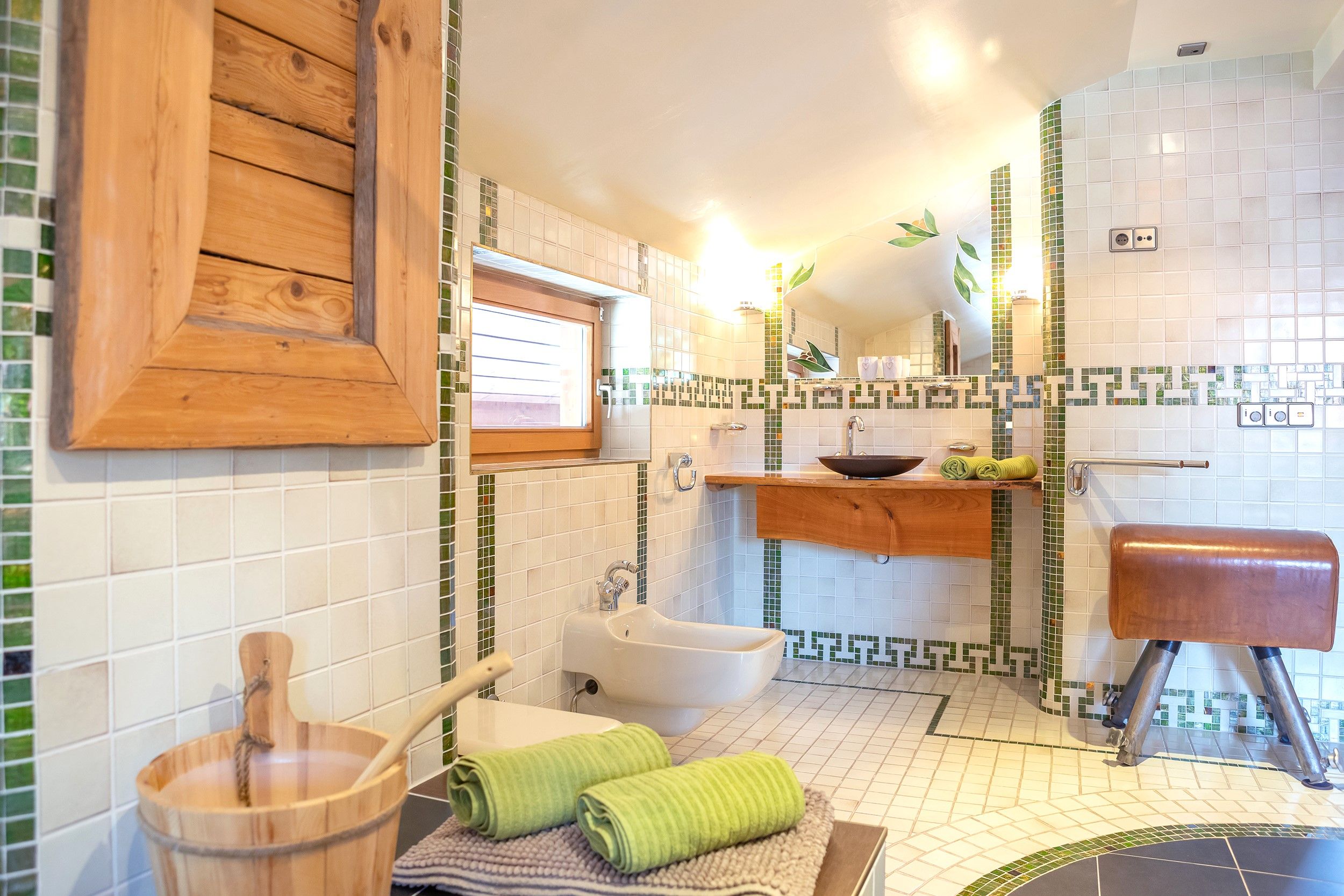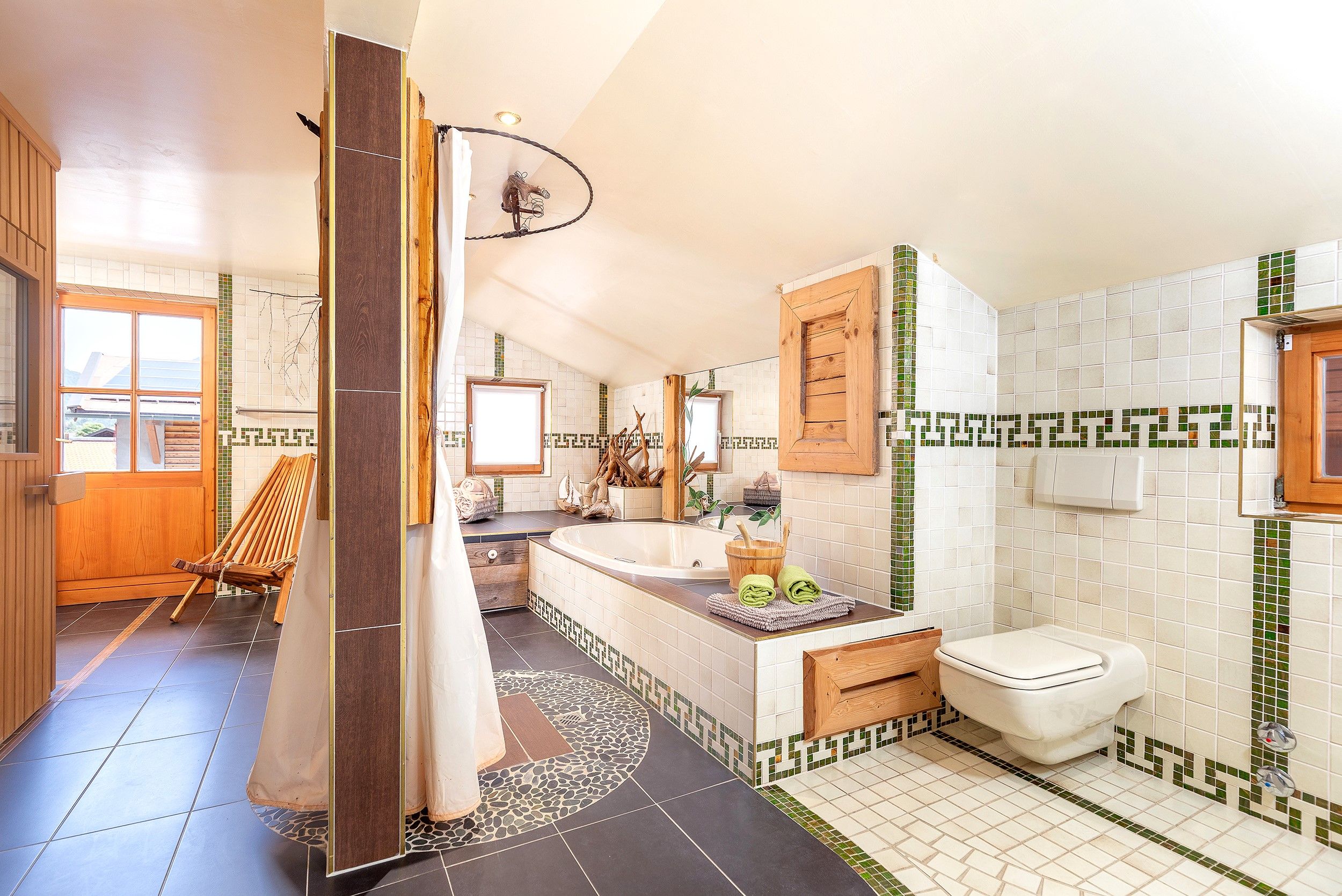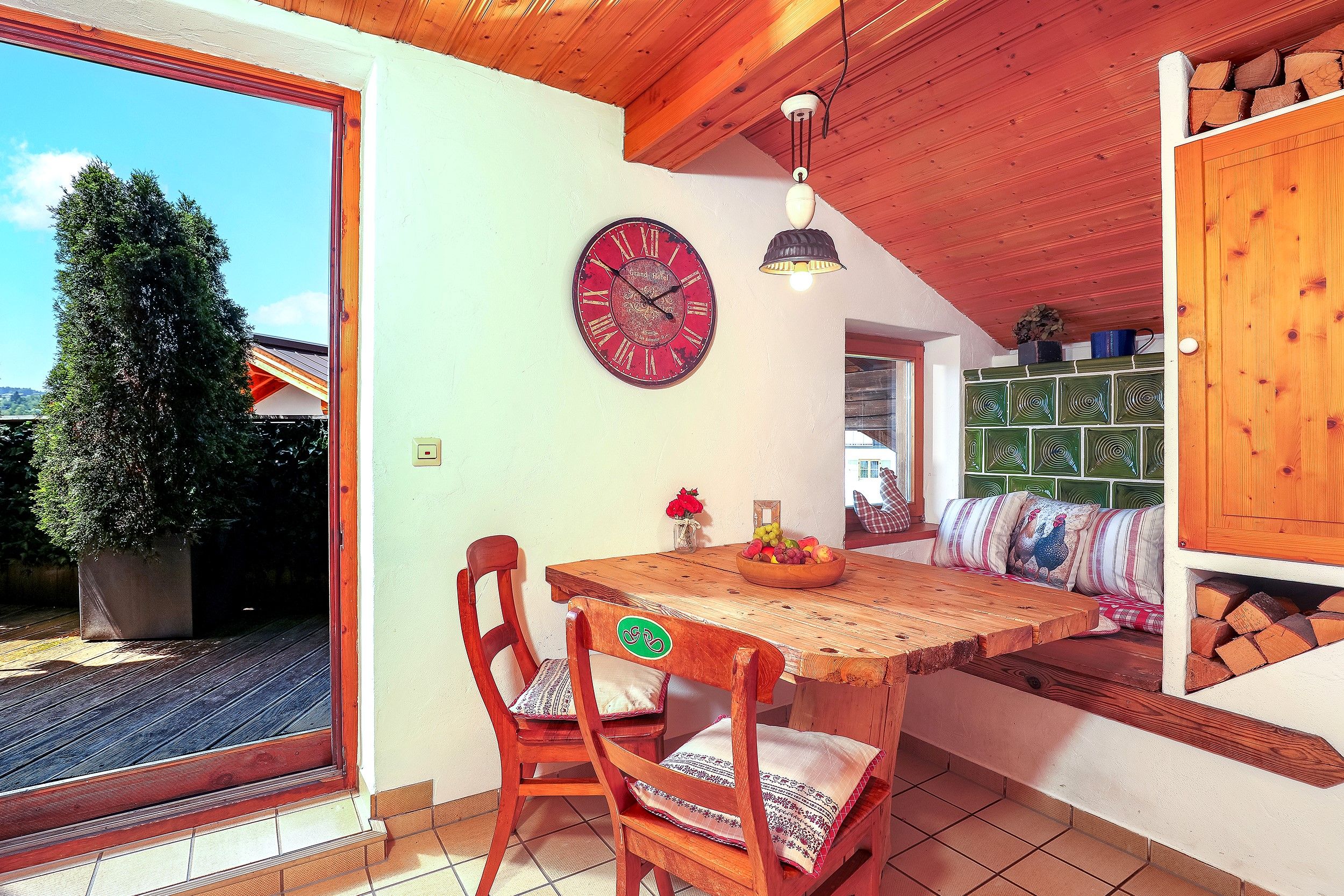 Herzlich Willkommen! Das Haus Kaiser Lodge befindet sich mitten in Reit im Winkl. Stellen Sie sich vor: Zentral, aber ruhig, nur wenige Schritte vom belebten Rathausplatz entfernt, und doch ein Ort der Gelassenheit. Die Ausstattung lässt das Herz höherschlagen: 75 m² Wohnfläche mit einem gemütlichen Schlafzimmer mit Doppelbett über 180 cm und einem Wohnzimmer mit zusätzlichem Doppelbett von 140 cm. Eine voll ausgestattete, moderne Küche, zwei helle Badezimmer, eine eigene Sauna, ein Balkon und das Highlight: Eine 35 m² große, möblierte Panorama-Dachterrasse, die perfekt für Sonnenuntergänge und unvergessliche Gespräche unter Sternen geeignet ist. Die Einrichtung besticht durch Liebe zum Detail: Romantischer Landhausstil, sorgfältig ausgewählte Stoffe und antike Möbel verleihen jedem Raum Charakter und Wärme. Besonderheiten, die Ihnen das Herz öffnen, sind eine vegan-freundliche Einrichtung (keine Tierprodukte) sowie, dass Hunde herzlich willkommen sind, denn gemeinsame Zeit mit Ihrem vierbeinigen Begleiter gehört doch zu einem perfekten Urlaub dazu. Ferner inklusive sind WLAN, 1-2 Parkplätze, Bettwäsche und Handtücher, Endreinigung, 24h-Notfall-Hotline, ein Büro für alle Anliegen in zwei Gehminuten, und Gästekarten mit vielen Vorteilen. Die Umgebung verzaubert: Reit im Winkl gilt als eines der schönsten Alpendörfer Bayerns, eingerahmt von der Tiroler und Chiemgauer Bergwelt. Highlights in der Nähe sind die Winklmoosalm mit ihrem großen Skigebiet, unberührte Berglandschaften, kristallklare Seen wie der Weitsee, traumhafte Fahrradwege, abwechslungsreiche Wanderrouten und spannende Klettersteige.