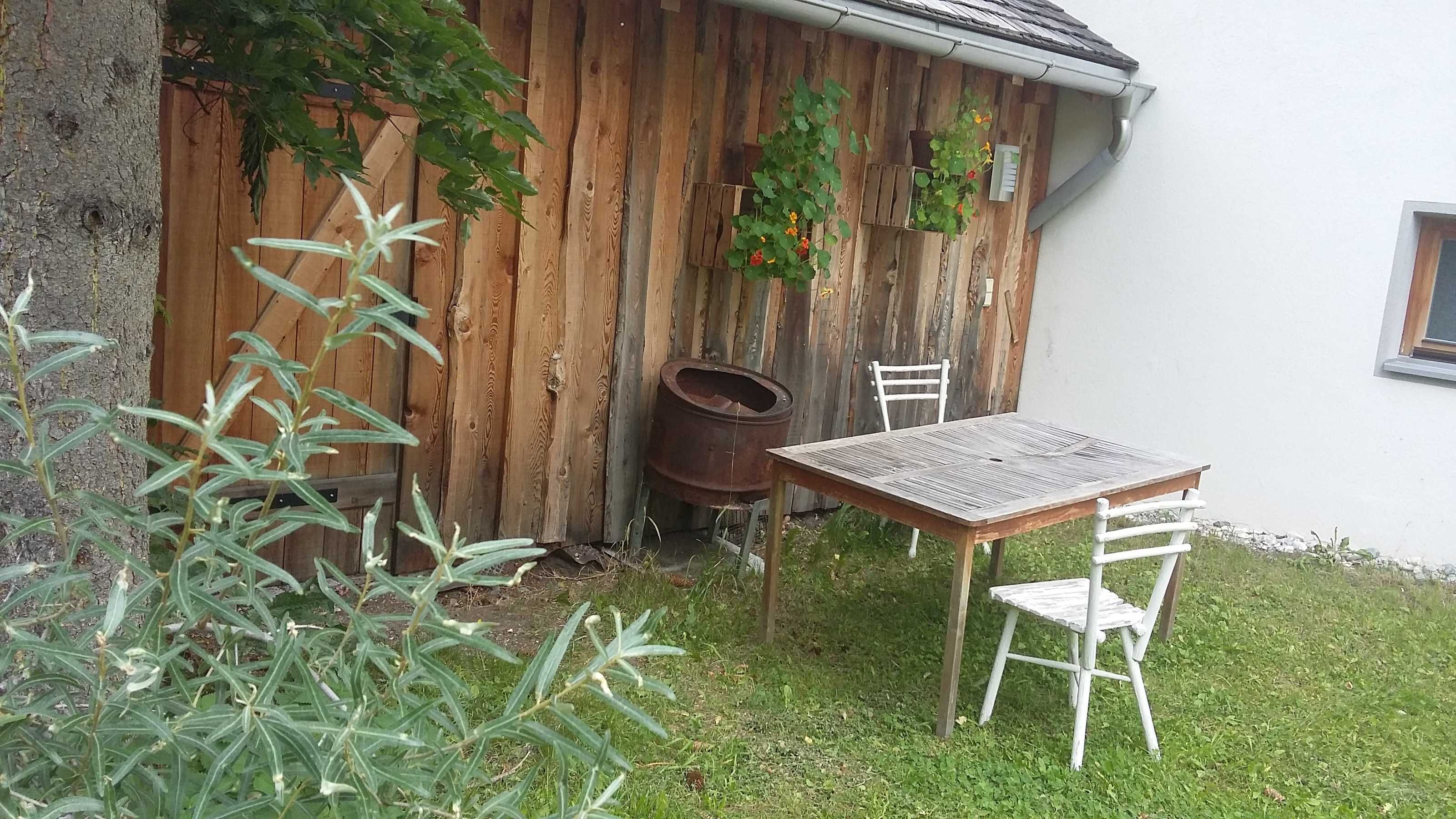 Abends sitzen wir gerne bei unserem Bächlein, grillen und genießen die Ruhe und ein Glas Wein.