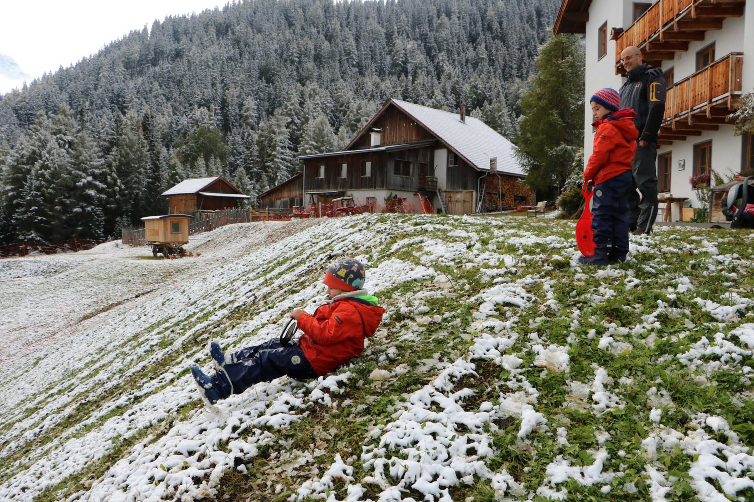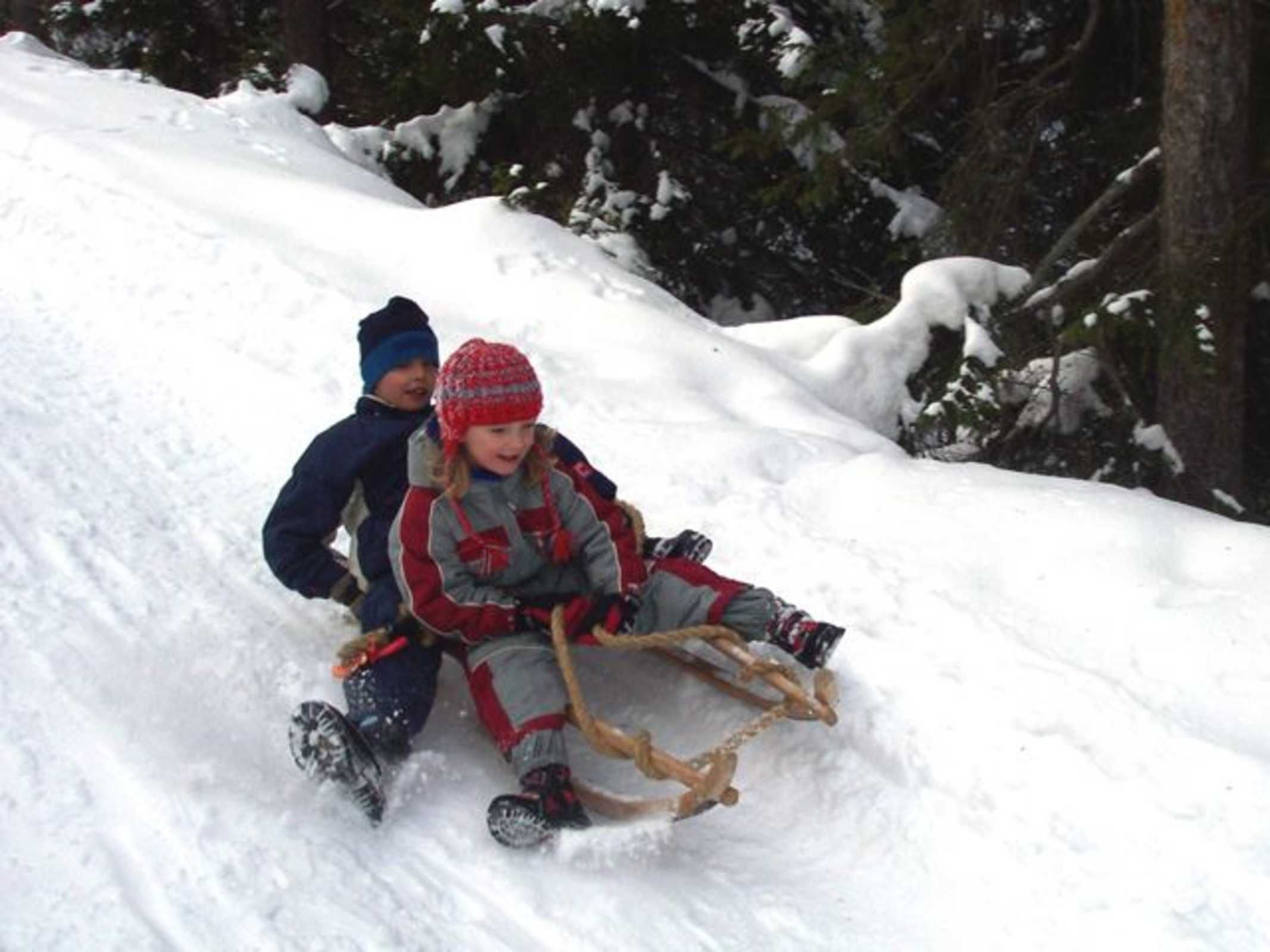 Der Winter auf dem Bergbauernhof ist ein bisschen ruhiger als der Sommer: viel Zeit für Schneeschuhwanderungen durch den tief verschneiten Wald oder eine Rodelpartie zum Schwarzen See.