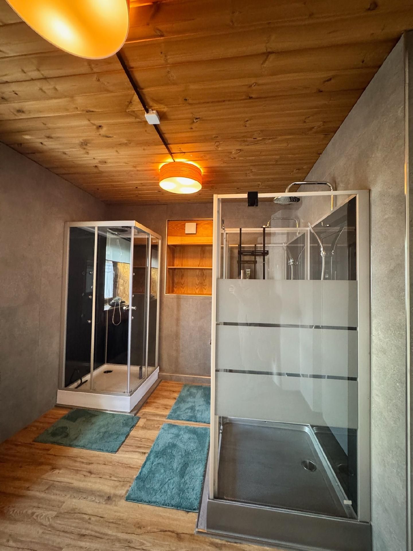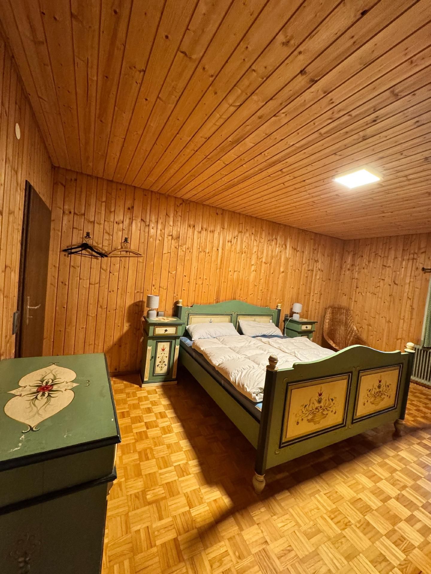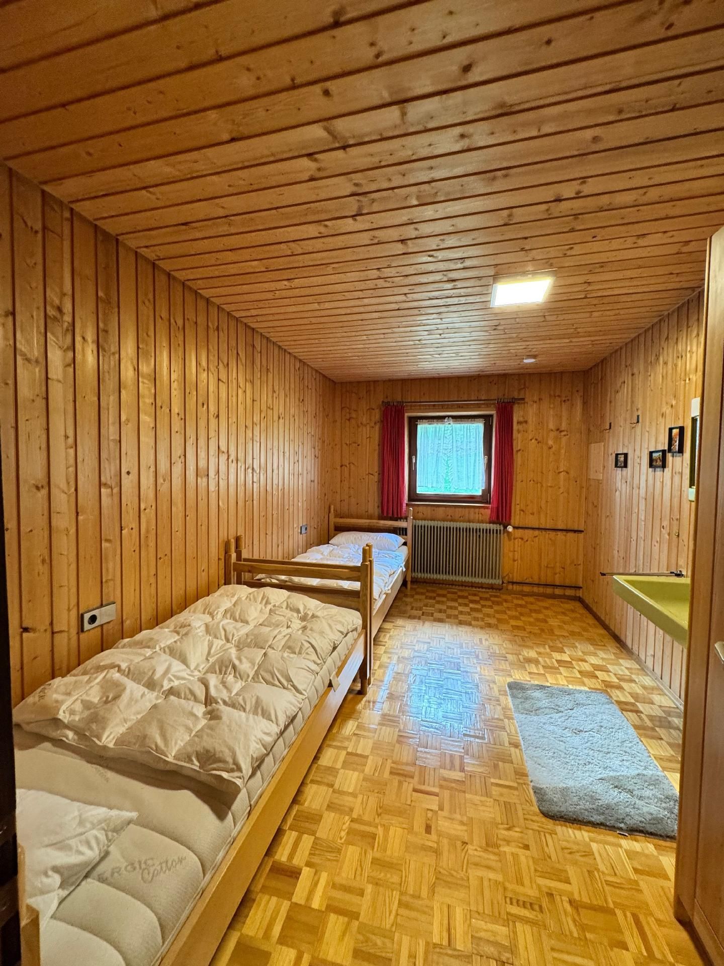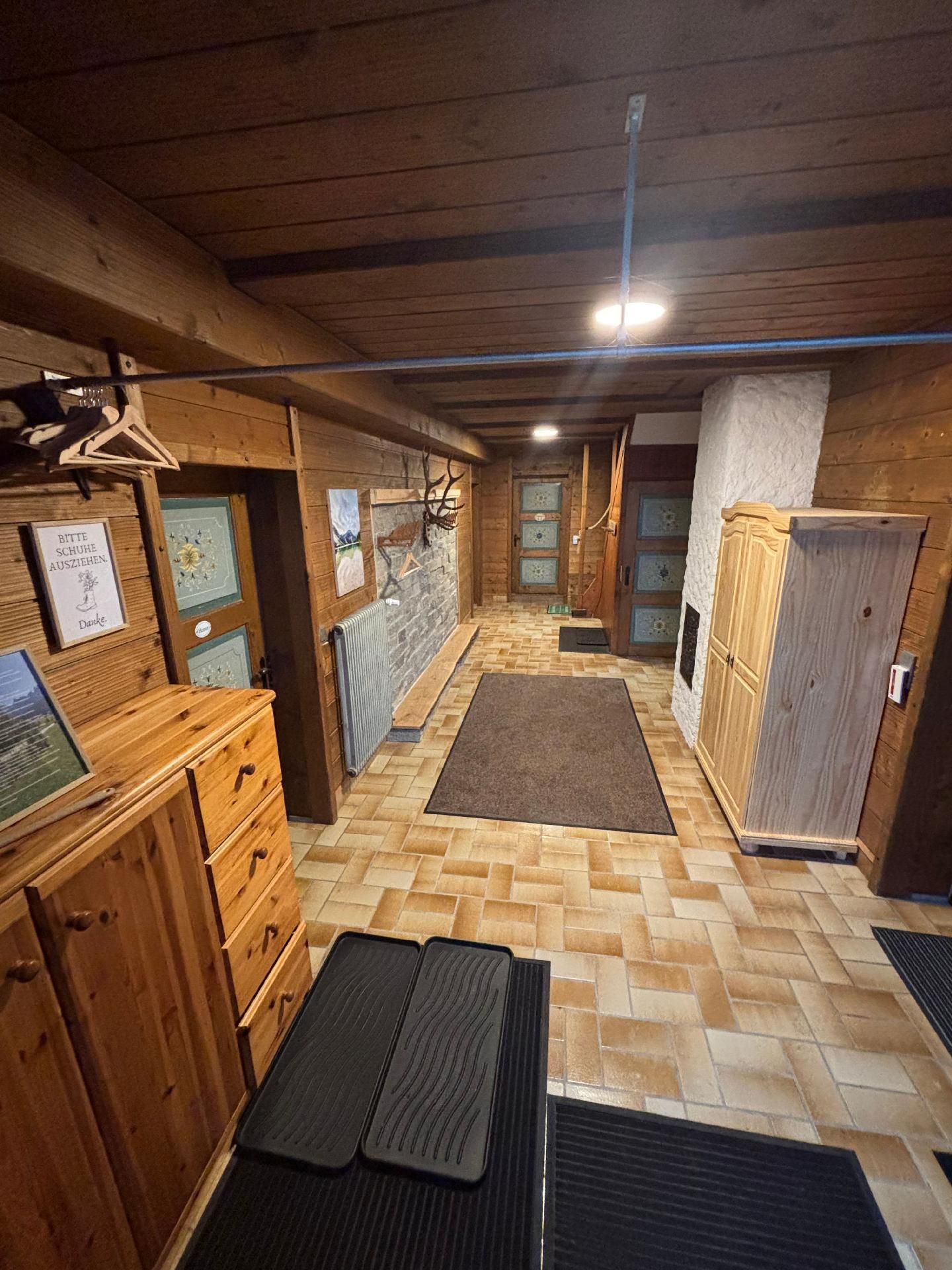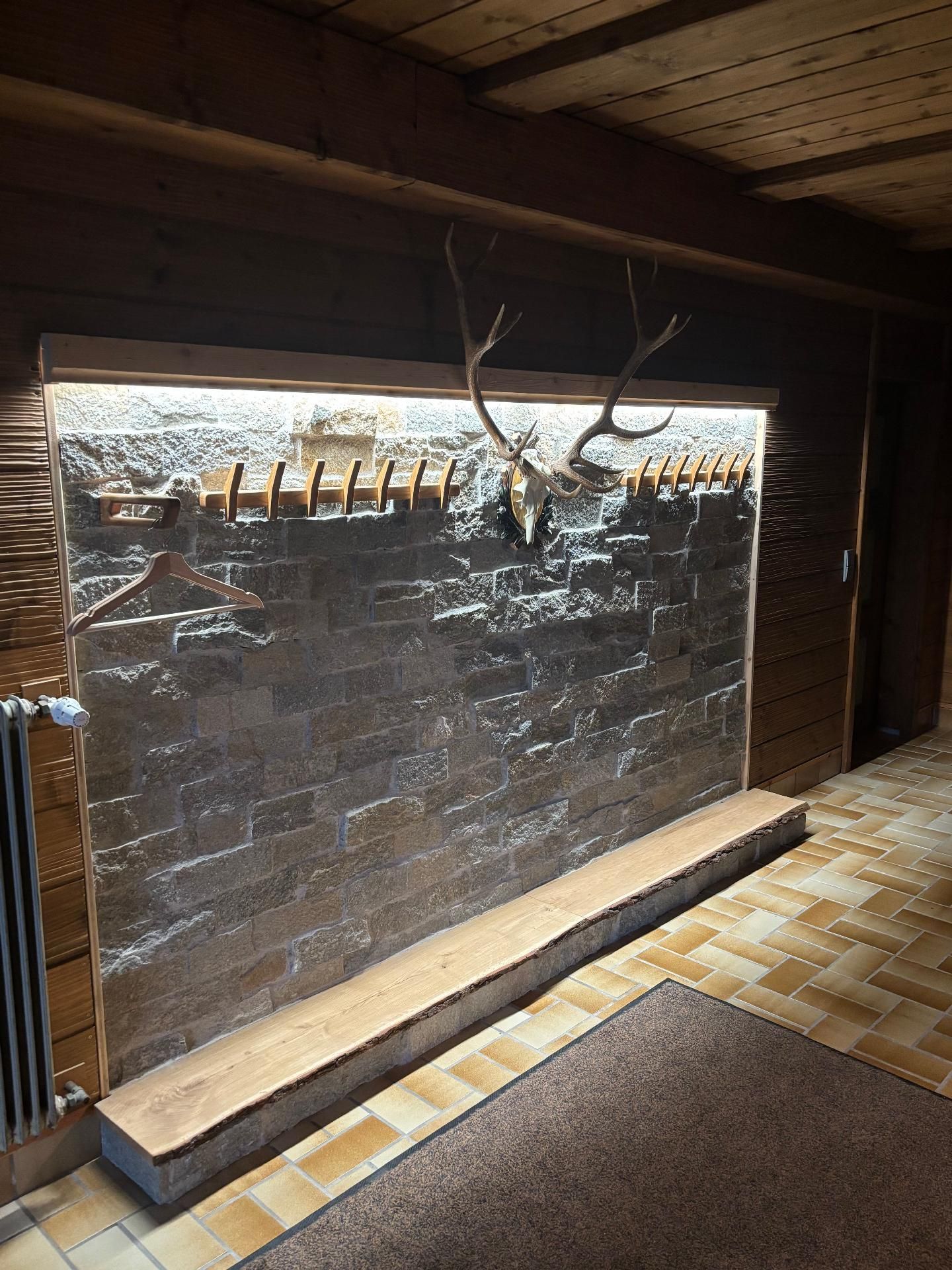 Die Innenräumlichkeiten sind mit viel Liebe gestaltet, um einen angenehmen Aufenthalt zu gewährleisten. Mit insgesamt 9 teils großen Schlafzimmern mit Doppelbetten, die alle mit einem Waschbecken ausgestattet sind, sowie zwei Badezimmern im Erdgeschoss, die jeweils mit drei Duschen (getrennt für Damen und Herren) ausgestattet sind, finden Gäste hier genügend Privatsphäre. Die Selbstverpflegung wird durch eine gut ausgerüstete Küche mit modernen Annehmlichkeiten wie 2 Cerankochfeldern, 2 Backöfen und einer Heißluftfriteuse erleichtert. Für Komfort sorgen zudem eine Waschmaschine und eine Infrarotsauna sowie ein gemütlicher Pelletofen im Aufenthaltsraum für kühle Tage.