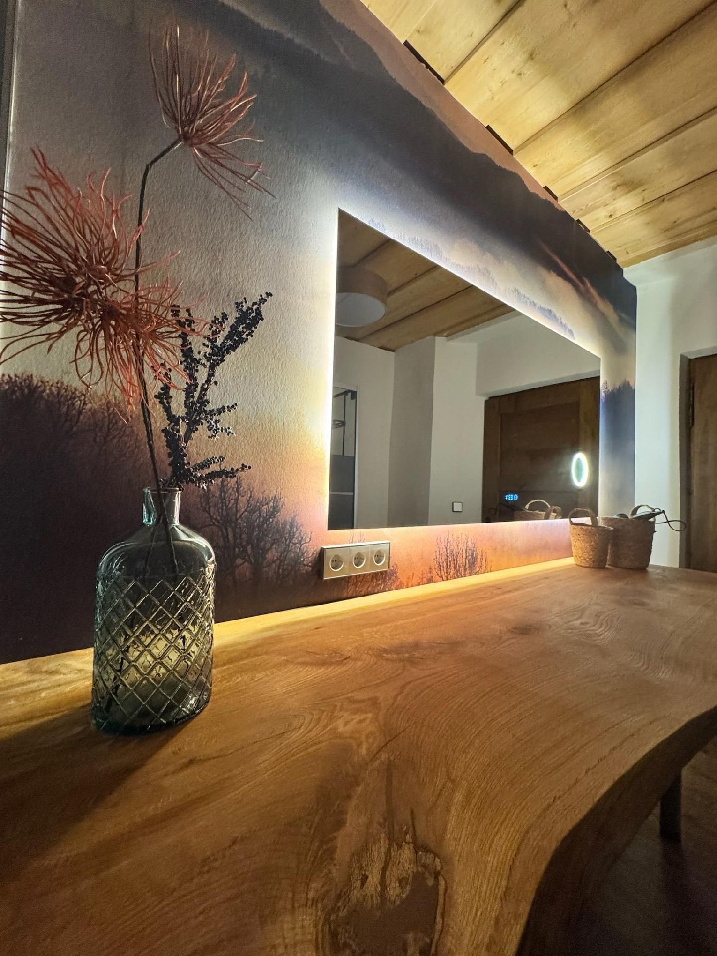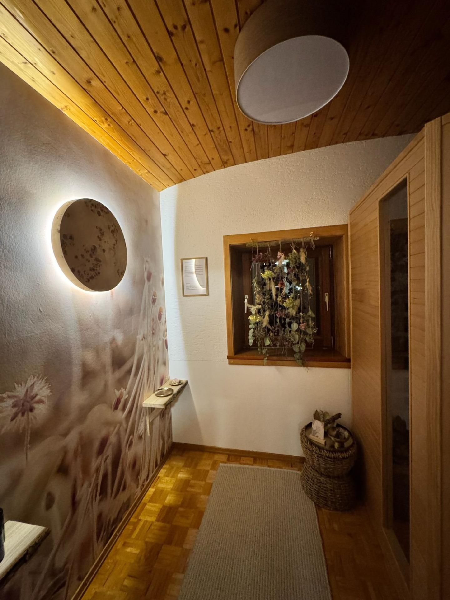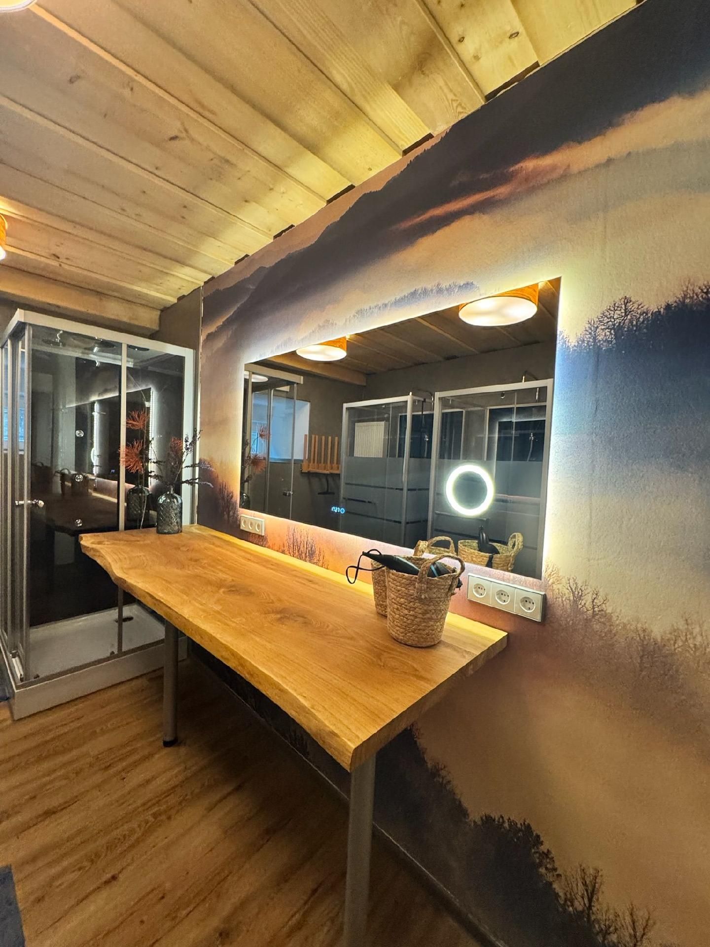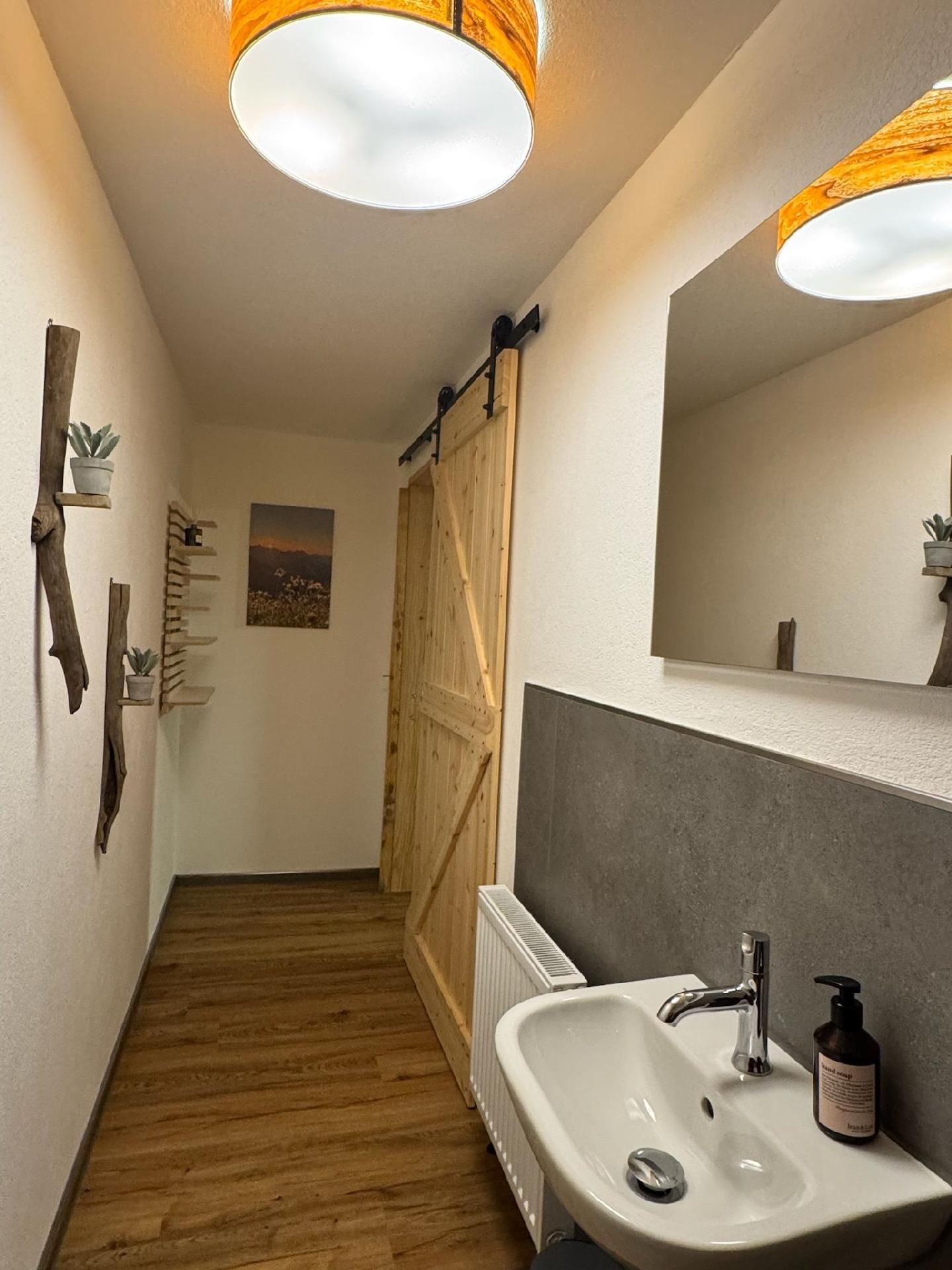 Die Innenräumlichkeiten sind mit viel Liebe gestaltet, um einen angenehmen Aufenthalt zu gewährleisten. Mit insgesamt 9 teils großen Schlafzimmern mit Doppelbetten, die alle mit einem Waschbecken ausgestattet sind, sowie zwei Badezimmern im Erdgeschoss, die jeweils mit drei Duschen (getrennt für Damen und Herren) ausgestattet sind, finden Gäste hier genügend Privatsphäre. Die Selbstverpflegung wird durch eine gut ausgerüstete Küche mit modernen Annehmlichkeiten wie 2 Cerankochfeldern, 2 Backöfen und einer Heißluftfriteuse erleichtert. Für Komfort sorgen zudem eine Waschmaschine und eine Infrarotsauna sowie ein gemütlicher Pelletofen im Aufenthaltsraum für kühle Tage.