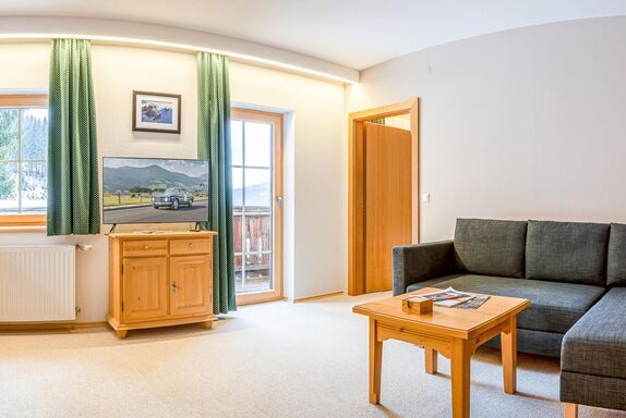 Aparthaus Sonnenberg – Top 8 Sonnberg befindet sich im 2. Stock und bietet auf 75 m² Platz für bis zu 6 Personen. Die Wohnung umfasst zwei Schlafzimmer mit Doppelbetten sowie ein Schlafsofa im Wohnzimmer. Eine voll ausgestattete Küche, zwei separate Badezimmer, ein zusätzliches WC und eine Terrasse sorgen für hohen Wohnkomfort. Ein Parkplatz steht ebenfalls zur Verfügung. Der hauseigene Saunabereich sorgt für zusätzliche Entspannung.