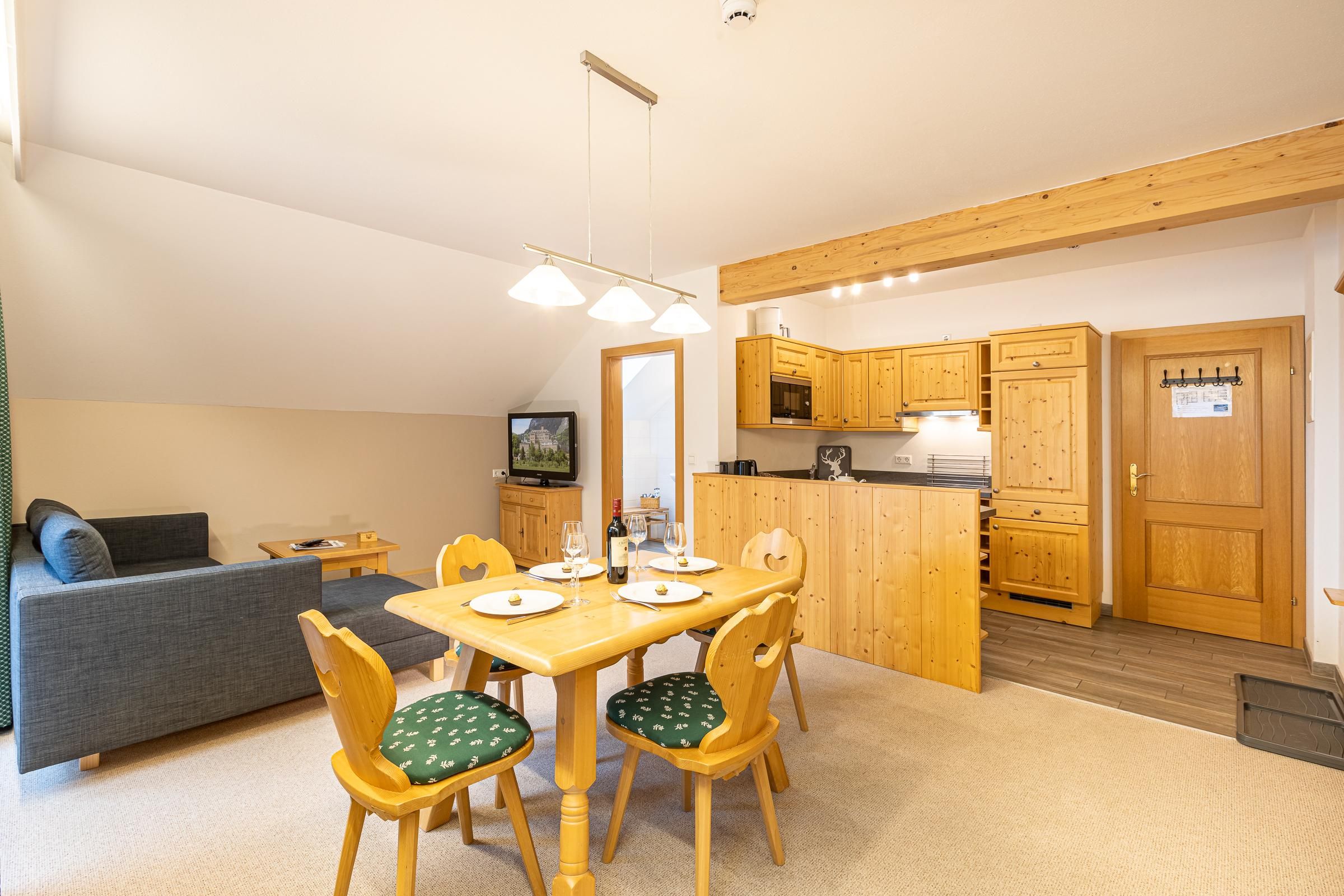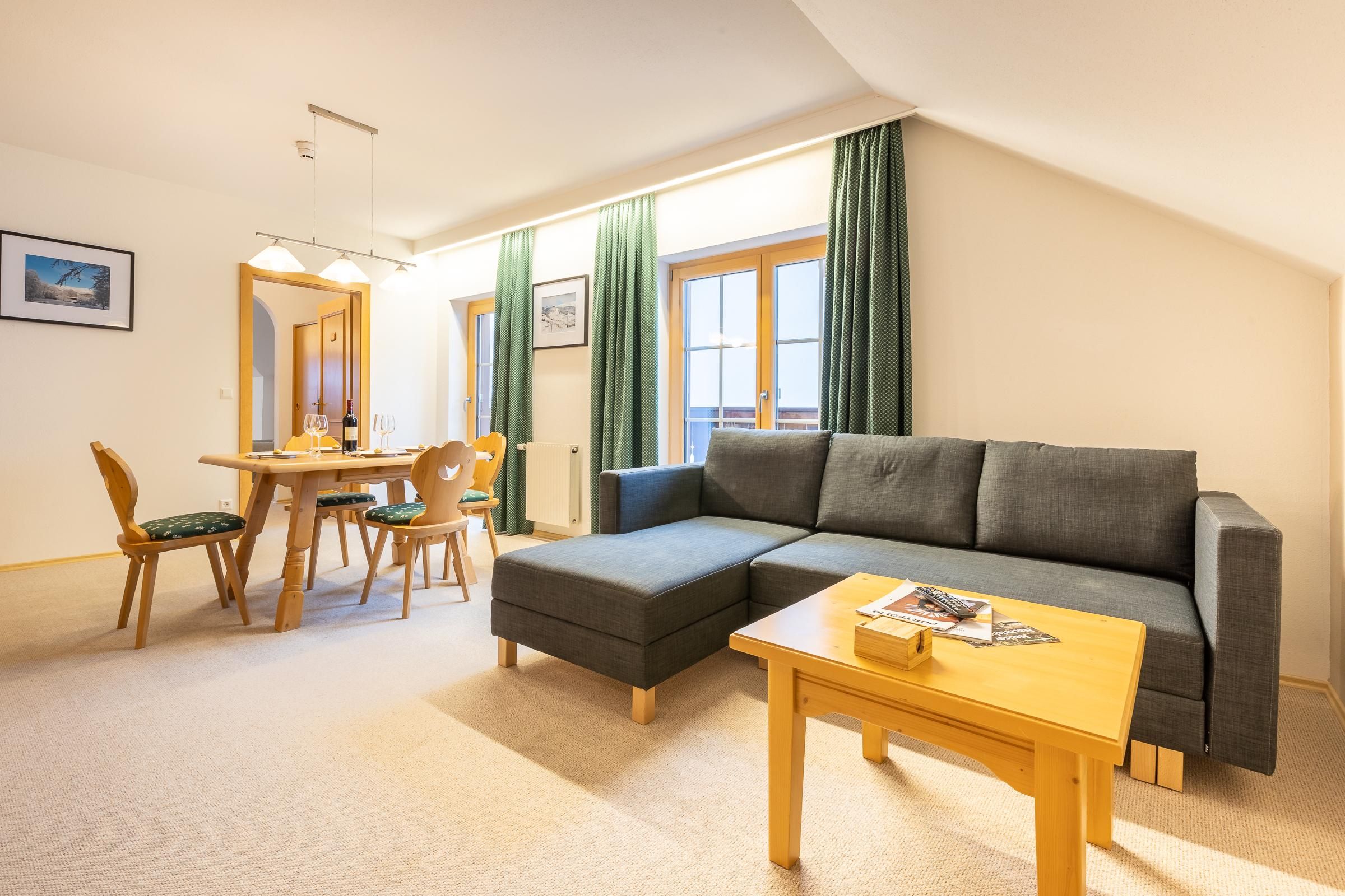 Aparthaus Sonnenberg – Top 10 Kaibling befindet sich im 2. Stock und bietet auf 52 m² Platz für bis zu 4 Personen. Die Wohnung umfasst ein Schlafzimmer mit Doppelbett sowie ein Schlafsofa im Wohnzimmer. Eine voll ausgestattete Küche, zwei separate Badezimmer und ein Balkon sorgen für hohen Wohnkomfort. Ein Parkplatz steht ebenfalls zur Verfügung. Der hauseigene Saunabereich sorgt für zusätzliche Entspannung.