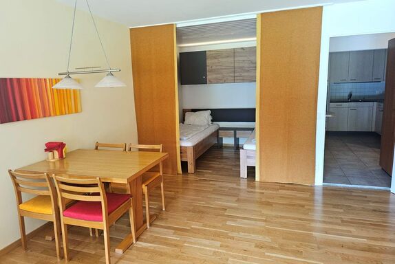 1.5 Zimmerwohnung (48 qm) in der Residenza Quadra, im Ortskern von Flims-Dorf in einer absolut ruhigen und gleichzeitig zentralen Lage gelegen. Gemütlich eingerichtete Wohnung mit Gartensitzplatz und Bergblick. Nichtraucherwohnung! Keine Haustiere! Ski- und Skischuhraum (Sommer Veloraum), Waschküche und Spielzimmer stehen zur Verfügung. Alle Einkaufsmöglichkeiten, Bank, Post und Bergbahnen sind zu Fuss in 3-7 Gehminuten erreichbar. Von der 2 Minuten entfernten Bushaltestelle fährt ein Shuttle-Bus (mit Gästekarte kostenlos) zu den Bergbahnen.