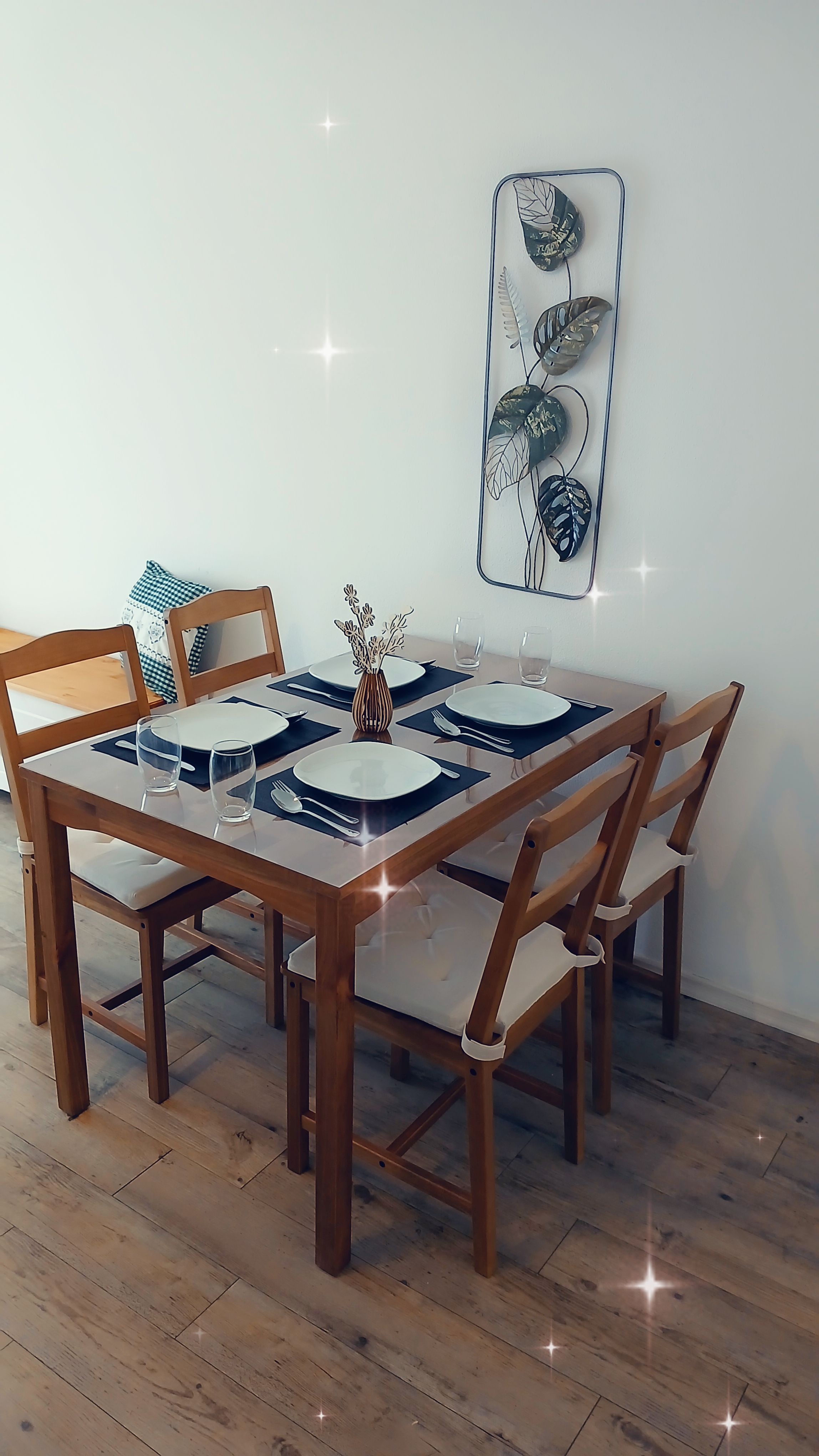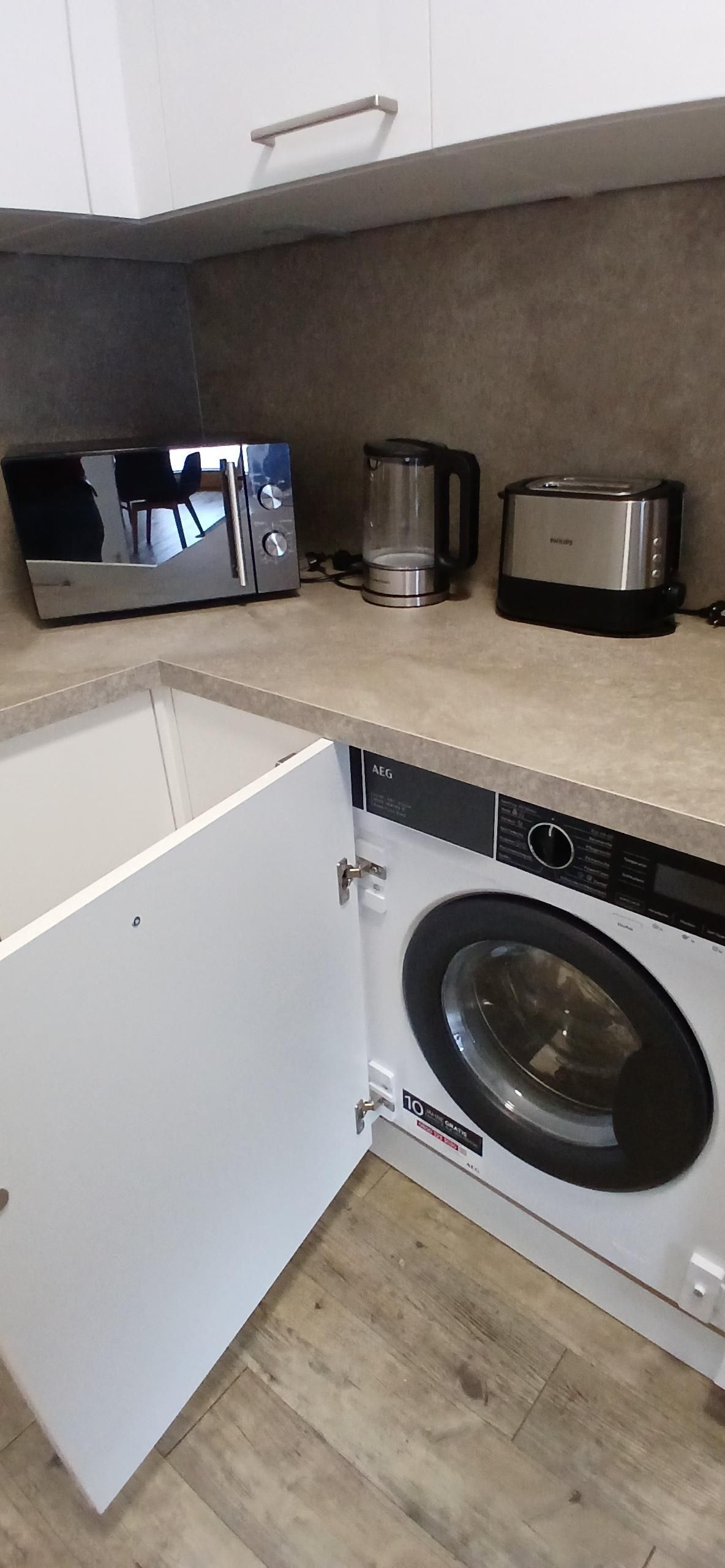 Die Wohnung verfügt über 1 Schlafzimmer: Es ist mit einem gemütlichen Doppelbett ausgestattet, das Schlafsofa ist ideal für Kinder oder Freunde. Beide Räume bieten genügend Stauraum für Kleidung und Gepäck.