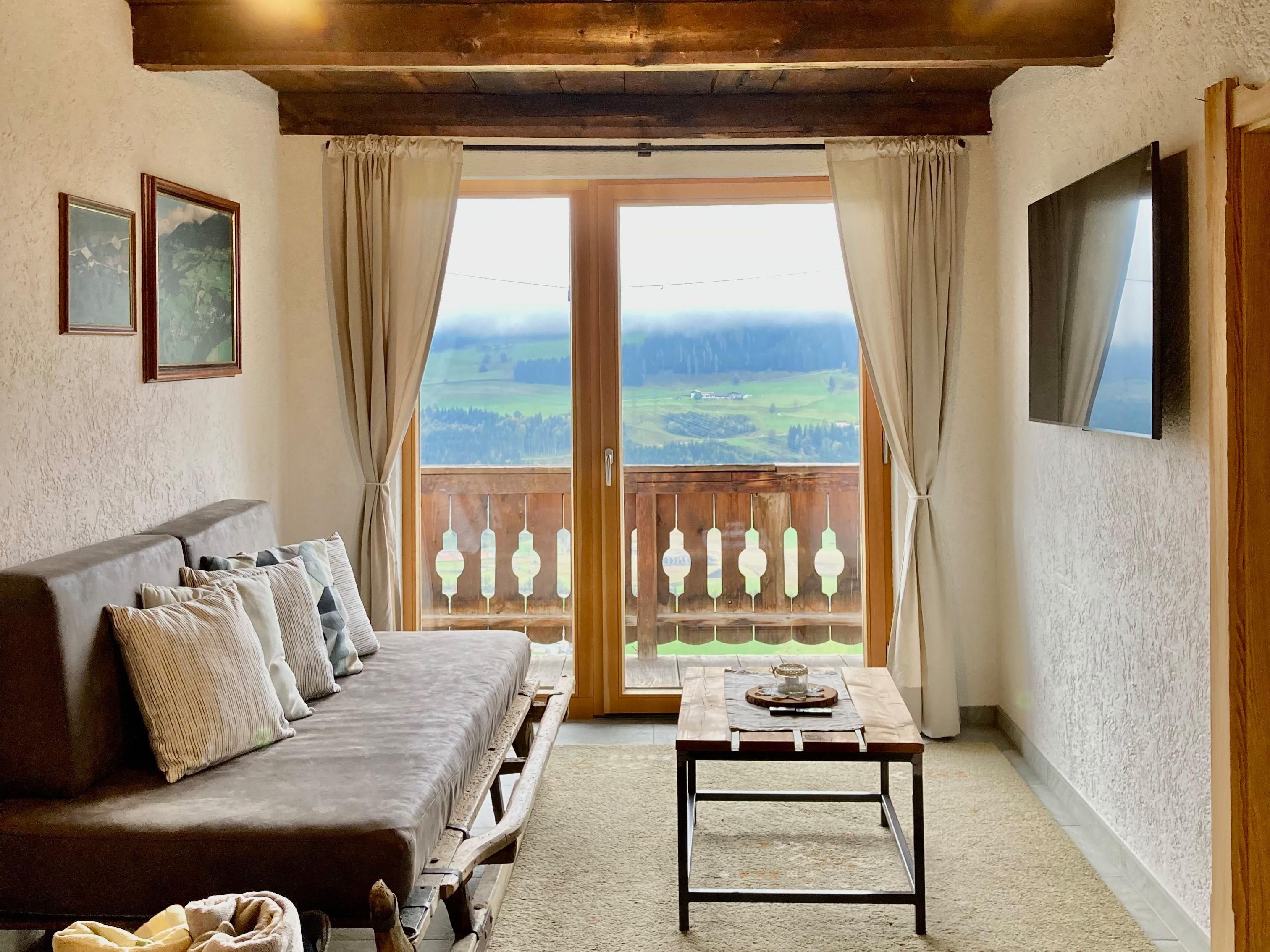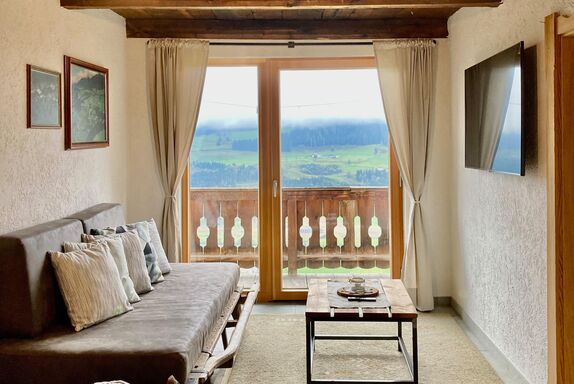 90 qm große Ferienwohnung für fünf Personen an einem Südhang gelegen, auf 1.000 m Seehöhe.