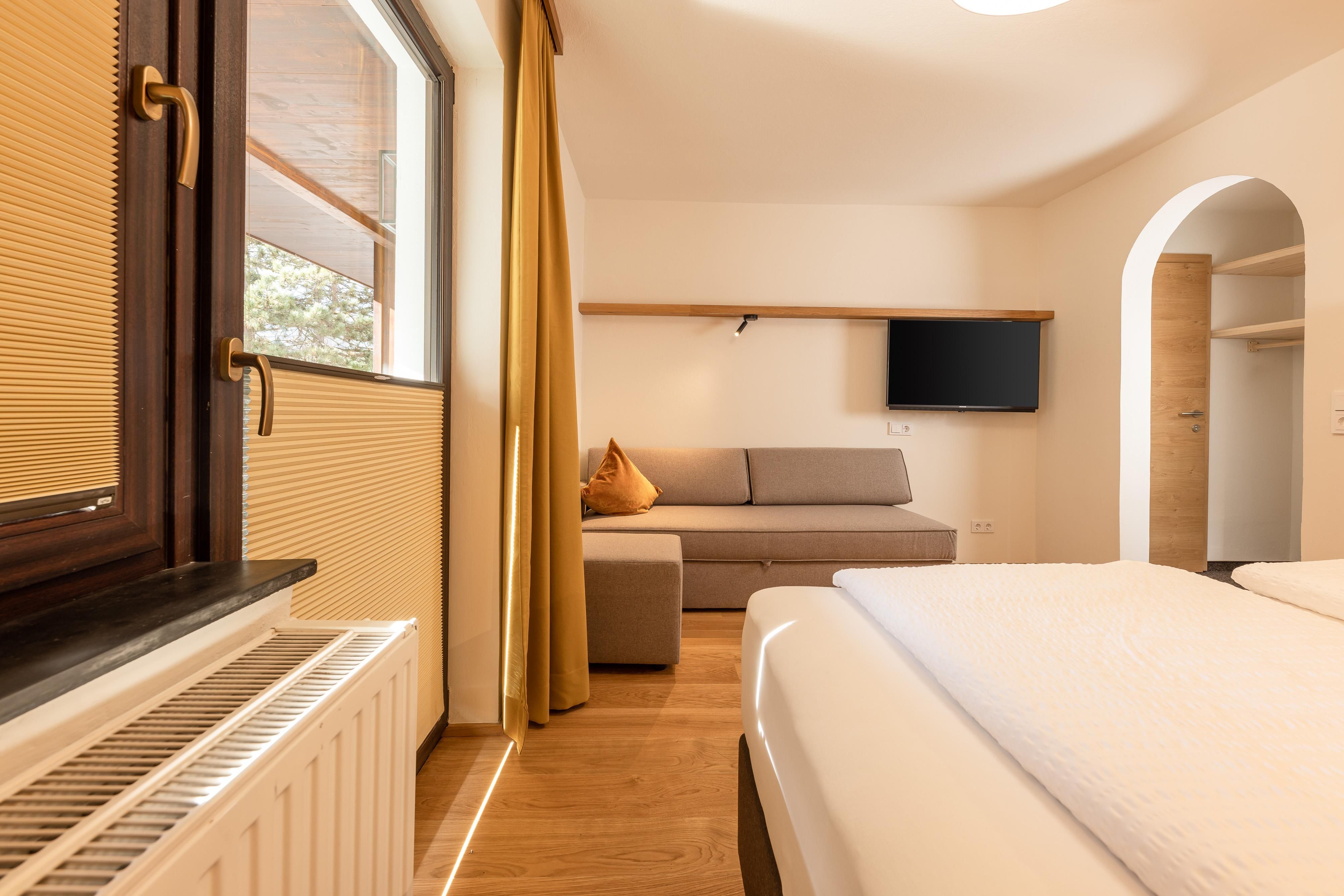 Doppel- und Mehrbettzimmer (21m² / max. 2 Erw. + 2 Kinder) mit Badewanne/WC. Alle Zimmer verfügen über Kabel-TV, Balkon oder Terrasse.