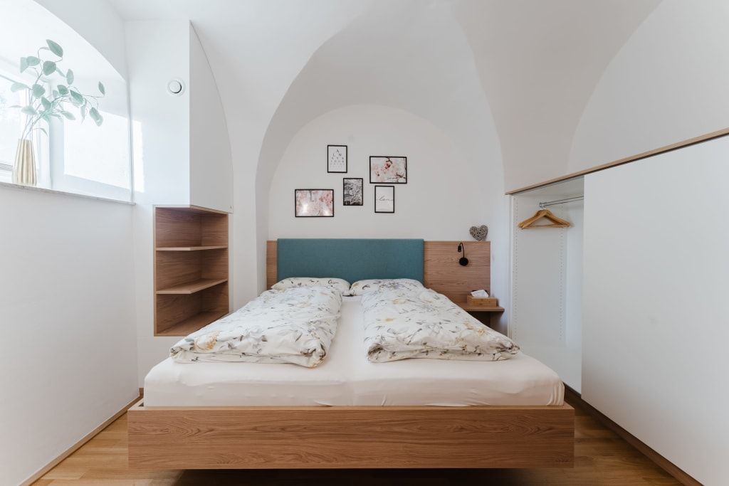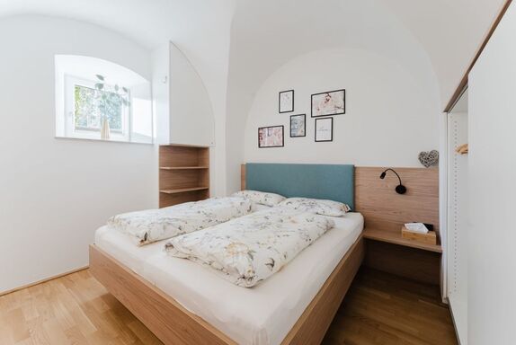 Im liebevoll eingerichteten Doppelzimmer erwartet dich ein hochwertiges Doppelbett (180x200 cm) mit gemütlicher Bettwäsche aus Naturfasern – ideal für erholsamen Schlaf nach einem Tag in der Natur. Der sanfte Duft von Holz und die ruhige Lage des Zimmers schaffen ein behagliches Ambiente zum Durchatmen.