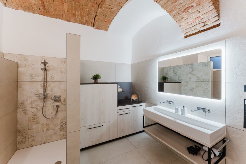 Unsere stilvoll und hochwertig eingerichtete Ferienwohnung in traditionsreichen Gemäuern schafft eine besondere Atmosphäre. Diese Unterkunft besticht durch beeindruckende Ziegel- und kunstvolle Kreuzgewölbe. Genießen Sie die gelungene Mischung aus historischem Flair und modernem Komfort.