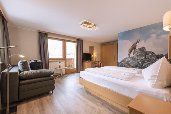 Ein lichtdurchflutendes Doppelzimmer erwartet euch – ein Rückzugsort voller Charme, der sofort ein Gefühl von Wohlbehagen aufkommen lässt Rollt die Yogamatte aus oder dehnt euch vor oder nach dem Sport. In diesem Zimmer habt ihr viel Platz dafür! An der Getränkestation macht ihr euch einen Kaffee oder Tee und kuschelt euch damit aufs Sofa oder den Balkon. Euer Urlaub am Achensee wird mega gemütlich!