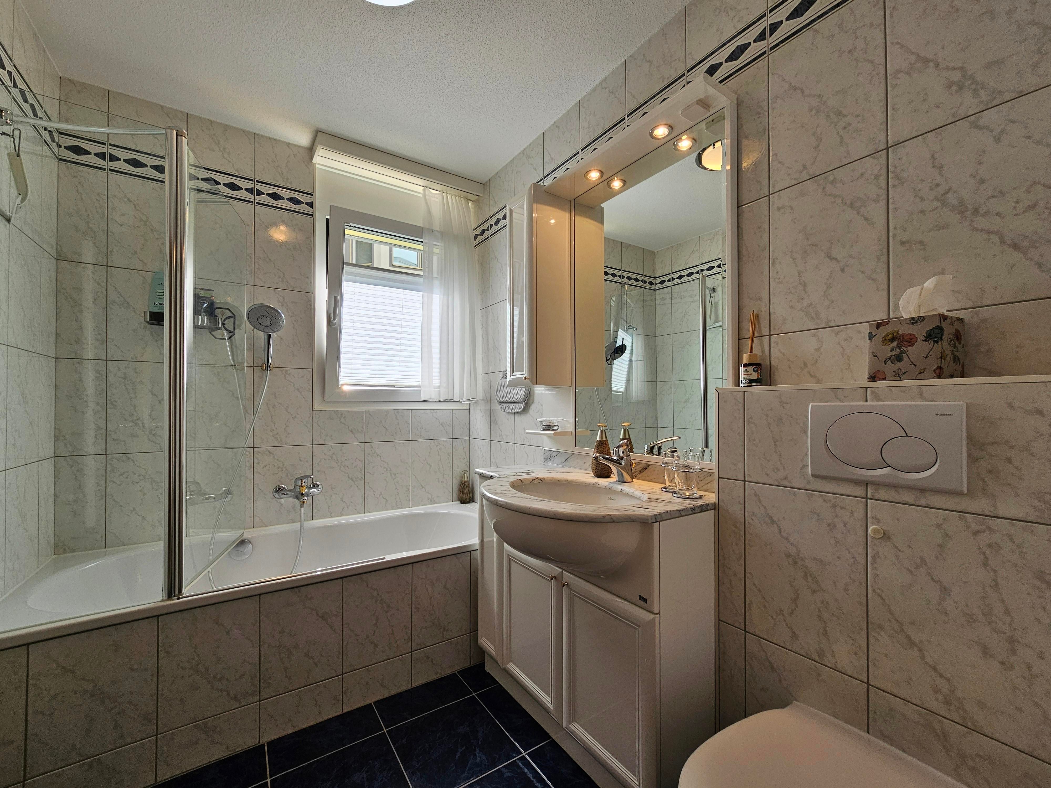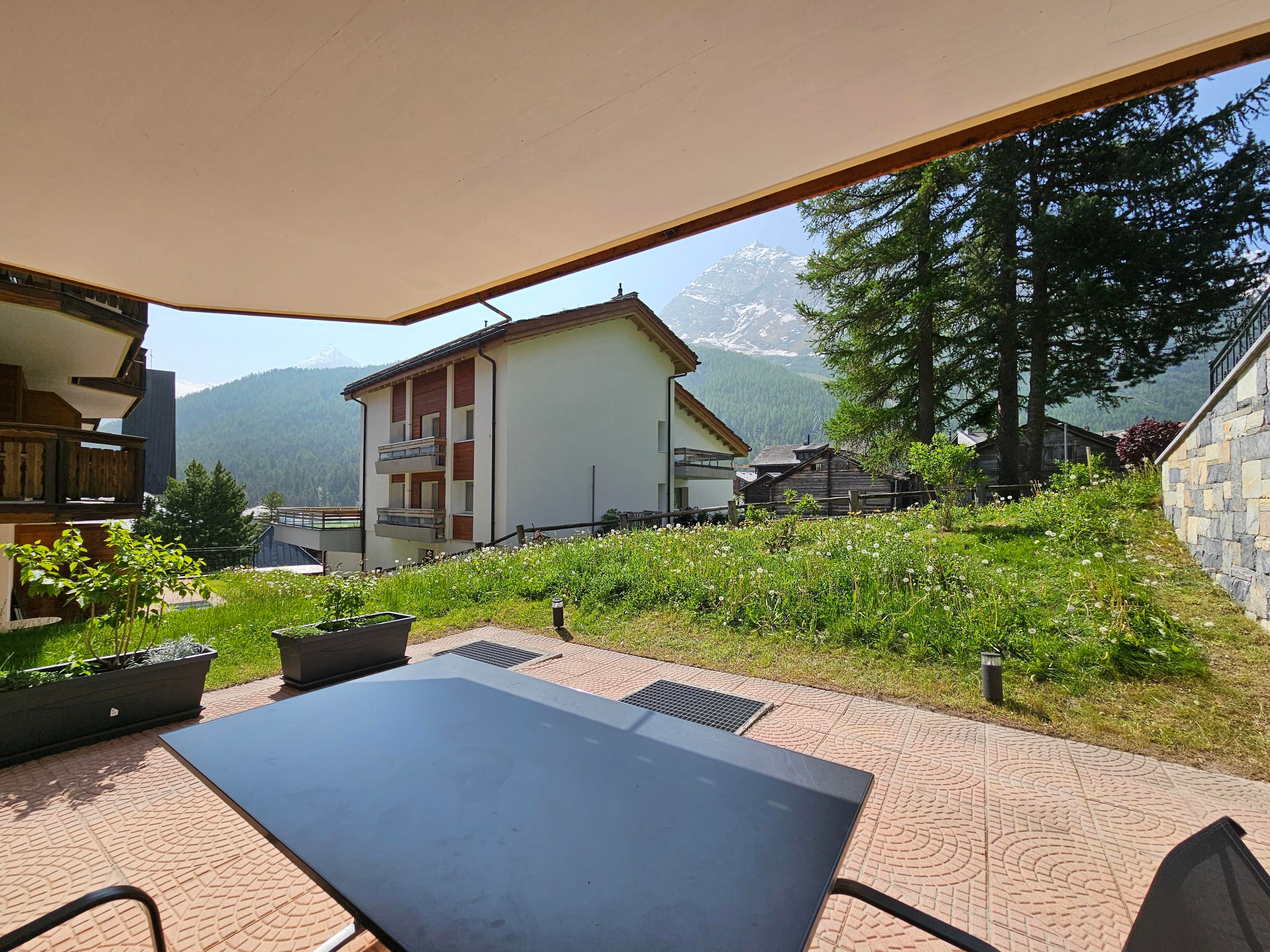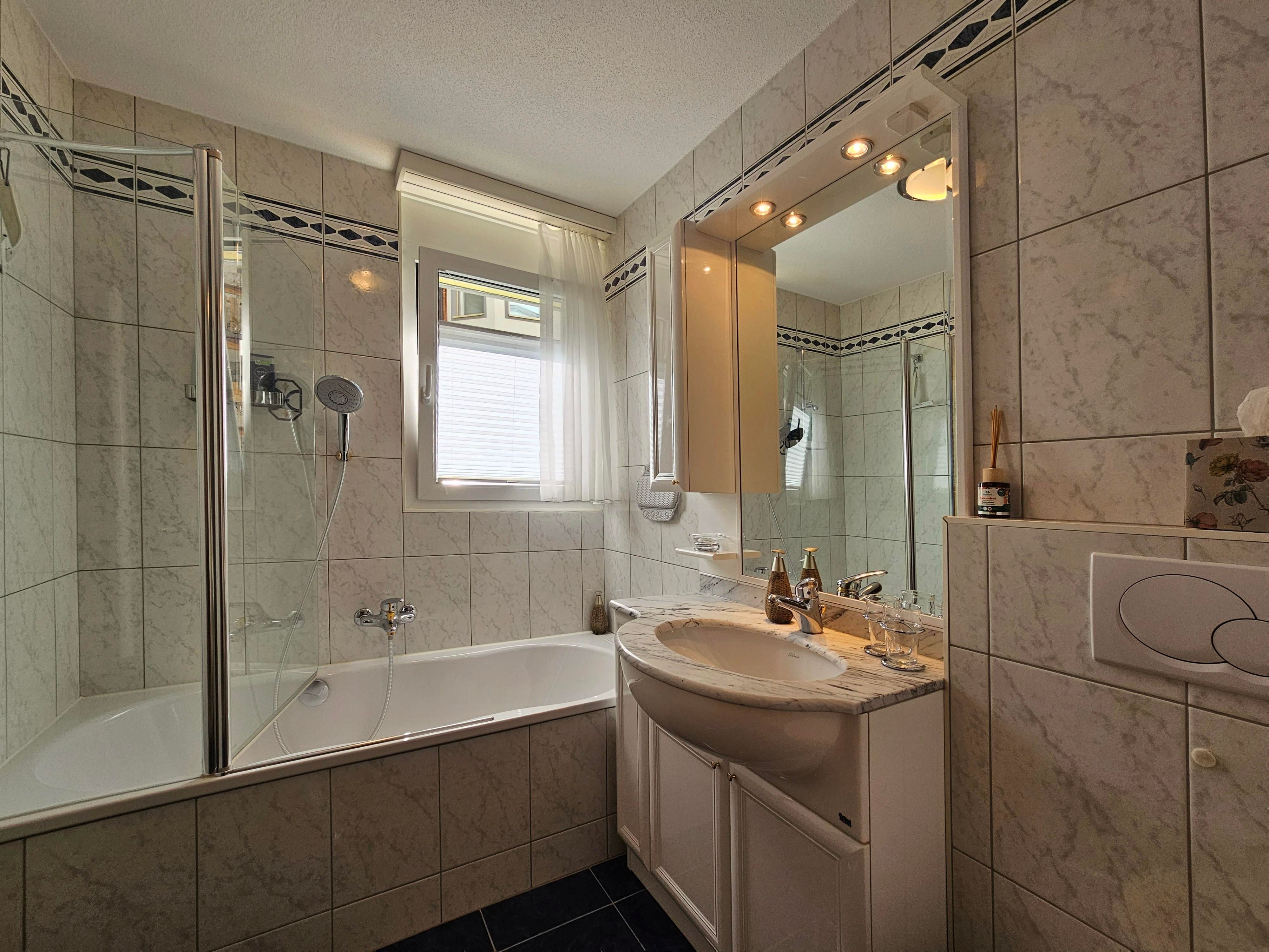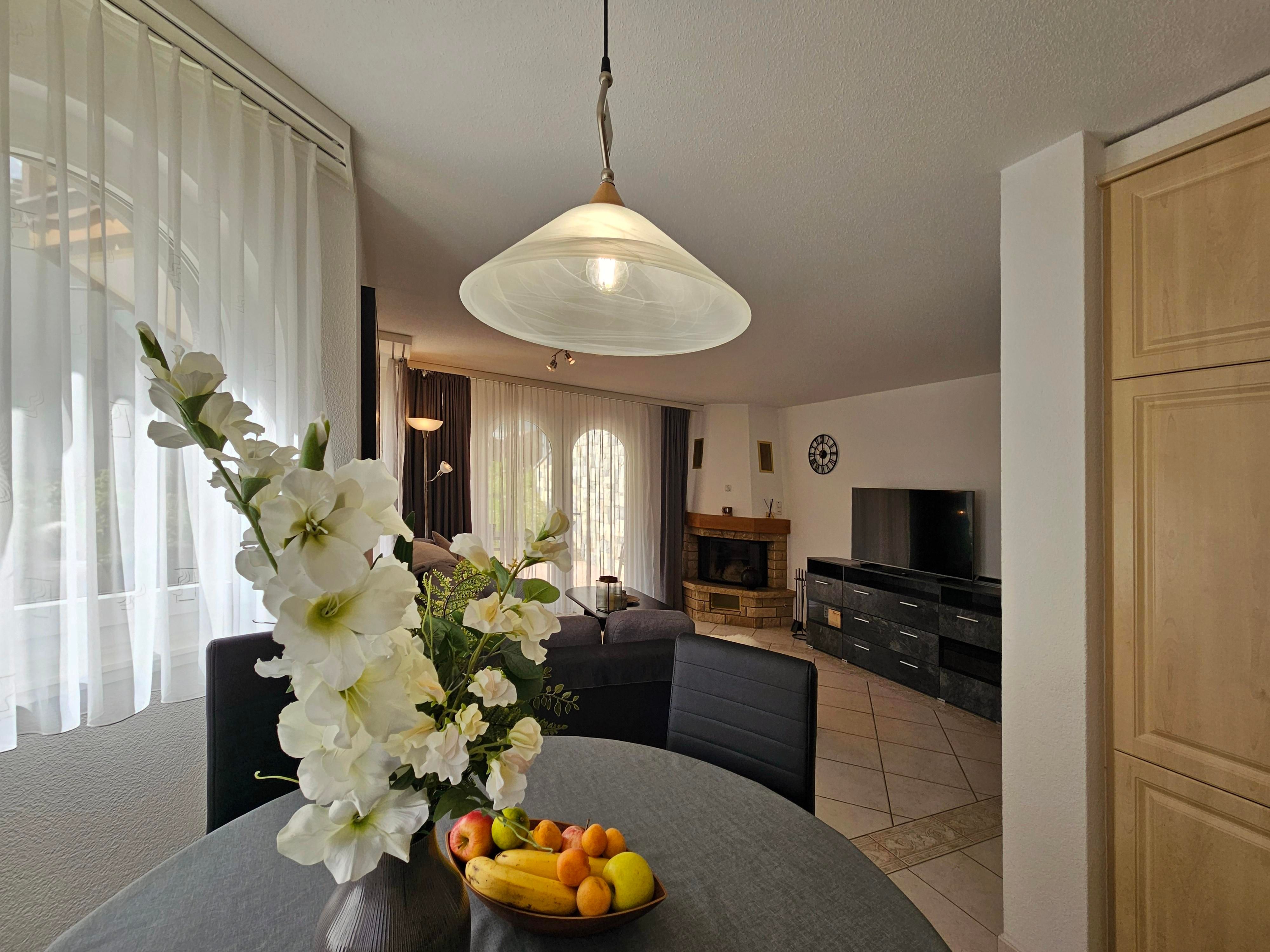 Die grosse Wohnung verfügt über 1 Schlafzimmer mit Doppelbett. Das Badezimmer verfügt über eine Badewanne, Toilette und Waschbecken. Die Küche ist sehr gut ausgestattet und bietet mit der Essecke viel Platz. Im grossen Wohnzimmer hat es ein Schlafsofa, wo zusätzliche 2 Personen schlafen können. Highlight ist auch der gemütliche Kamin im Wohnzimmer. Die Wohnung hat zudem eine Terrasse mit Tisch und Stühle.