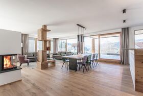 Lebendiges Holz, wohlige Wärme vom knisternden Feuer und frisch duftende Bettwäsche. Im Appartement Hahnenkamm können Sie sich mit Ihrer Familie wie zuhause fühlen - für bis zu 8 Personen. Luxuriös, authentisch und geräumig wohnen, mit großen Glasfronten und freiem Blick auf das Panorama des Brixentales - von der Hohen Salve bis zum Kitzbüheler Horn. Ausstattung: - 160 m² für 6-8 Personen im 3. OG - 3 Schlafzimmer - 2 Badezimmer mit Dusche - Sauna - separate Toilette - komplett ausgestattete Küche mit Esstisch - Ausziehcouch im Wohnraum - überdachter Autoabstellplatz oder Garagenplatz - Sportbox für Ski, Golfbag, Bike & Co - Dachterrasse & Wintergarten mit offenem Kamin - luxuriöse Ausstattung mit BUS-System, Kühldecken uvm. - 4 Flat-TV - Wifi