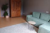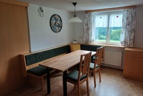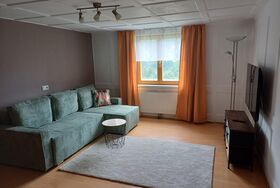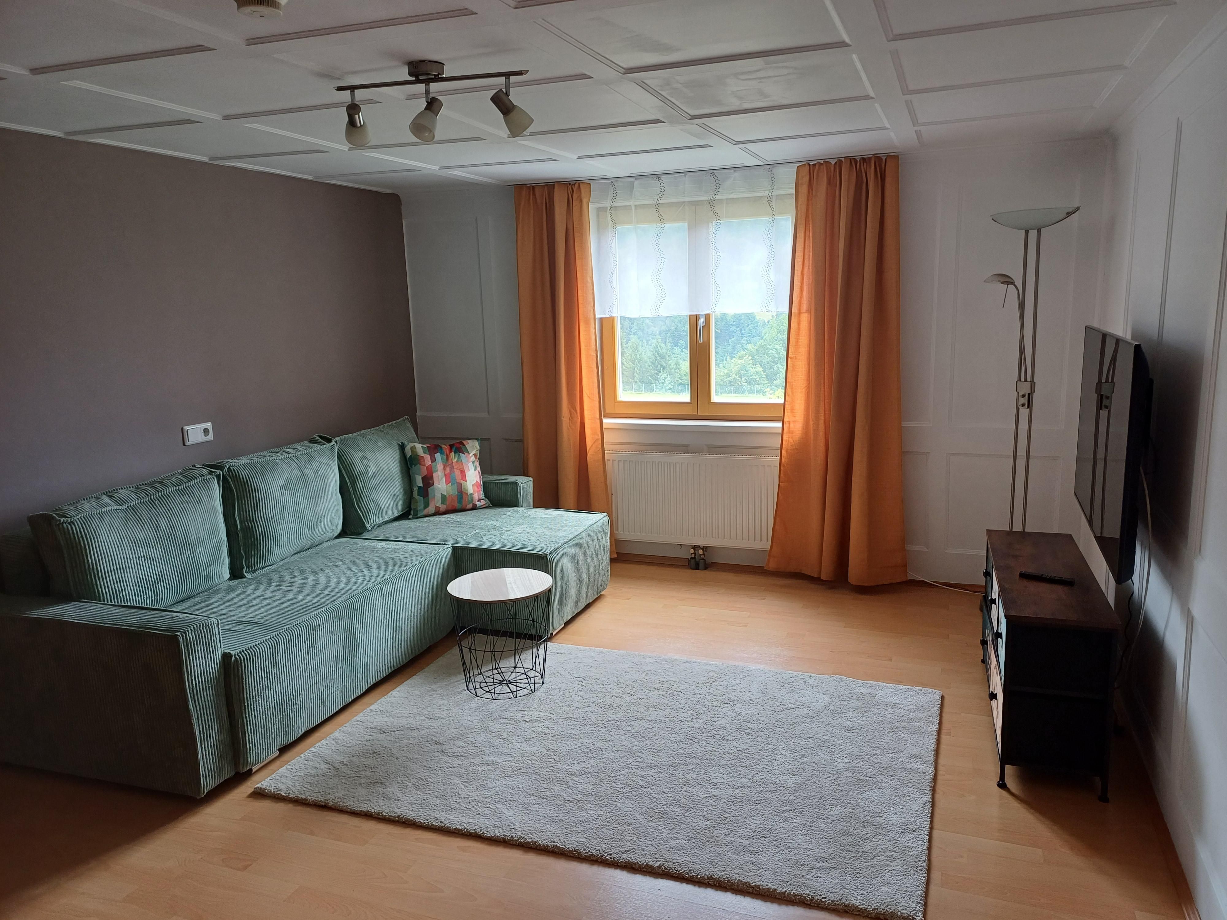 Die Wohnug hat gesamt ca. 65m² und teilt sich auf in ein Wohnzimmer, ausgestattet mit einer ausziehbaren Couch (Liegefläche 140x200cm), Flachbildfernseher mit SAT-TV und einem Schrank für zusätzlichen Stauraum. Durch eine Schiebetüre lässt sich die seperate Küche vom Wohnzimmer trennen. Die Küche ist ausgestattet mit einem Essplatz sowie einer großen L-Küche. Weiters mit komplettem Ess- und Kochgeschirr, sowie den wichtigsten Gewürzen. Ein Toaster, ein Wasserkocher und eine Kaffeemaschine komplettieren die Küche. Über die Terrassentüre gelangen sie nach draußen.