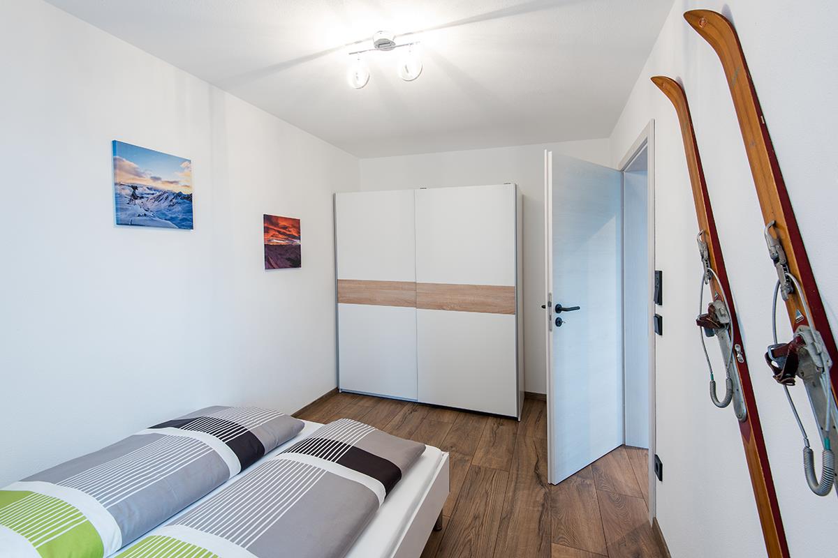 Es gibt zwei Schlafzimmer mit jeweils einem Doppelbett und einem Einbauschrank. Das große Badezimmer verfügt über eine begehbare Wellnessdusche, einem großen Waschtisch und einem WC.